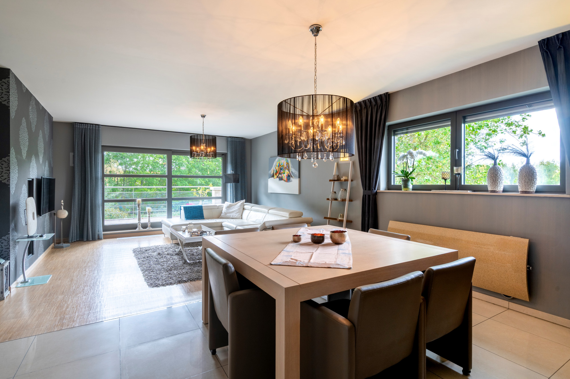 This exceptional penthouse, located on the second floor of a stylish and intimate residence (built in 2007), offers a unique combination of space, luxury, and privacy. Originally created from two apartments and officially permitted as a penthouse, it boasts a generous living area of no less than 282 m². From the south-facing terrace, you can enjoy a peaceful view of greenery in complete privacy. Thanks to its central location between Hasselt, Genk, and Diepenbeek, this penthouse is easily accessible while remaining quietly situated with views of nature.