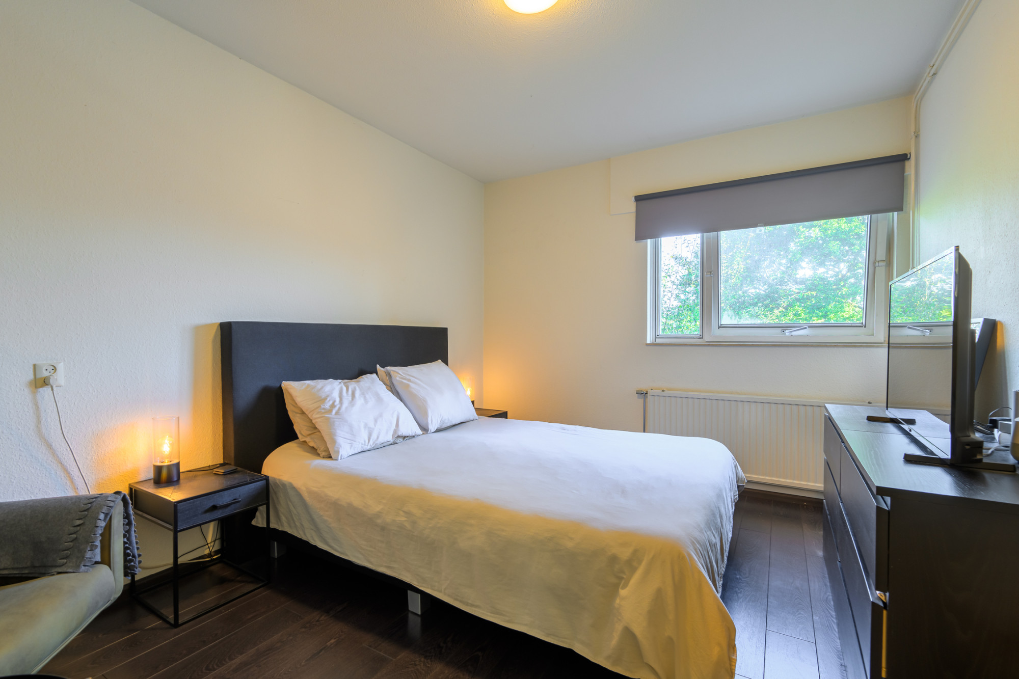 Via een tussenhal zijn de twee slaapkamers, de wc en de badkamer bereikbaar. De slaapkamers zijn circa 3,87m x 3,07m en 3,98m x 3,07m groot. Via eerstgenoemde slaapkamer is toegang tot het balkon. De badkamer (circa 2,00m x 2,00m is ingericht met ligbad en wastafel; ook is hier plaats voor de wasmachine.