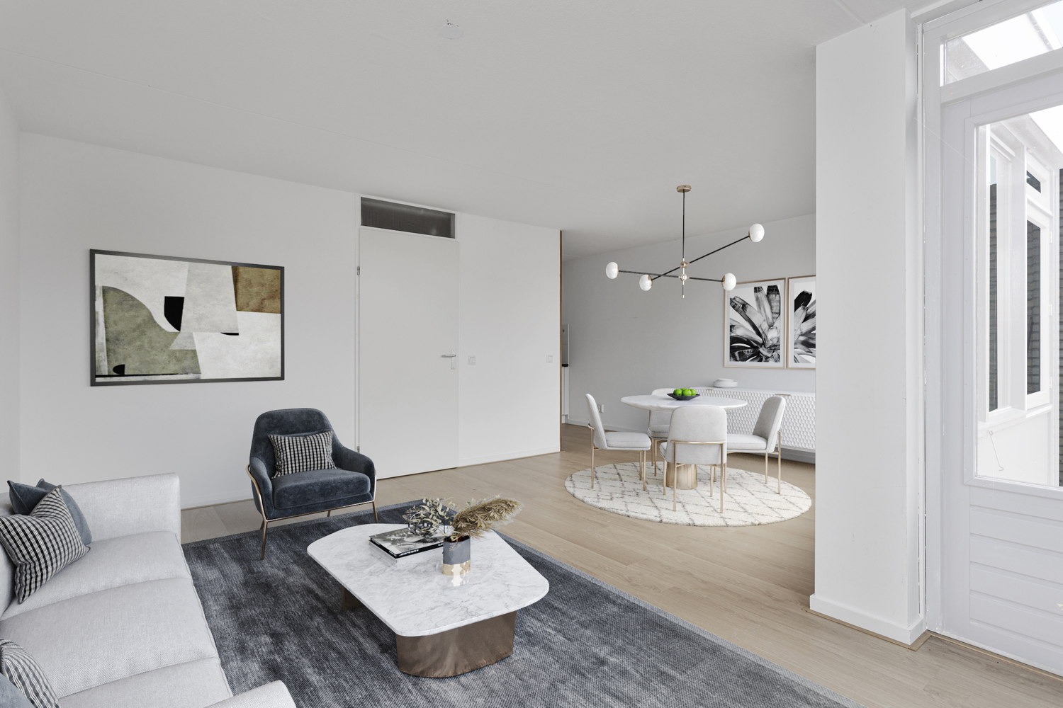 Woonkamer met toegang naar balkon dat op zuid/oost gelegen is.