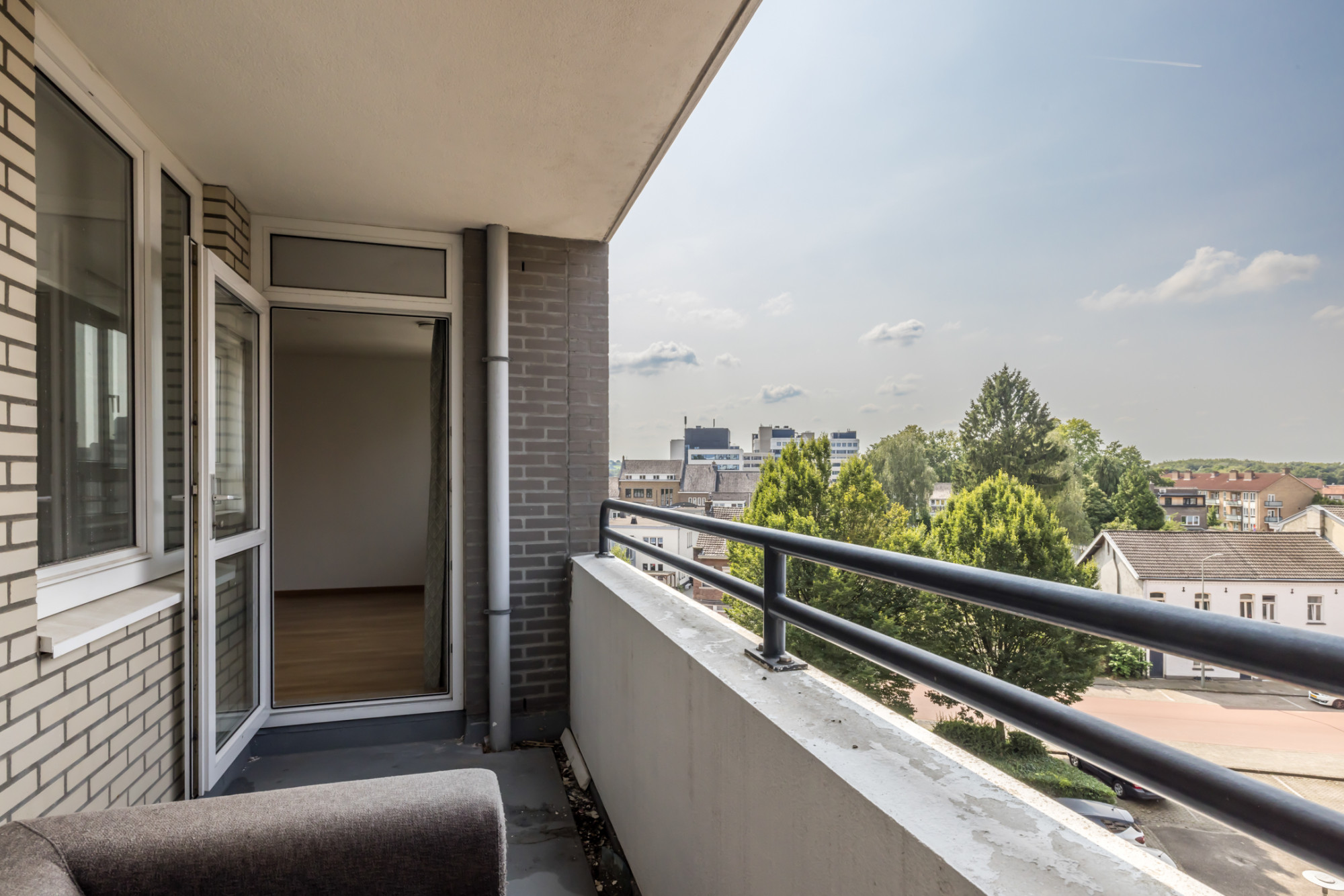 Het zonnige en ruim gelegen balkon is bereikbaar vanuit de woonkamer.