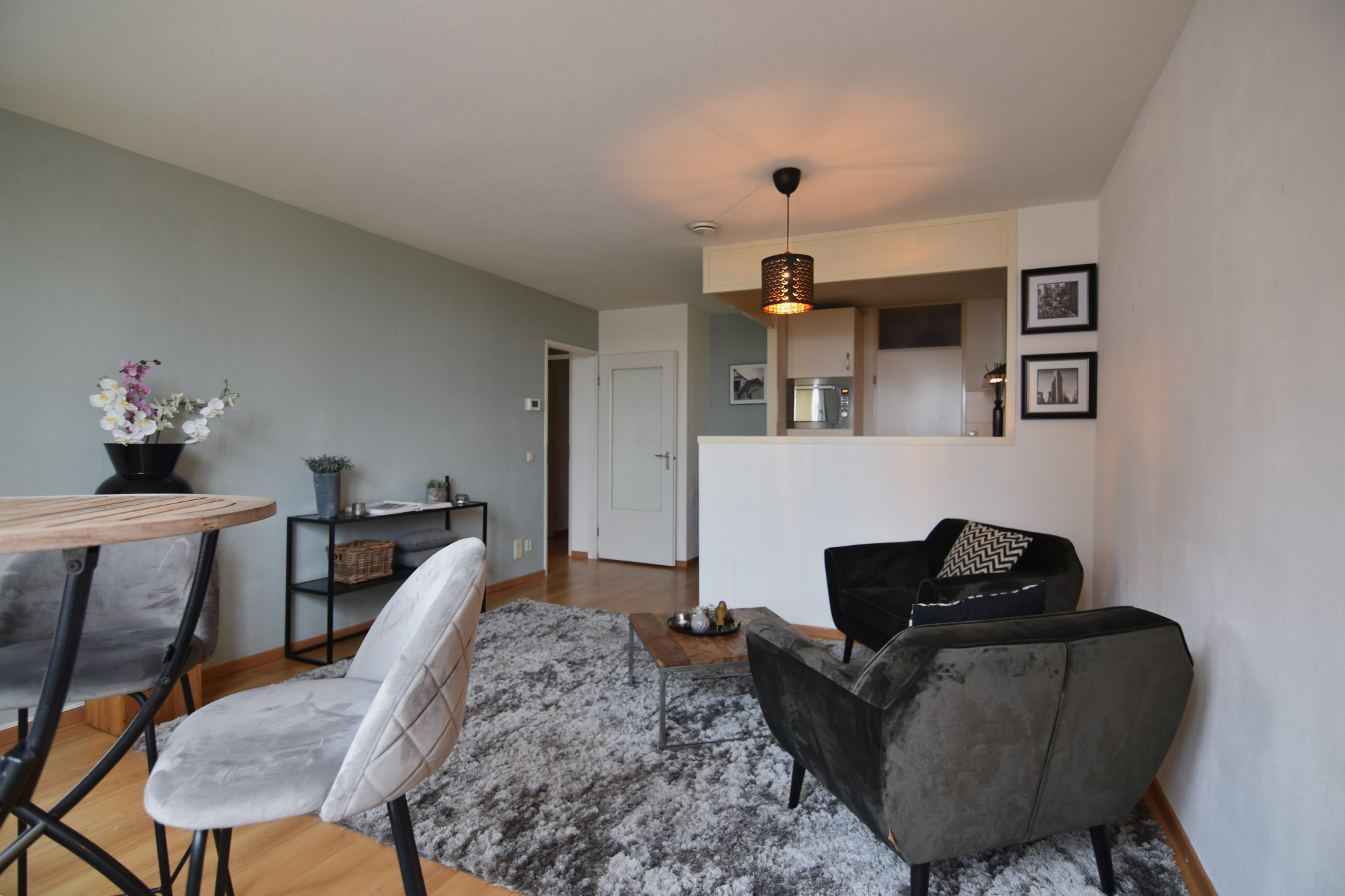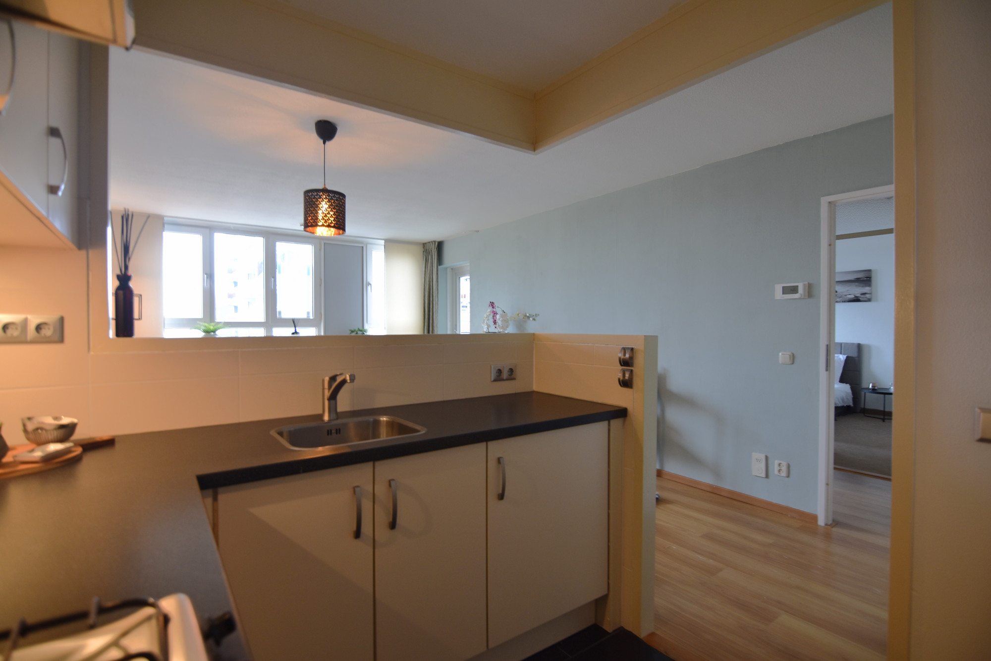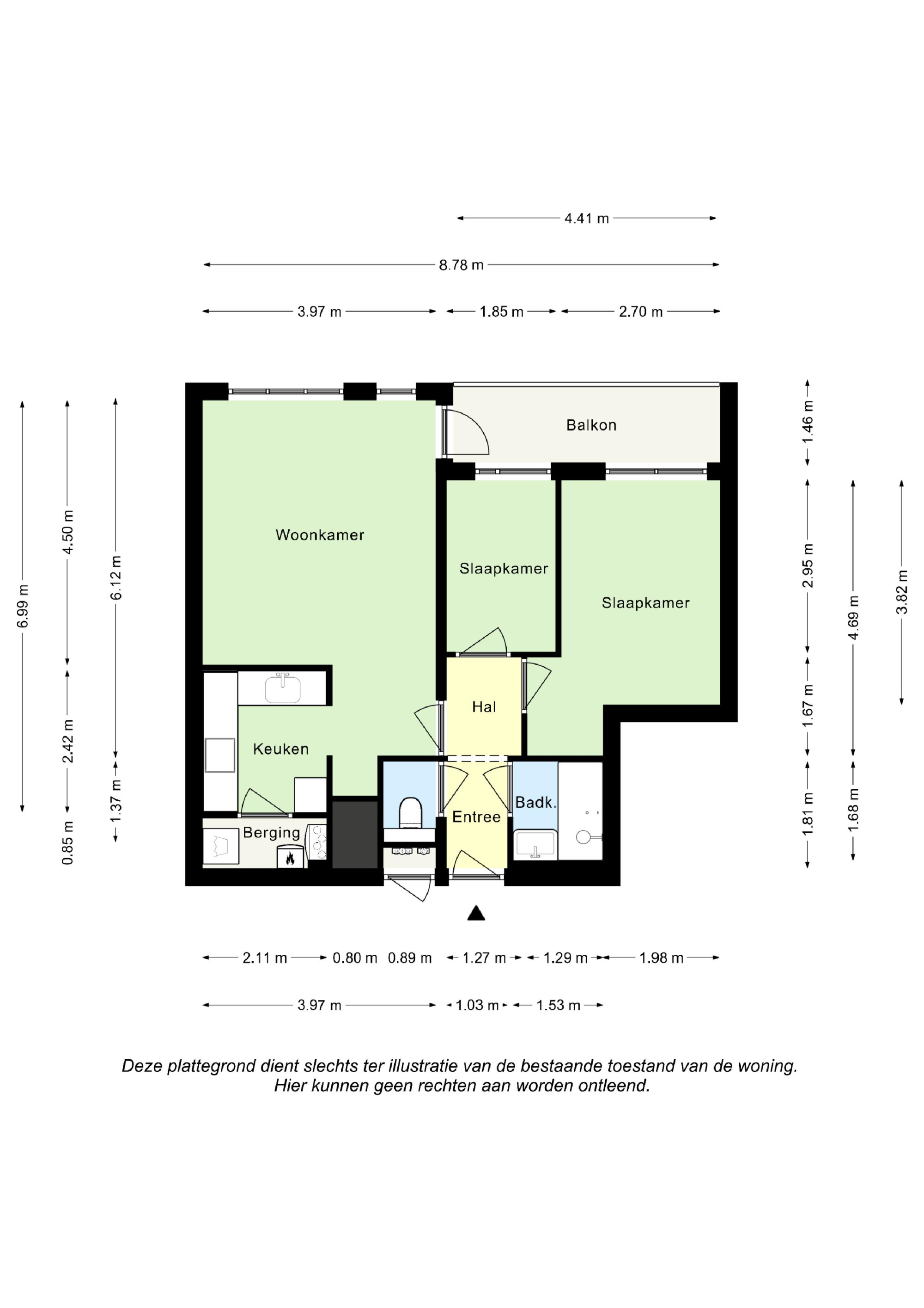 Entree/hal v.v. separate toiletruimte. De entree/hal biedt toegang tot badkamer, living en slaapkamers. De woonkamer (4,50 m x 3,97 m) heeft een open verbinding naar de keuken en middels openslaande deur toegang tot balkon.