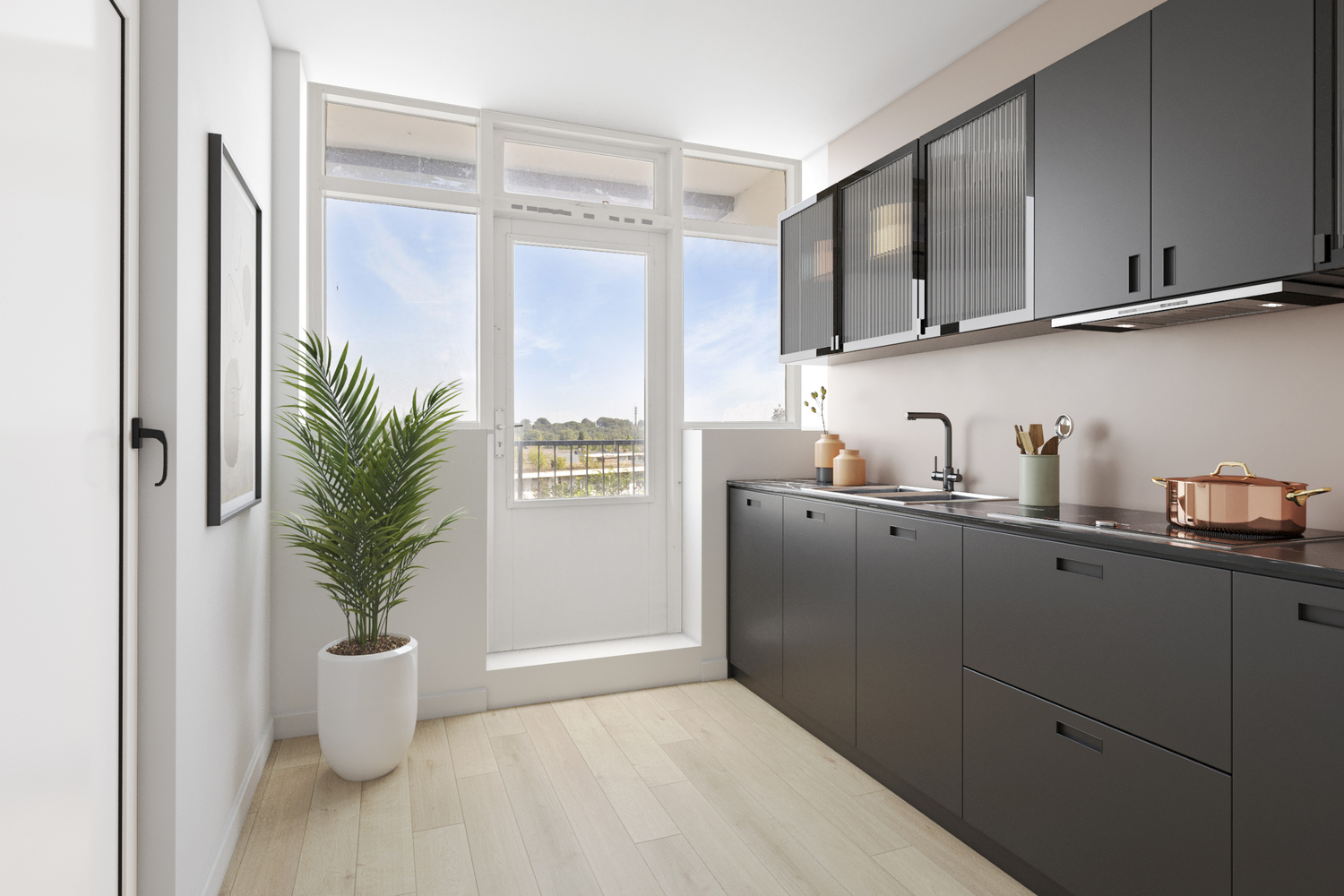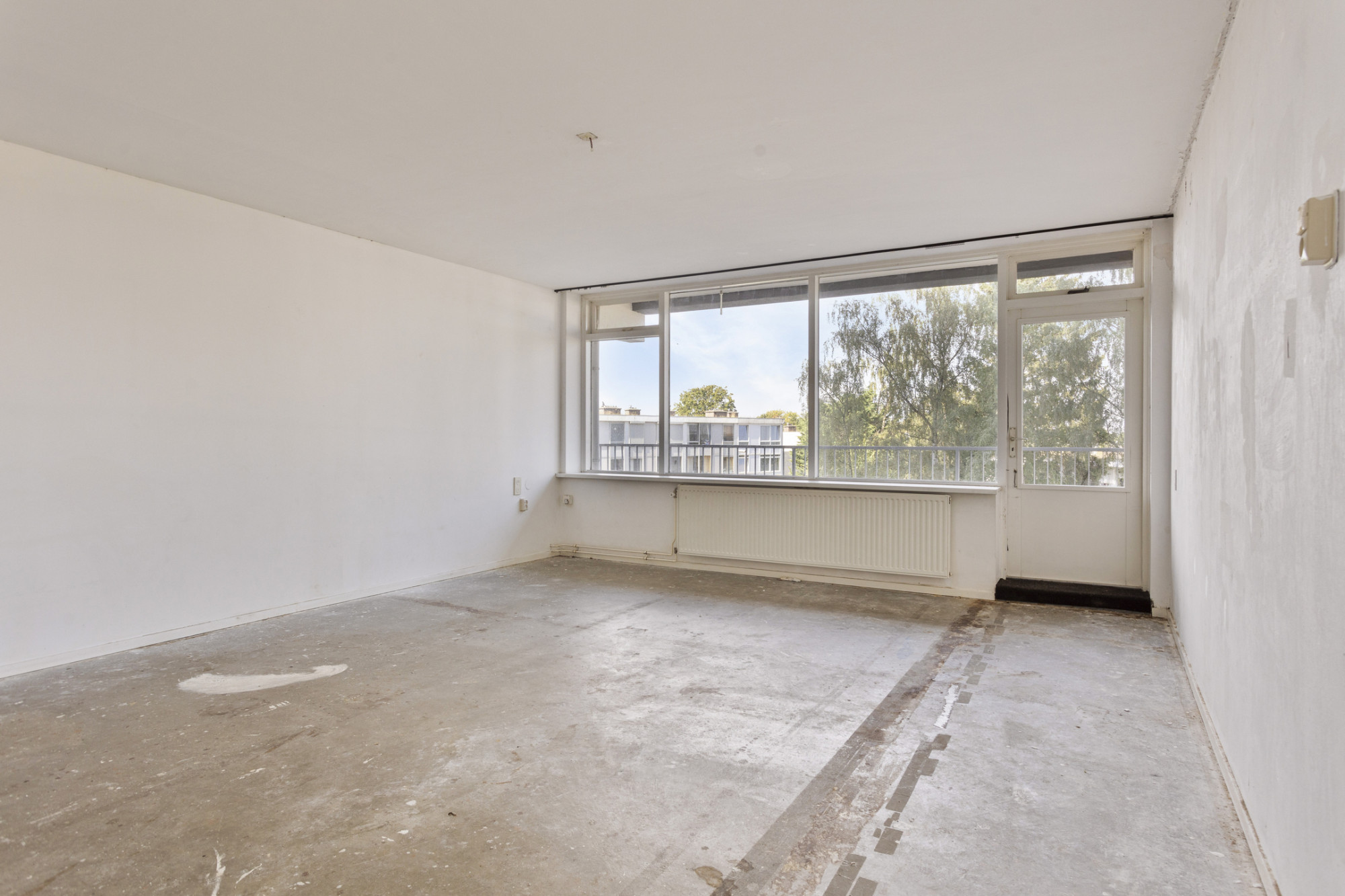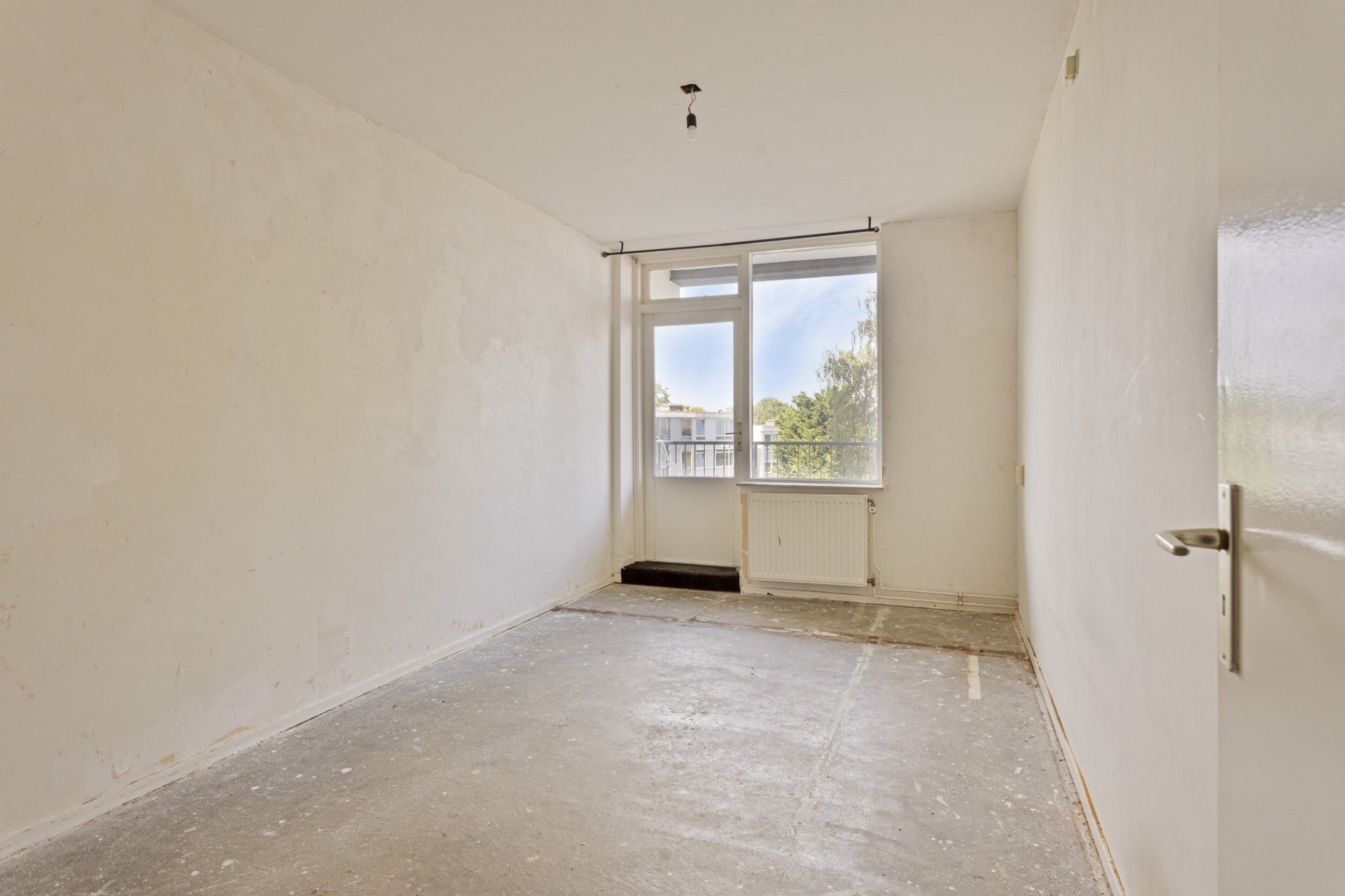 Slaapkamer 1 met dubbele muurkast met toegang tot het balkon.