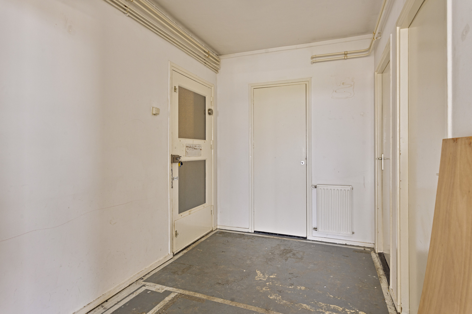 Verdeelhal met toegang tot de appartementen. Entree met ruime hal en toegang tot alle vertrekken; techniekruimte alwaar CV installatie (Intergas - eigendom en wasautomaat aansluiting).