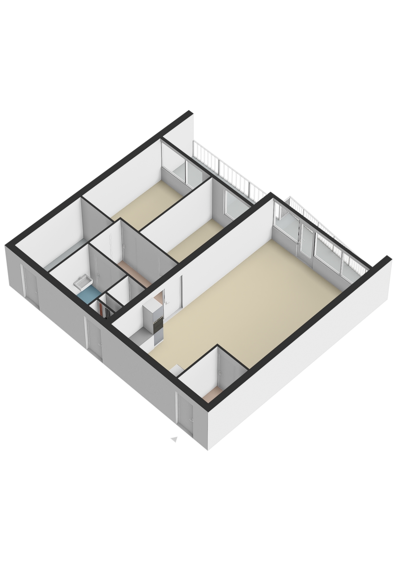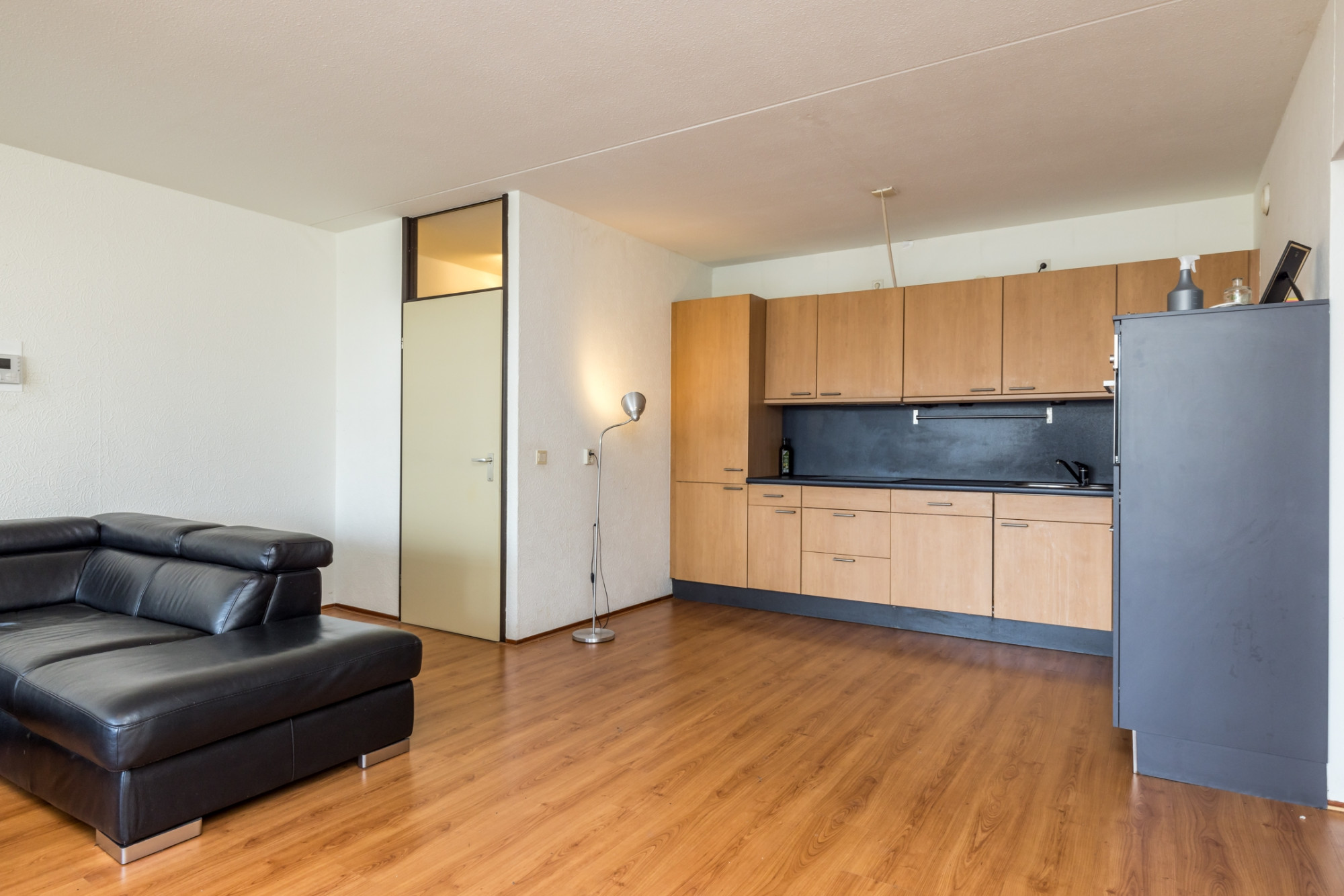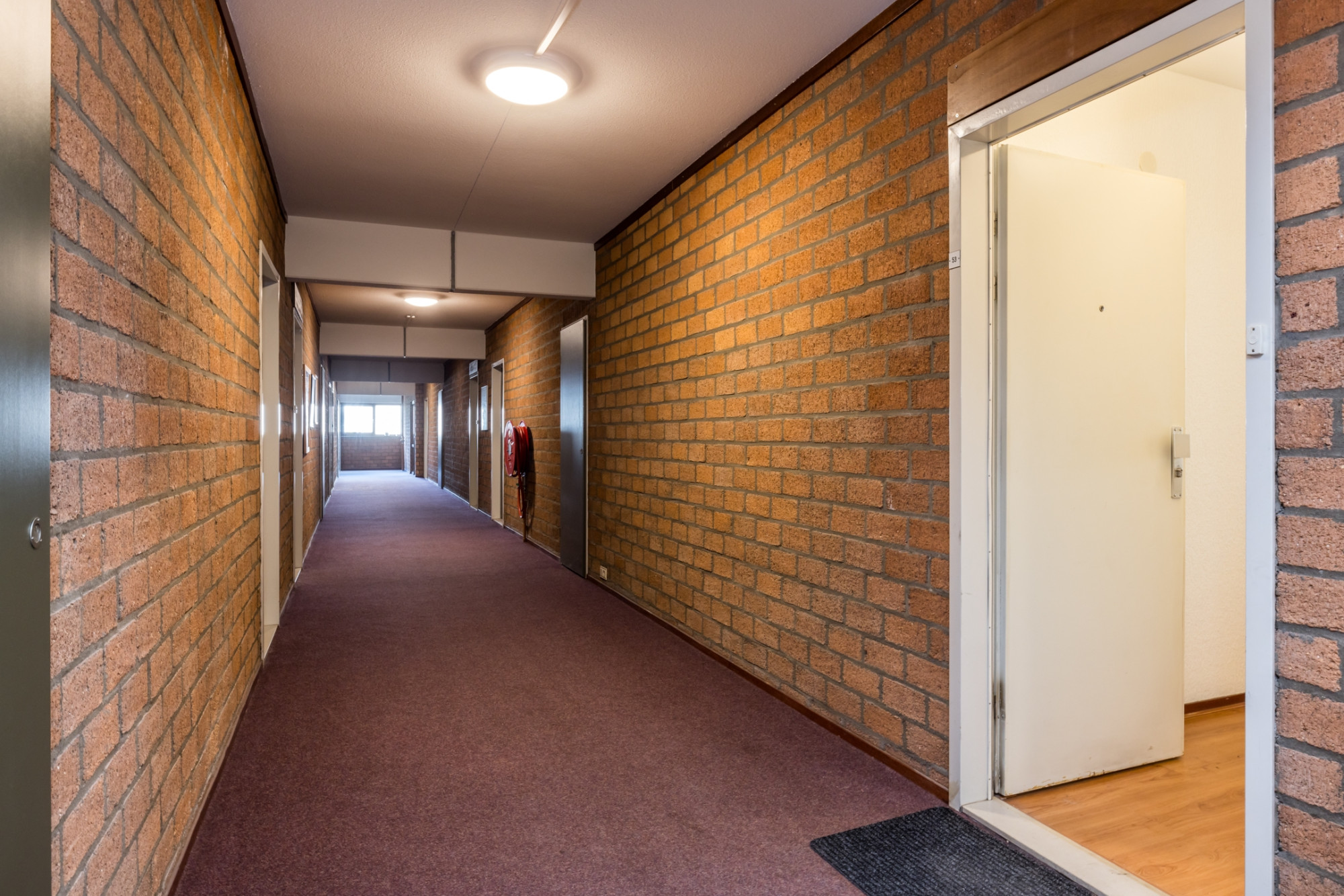 Het appartement is gelegen aan het begin van de galerij. Entree/hal met toegang tot de woonkamer met veel lichtinval en open keuken. De keuken is voorzien van een aanrechtcombinatie met verschillende boven- en onderkasten, afzuigkap en inductiekookplaat. Verdeelhal met toegang tot de 2 ruime slaapkamers en betegelde badkamer voorzien van een ligbad/ douche combinatie en wastafel. Hiernaast is de betegelde toiletruimte voorzien van een toilet en fontein. Bergruimte met opstelling van de verwarmingsinstallatie (stadsverwarming) en aansluitingen voor was apparatuur.