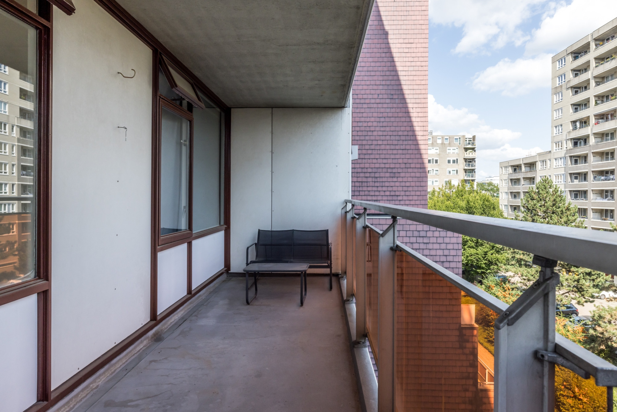Het zonnige en ruim gelegen balkon is bereikbaar vanuit de woonkamer. Het balkon is ca. 19m2 groot.
