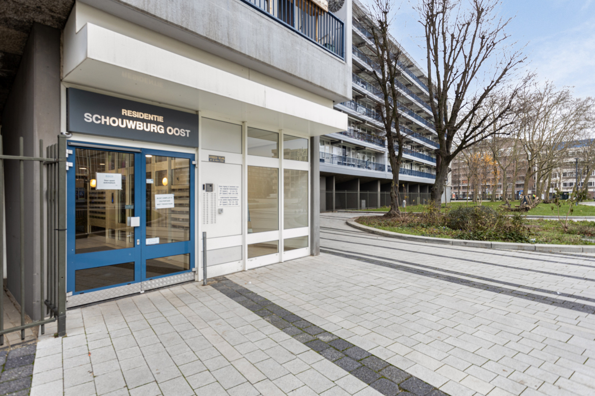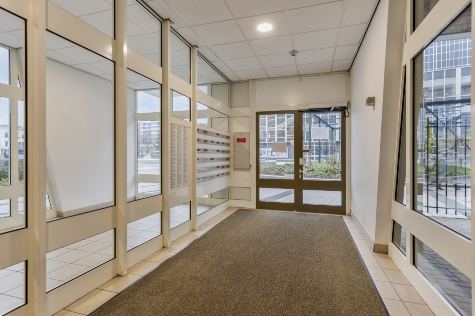 Centrale entree met brievenbussen, bellen plateau en lift installatie