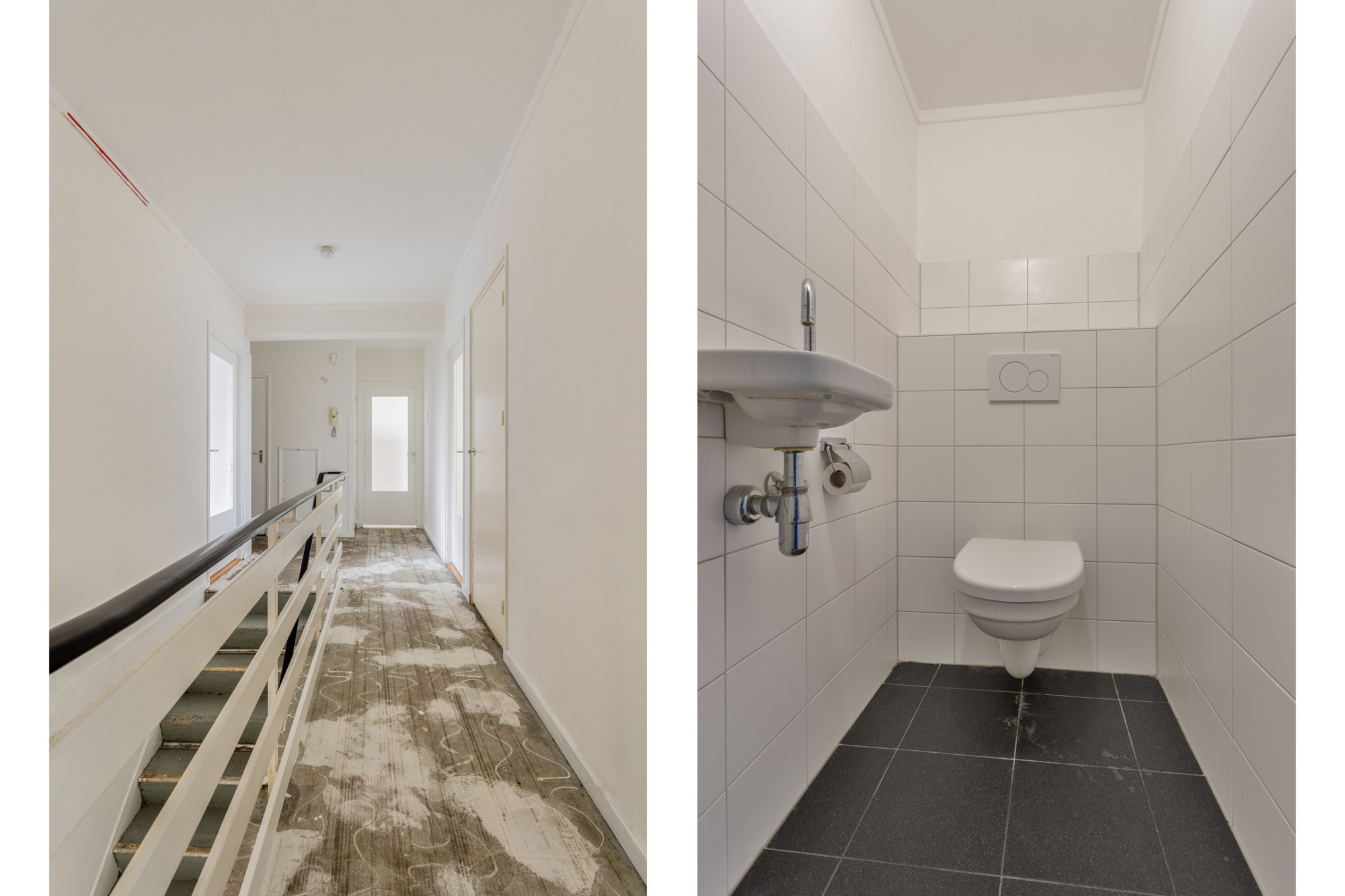 Hal met toegang tot alle vertrekken met muurkast en toiletruimte met wandcloset en fonteintje.