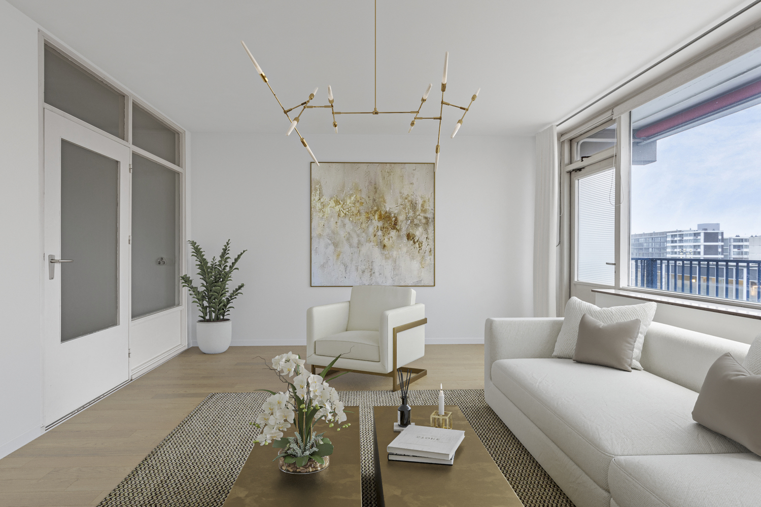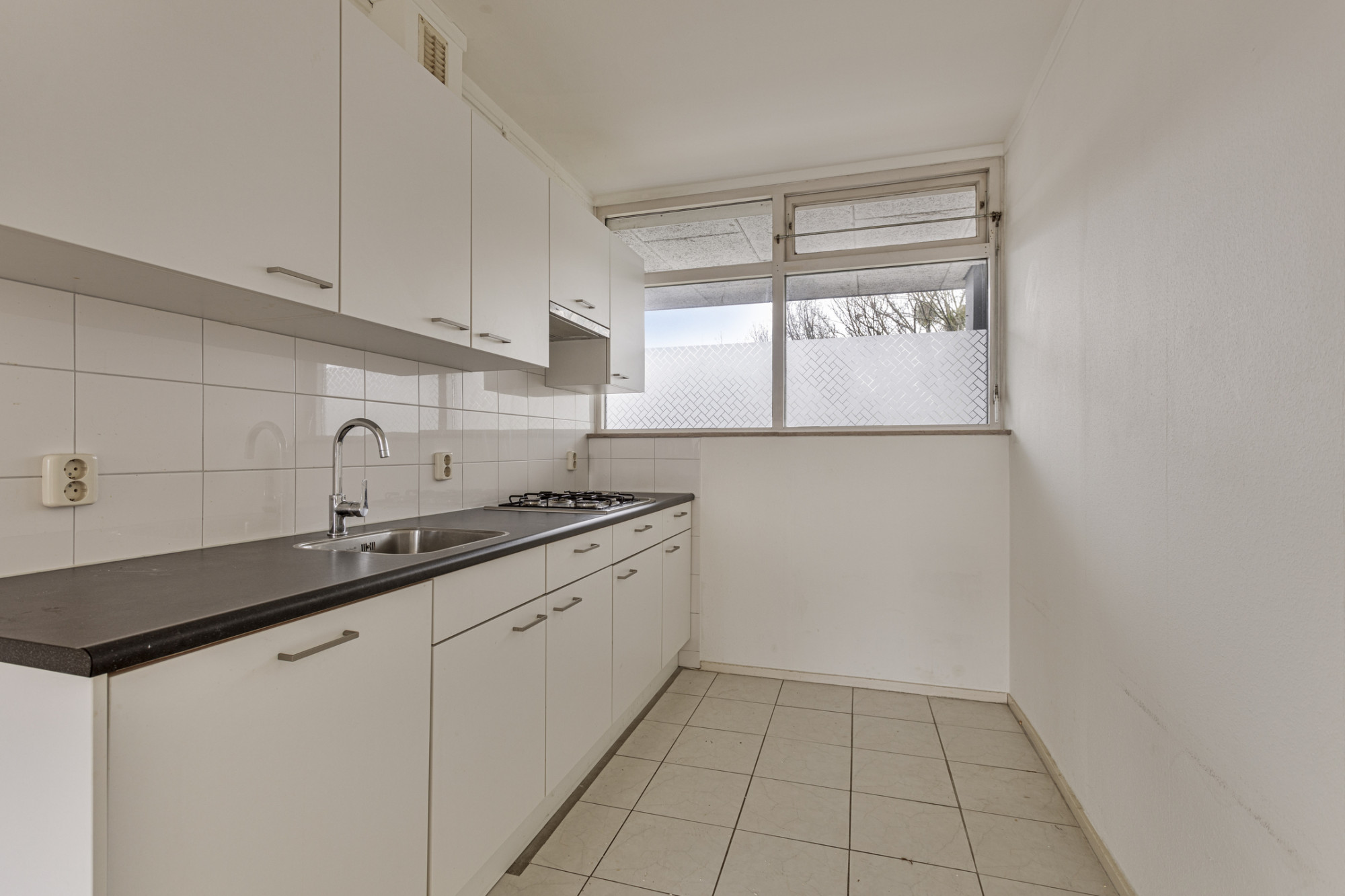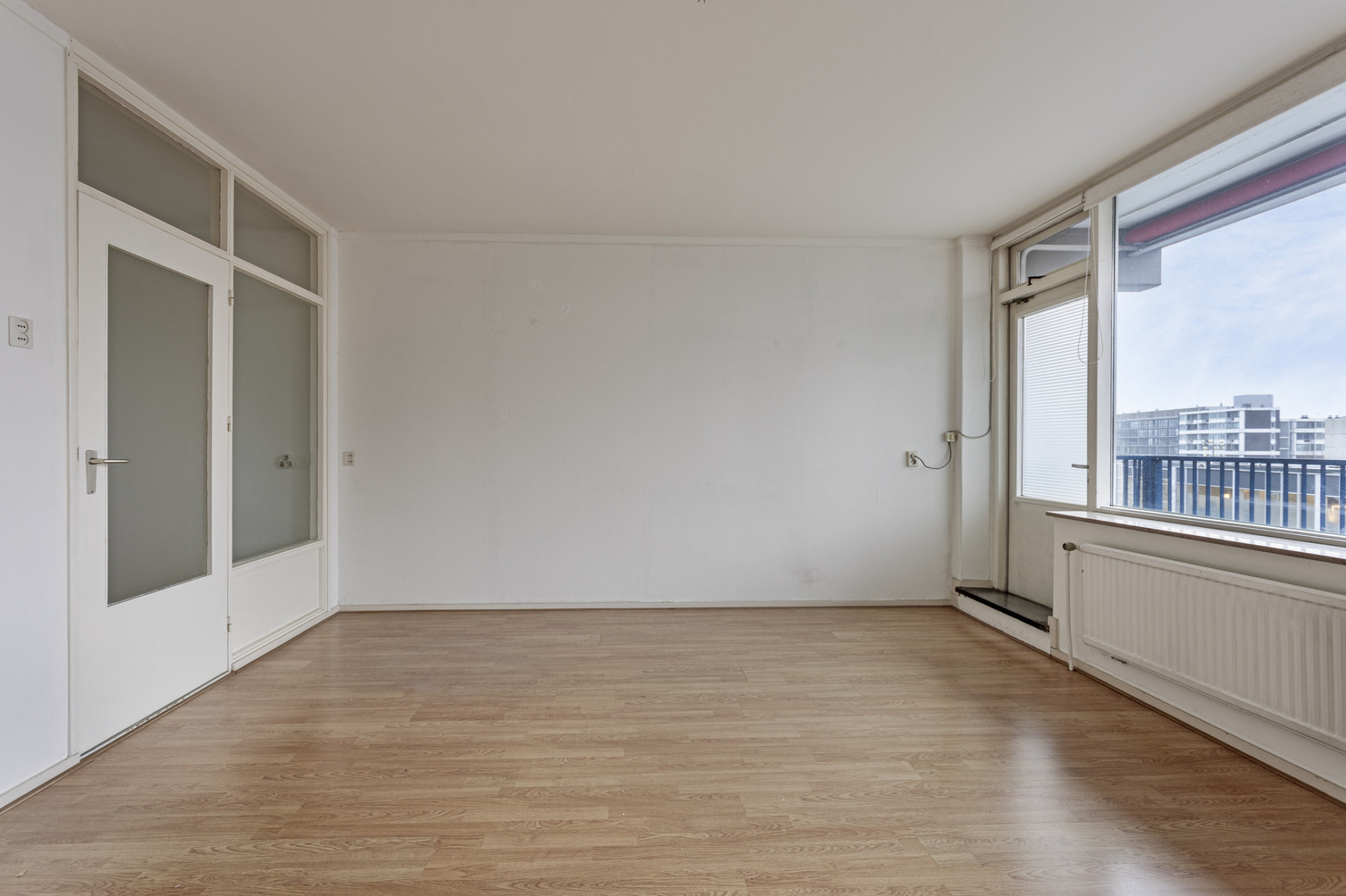 Lichte woonkamer (4.97 x 4.25 m) met vrij zicht met toegang tot het balkon (10.17 x 1.25 m); keuken (4,15 x 2.07 m) met keuken moderne keukeninstallatie met diverse onder- en bovenkasten, inbouwapparatuur te weten: 4 pits kookplaat, afzuigkap en vaatwasser.