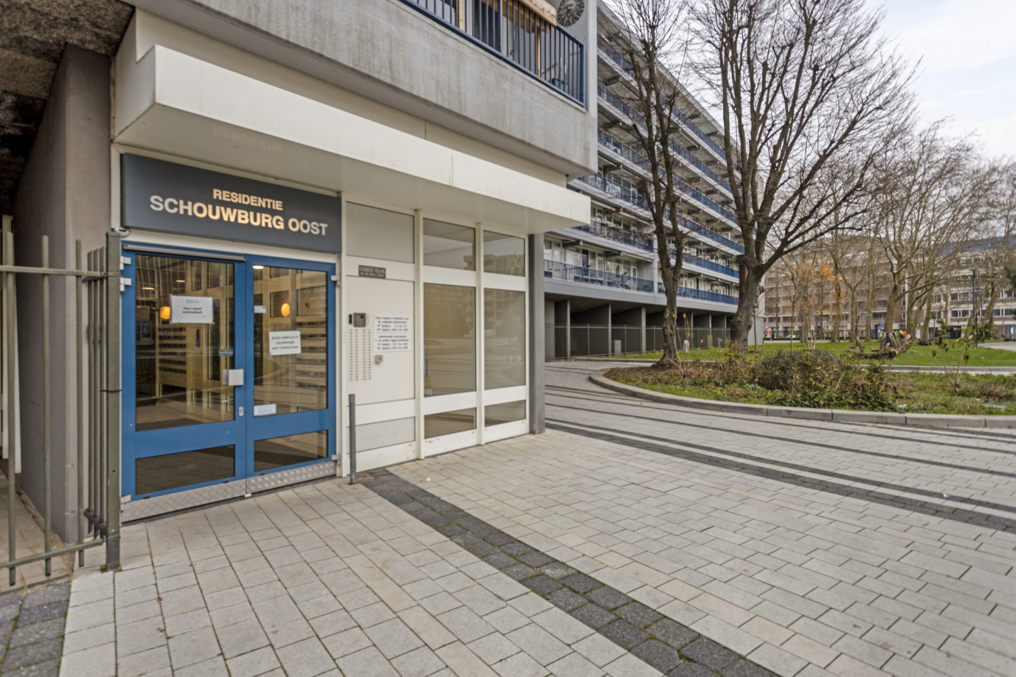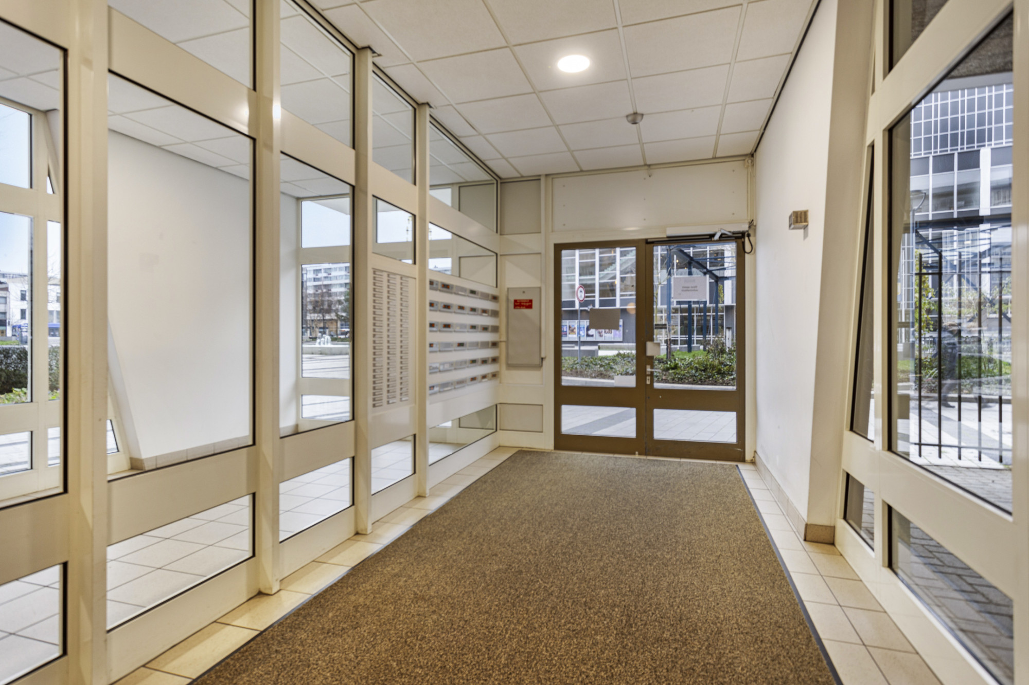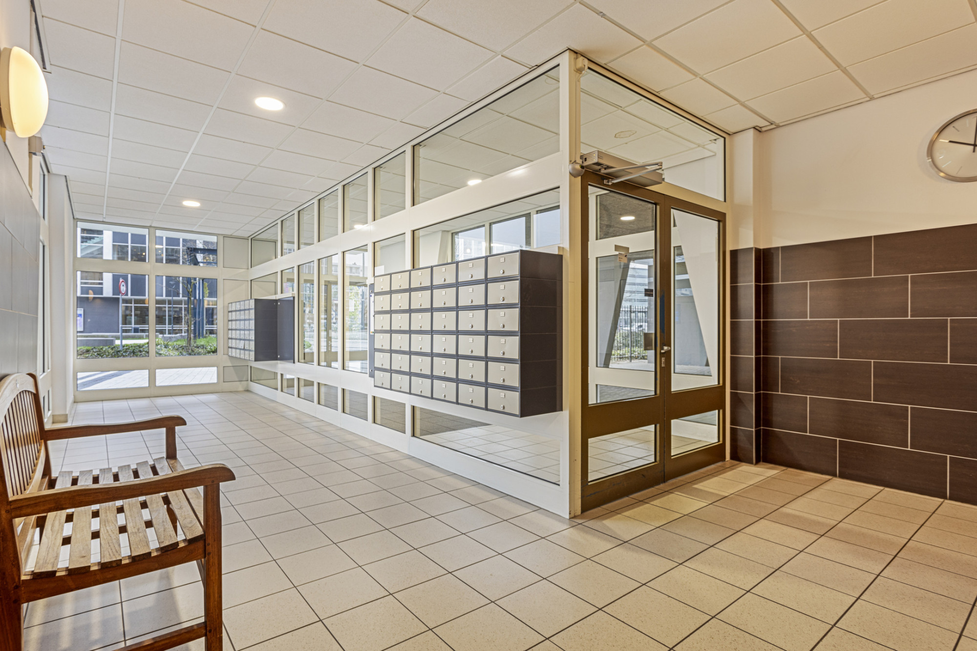 Centrale entree met brievenbussen, bellen plateau en lift installatie