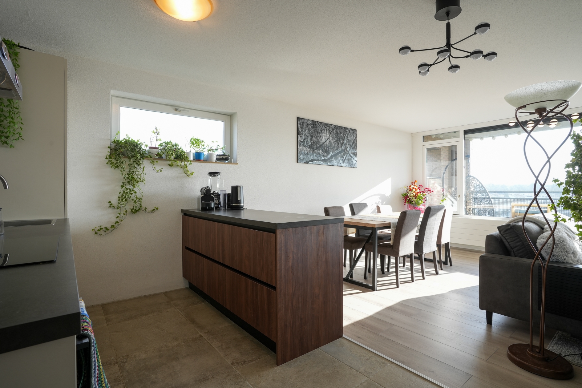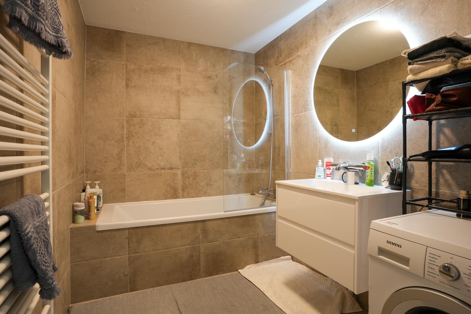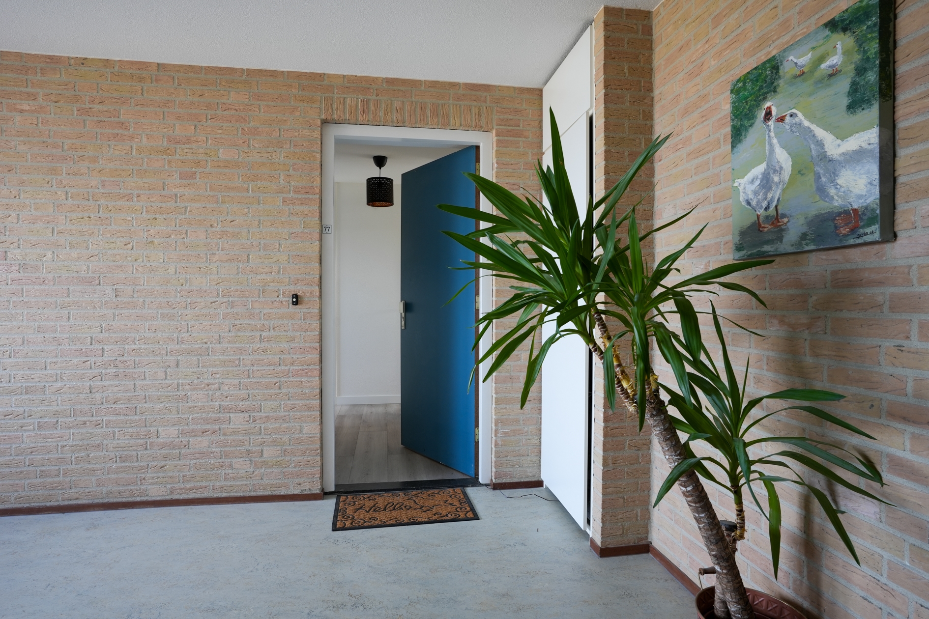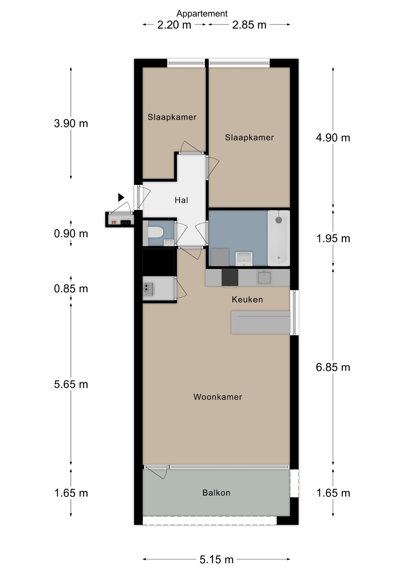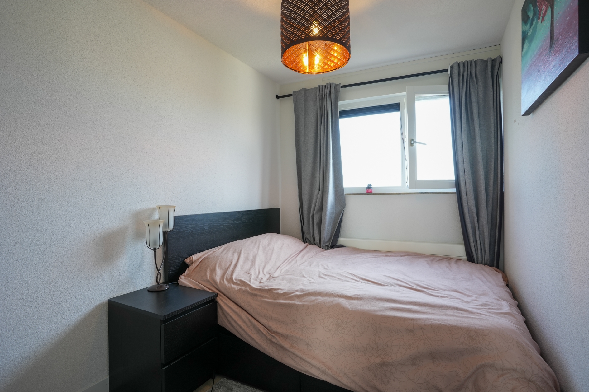 The front door can be reached from the elevator or the stairs. The recently renovated fully tiled bathroom has a bath / shower combination with glass splashback, a modern washbasin, washing machine connection and design radiator. The living room with lots of light has a modern laminate floor that runs through the entire apartment. From the living room you have access to a spacious covered balcony with a view of lots of greenery. The open, modern kitchen is equipped with a refrigerator, gas hob and extractor hood. The two bedrooms are respectively 4.90m x 2.85m and 3.90m x 2.20m. Separate central heating room is equipped with its own HR combi central heating boiler.