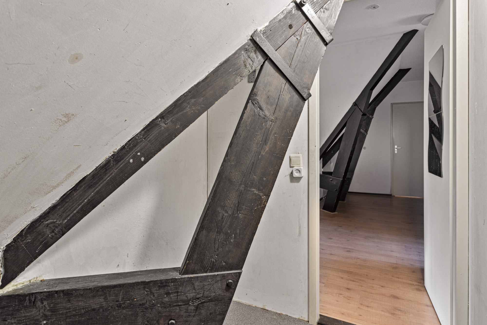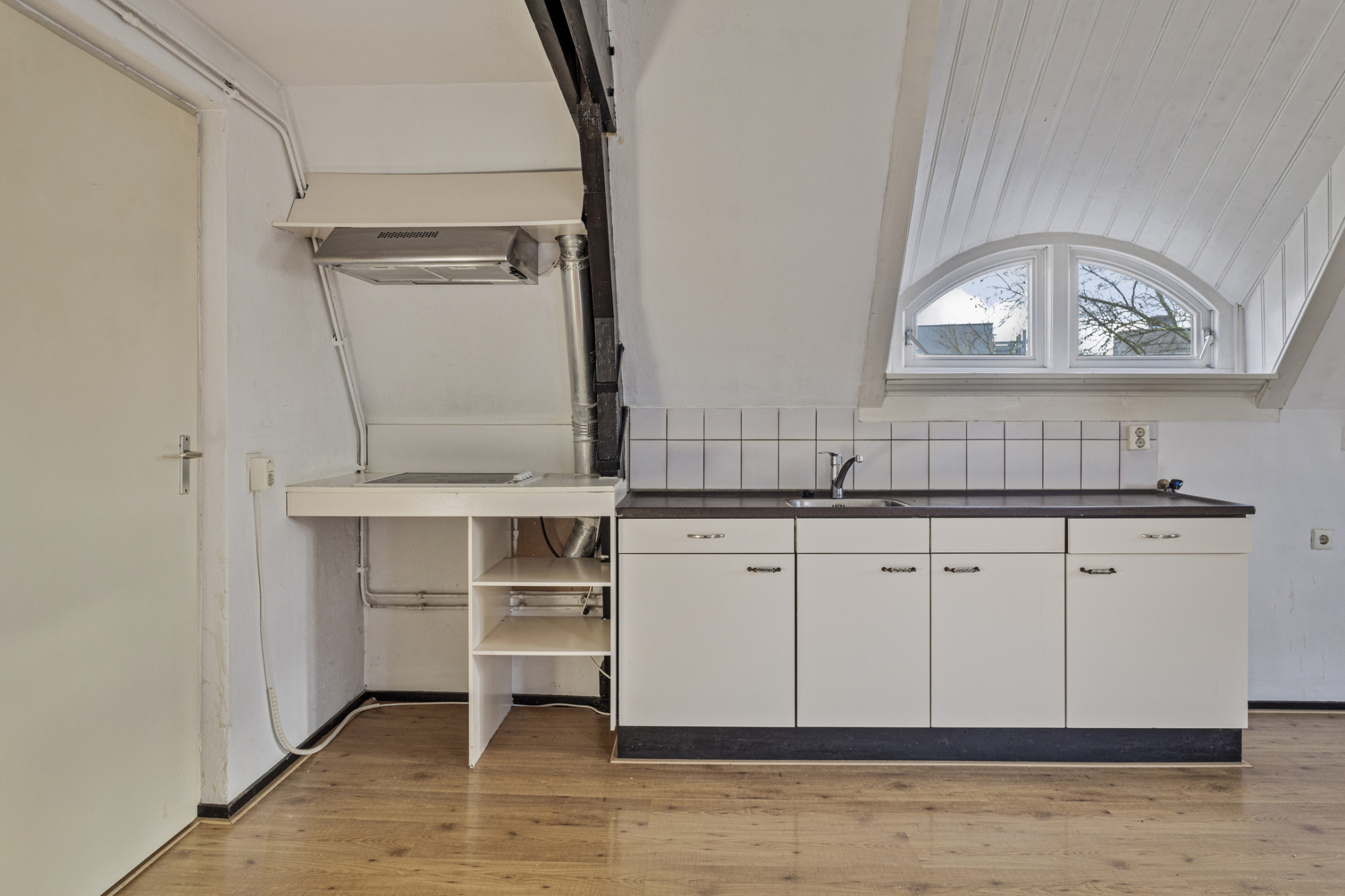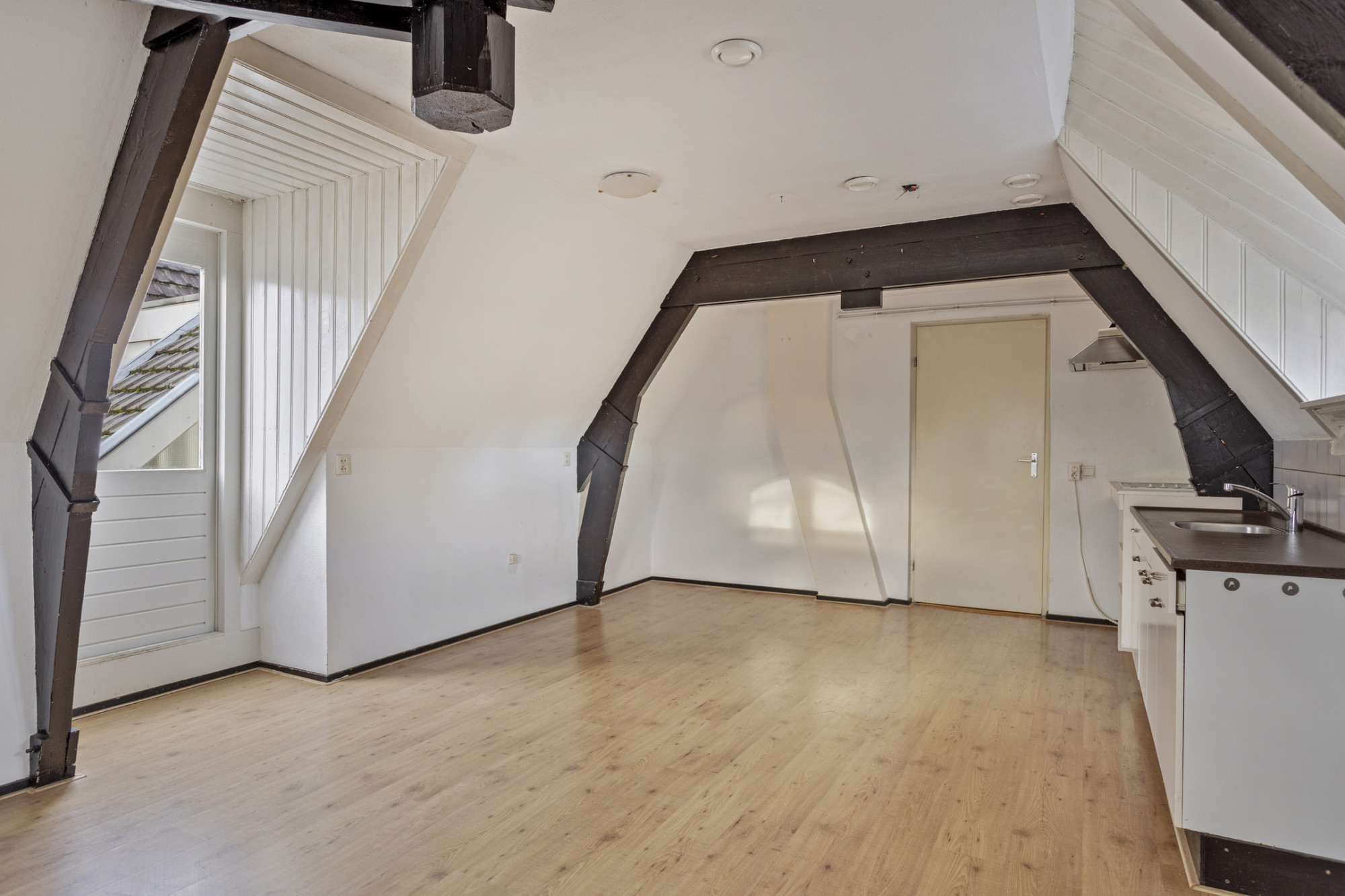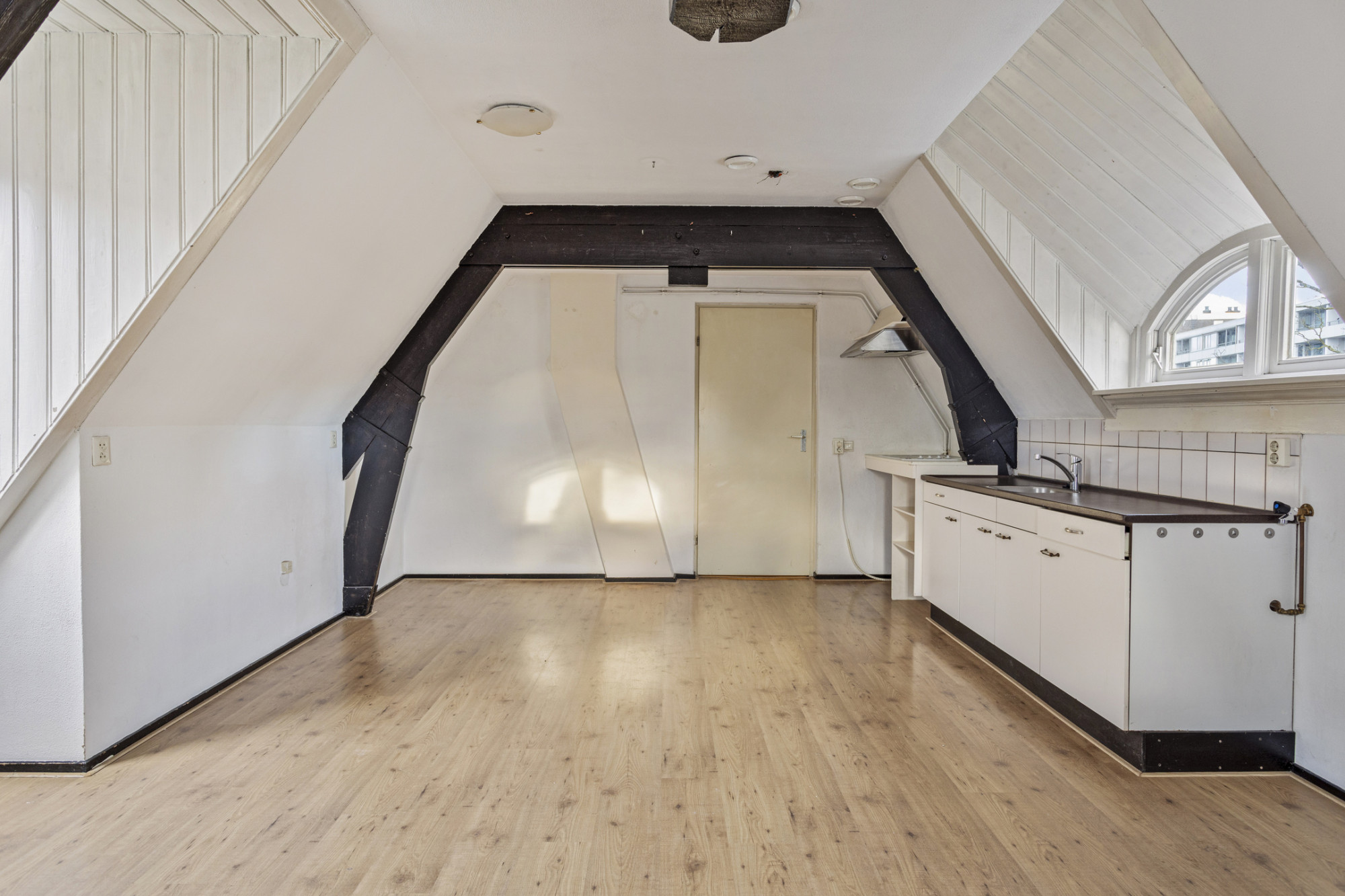 Verdeelhal met toegang tot 2 appartementen. Entree met toegang tot de ruime hal, met berging. Woonkamer met open keuken (6.47 x 3.60 m totaal circa 24 m²) en eenvoudige keukeninstallatie met diverse onder- en bovenkasten. Vanuit de woonkamer toegang tot het riante dakterras met optimale privacy (6.50 x 3.85 m).