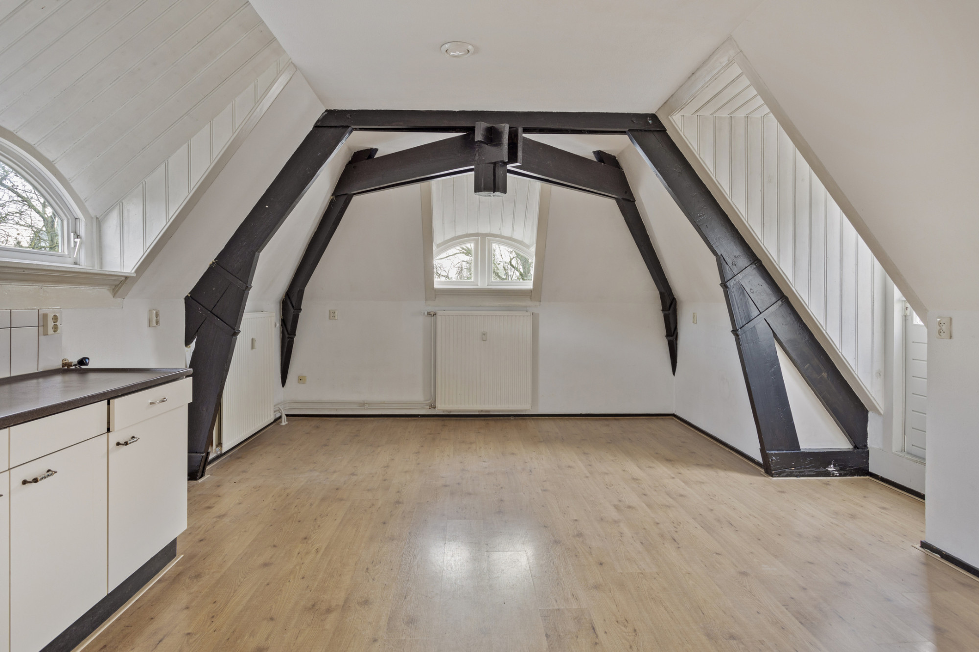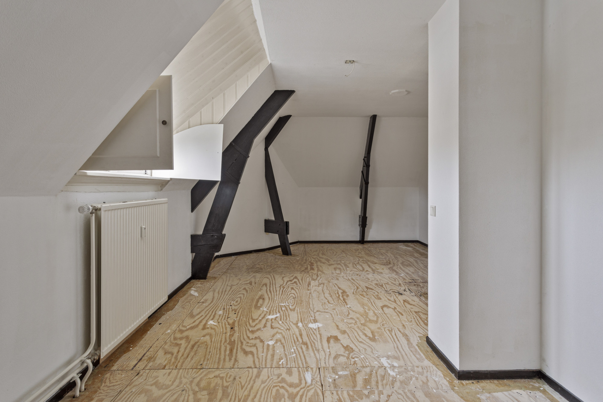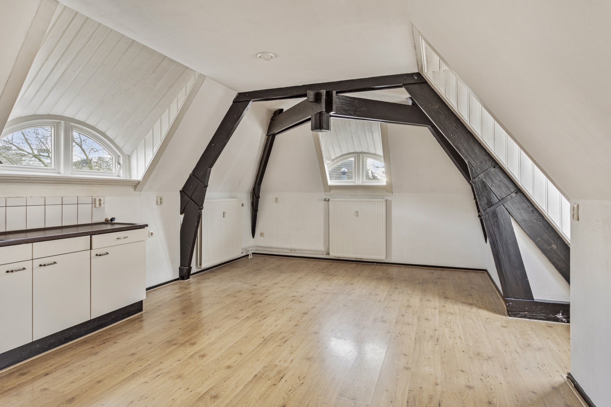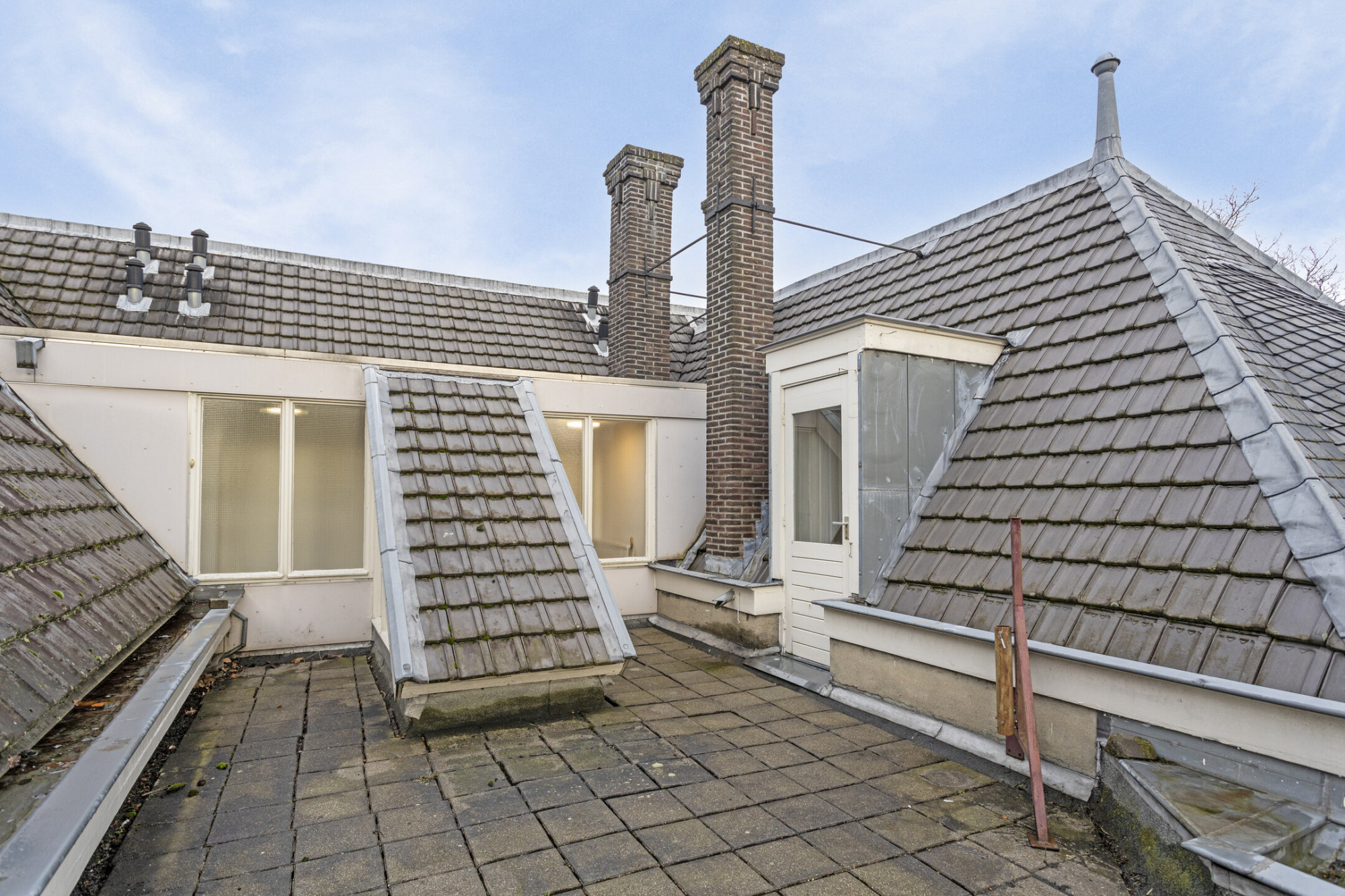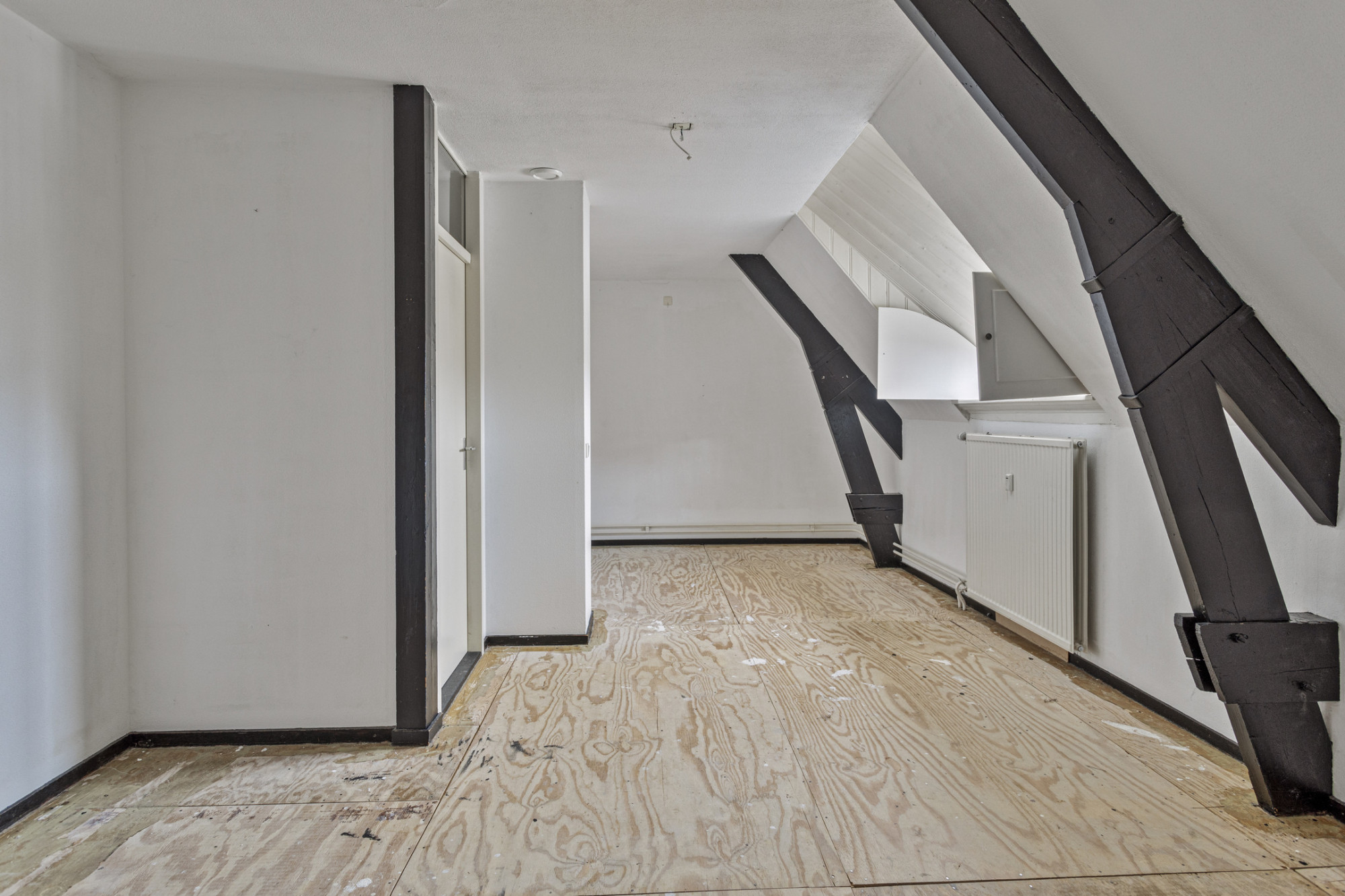 Verdeelhal met toegang tot 2 appartementen. Entree met toegang tot de ruime hal, met berging. Woonkamer met open keuken (6.47 x 3.60 m totaal circa 24 m²) en eenvoudige keukeninstallatie met diverse onder- en bovenkasten. Vanuit de woonkamer toegang tot het riante dakterras met optimale privacy (6.50 x 3.85 m).