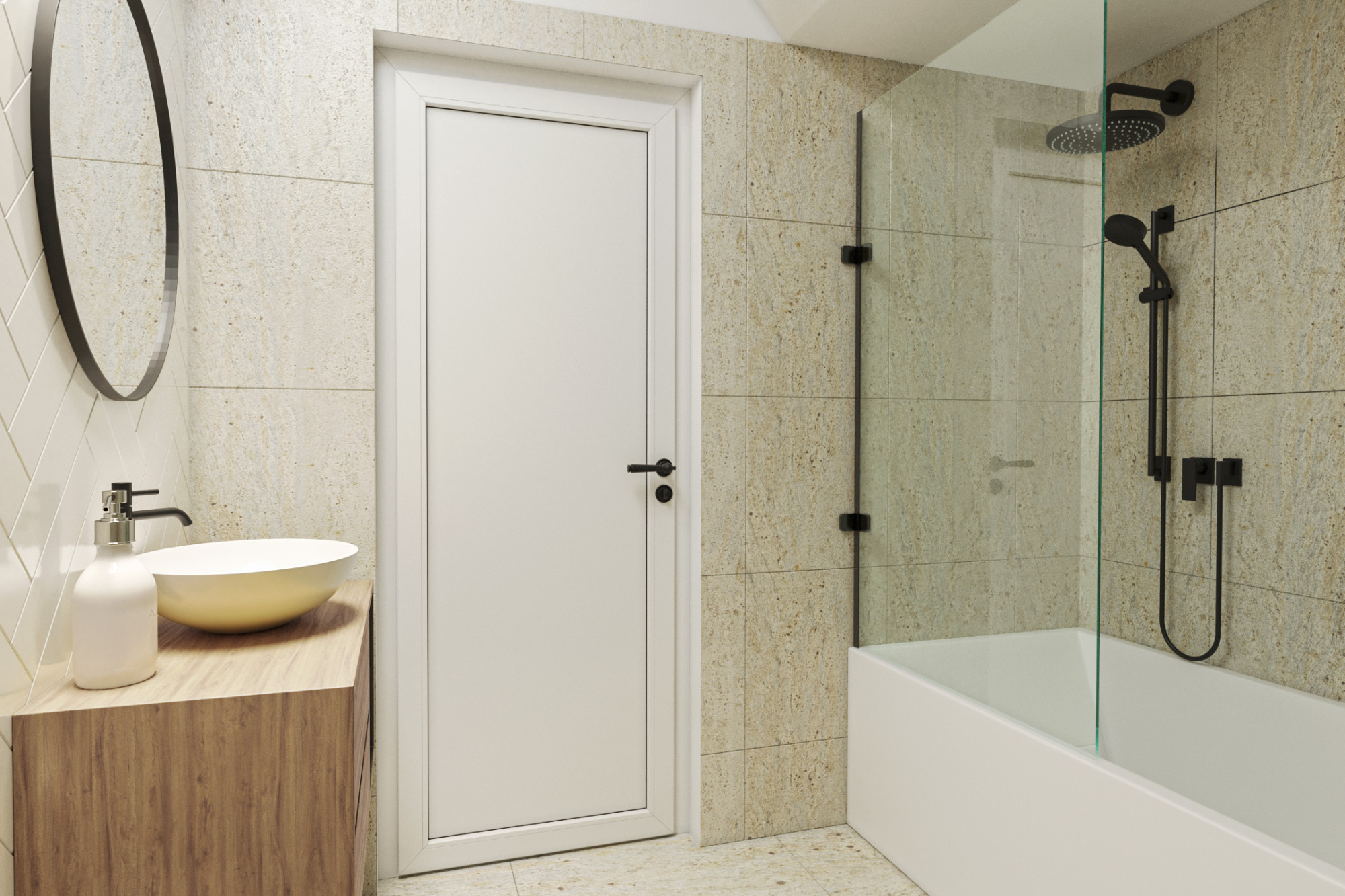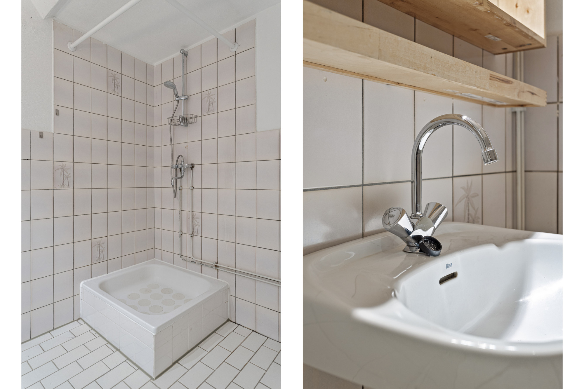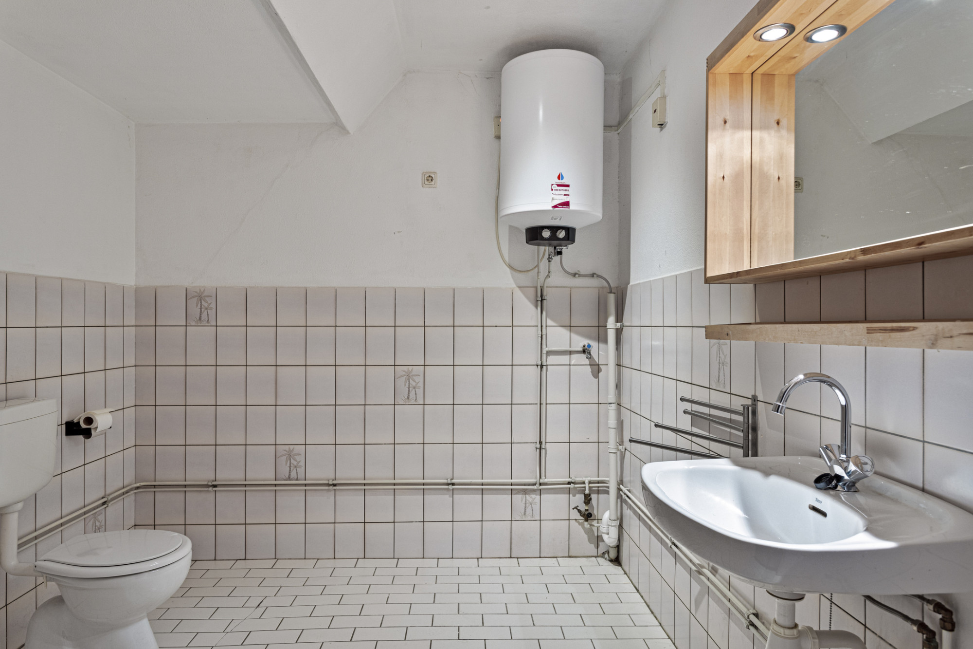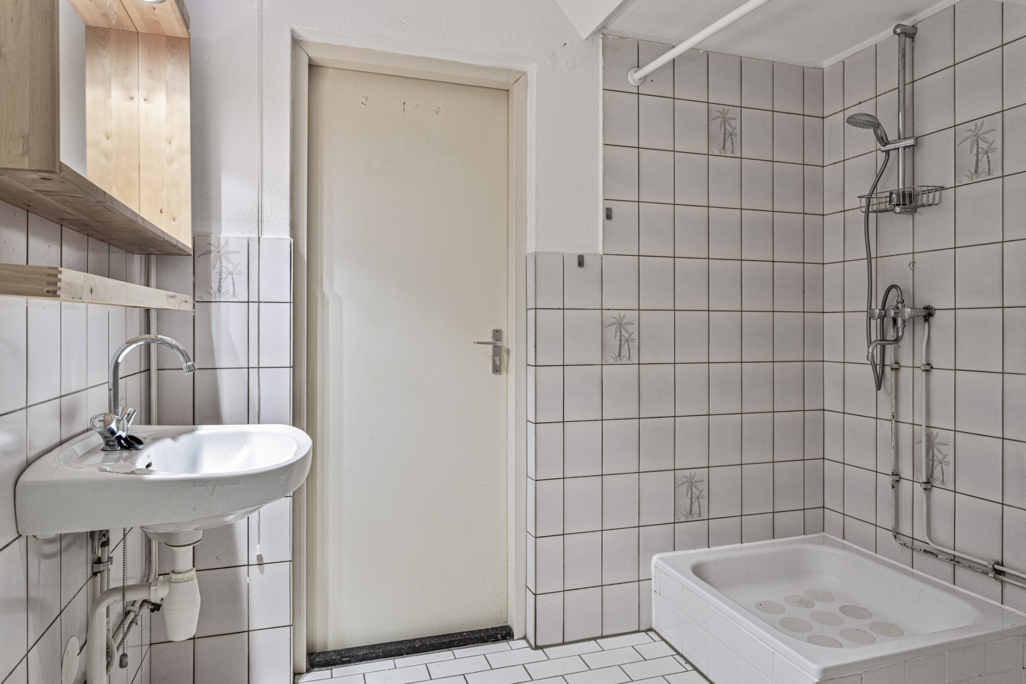 Badkamer (2.53 x 2.67 m) met douche vaste wastafel en warmwater boiler.