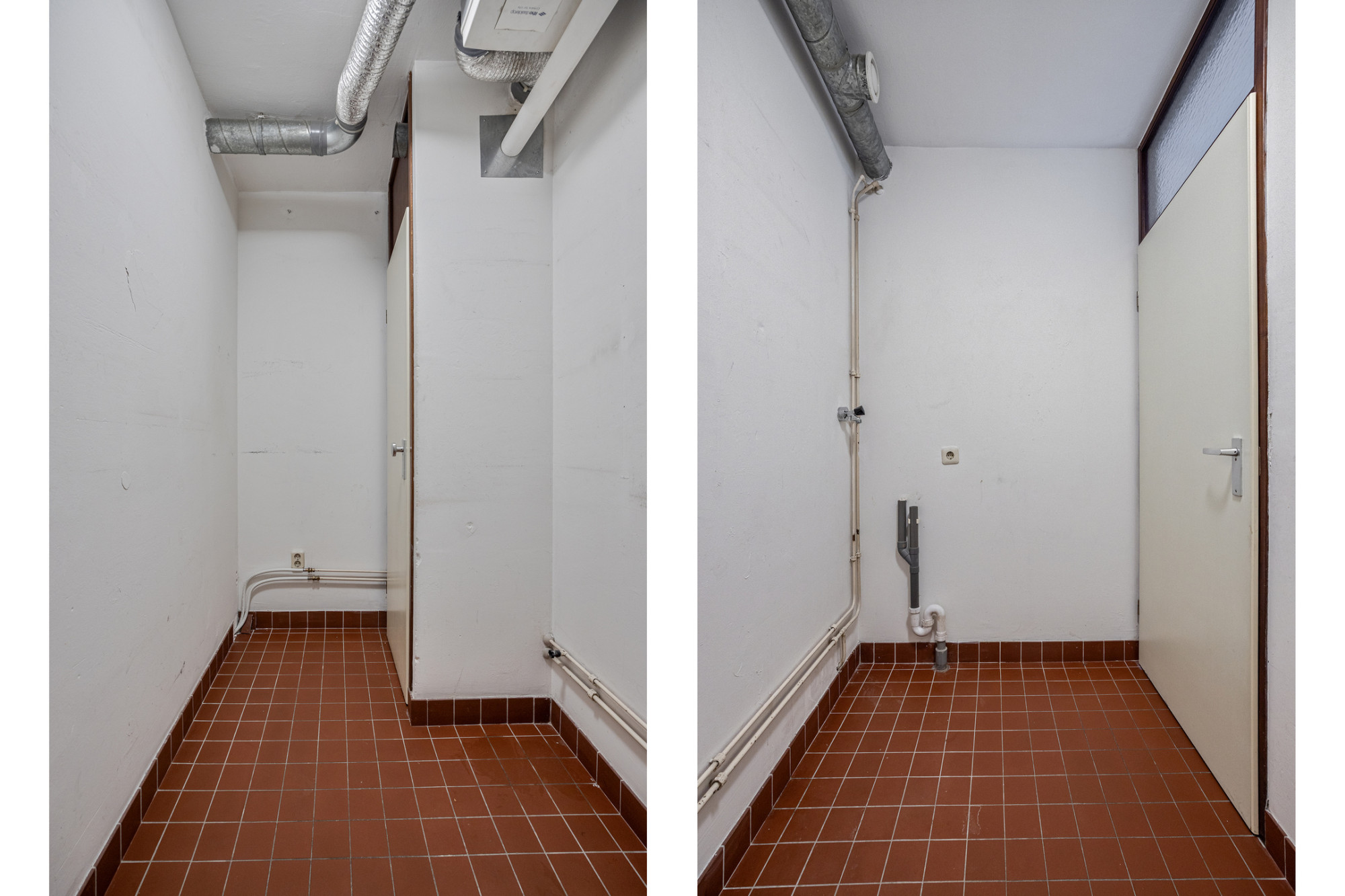 Bijkeuken/wasruimte/technische ruimte (2.80 x 1.40 m) met opstelling CV combi installatie (CR Remeha Tzerra, circa bouwjaar 2019), mechanische ventilatie box, wasmachine aansluiting en overige berging.