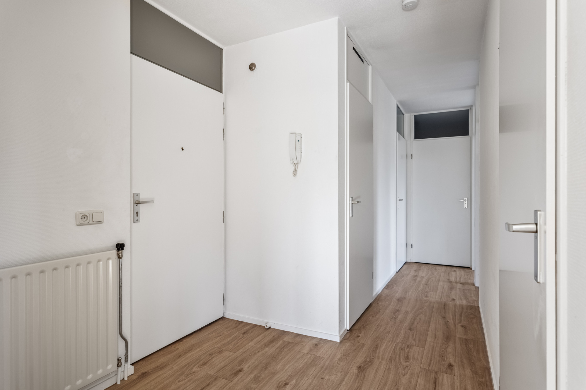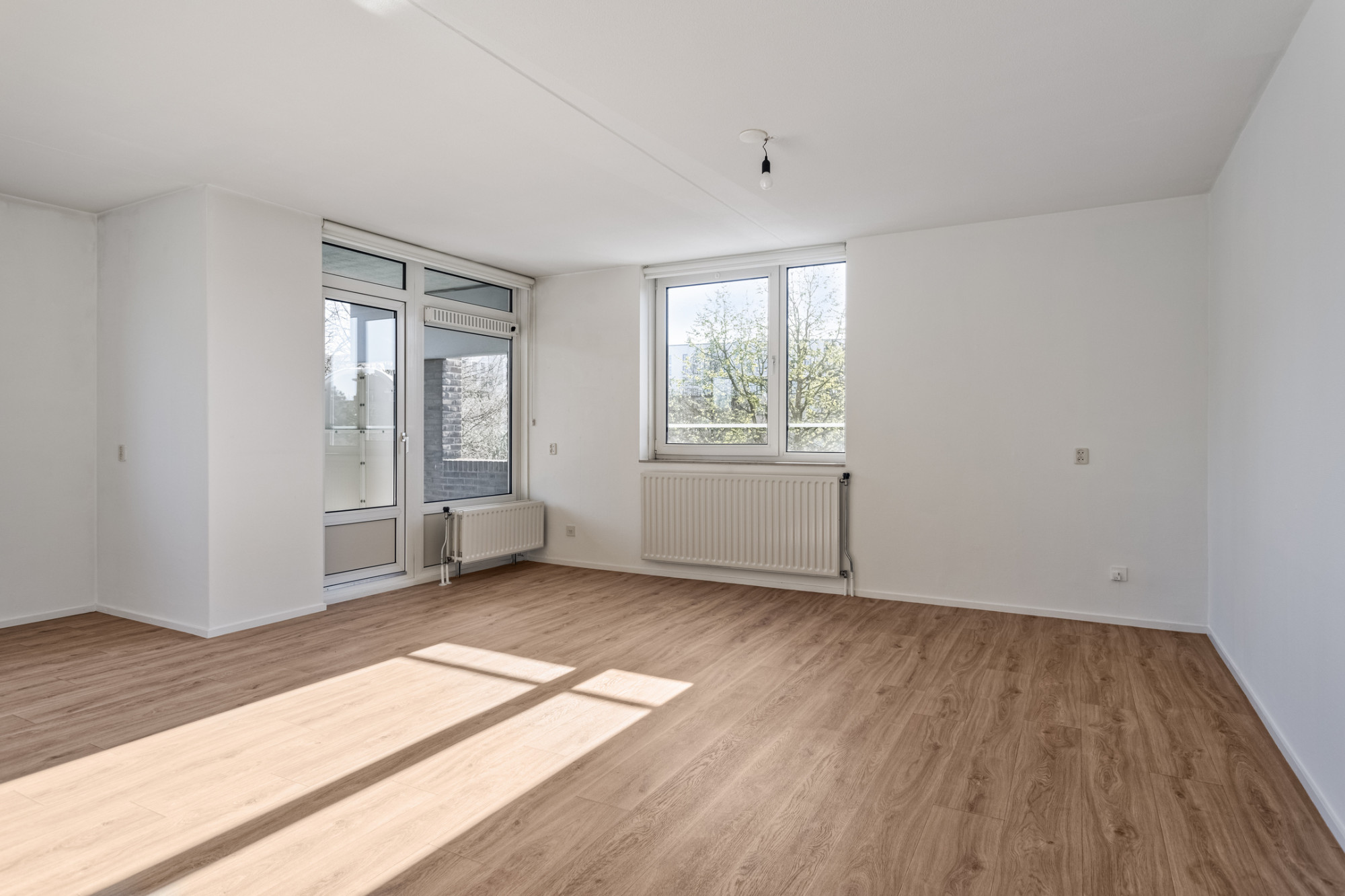 Aan de rand van het centrum gelegen appartement met o.a.: woonkamer met half-open keuken, 2 slaapkamers, badkamer met inloopdouche, separaat toilet, inpandige berging en eigen vaste parkeerplaats op afgesloten terrein; gelegen nabij winkels, uitvalswegen en NS station.