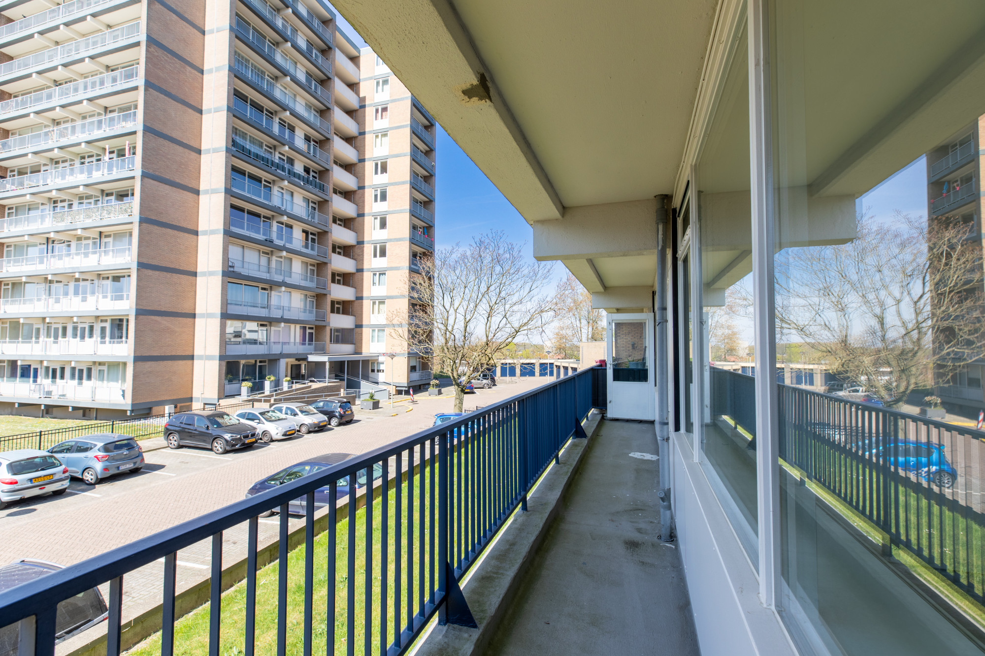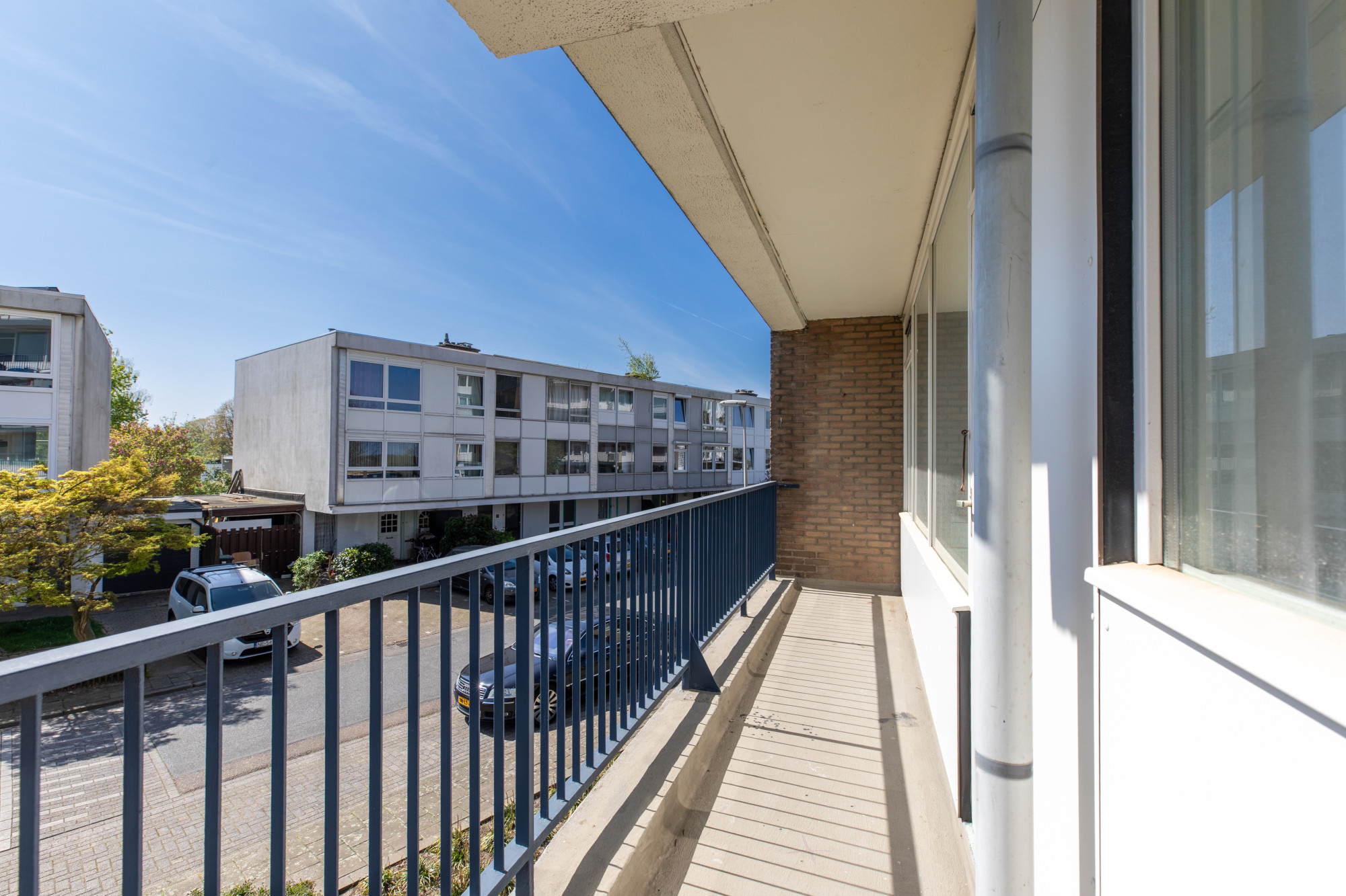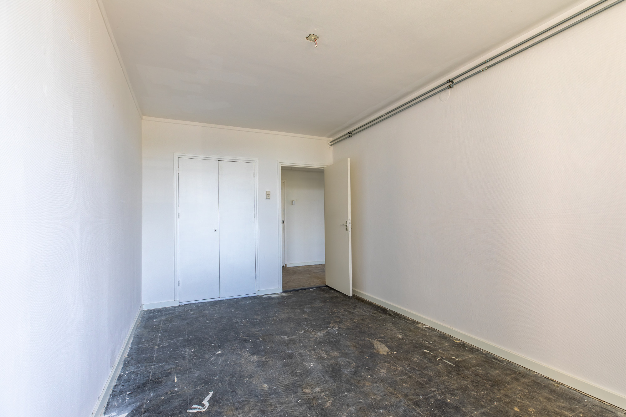 Slaapkamer 1 met dubbele muurkast met toegang tot het balkon.