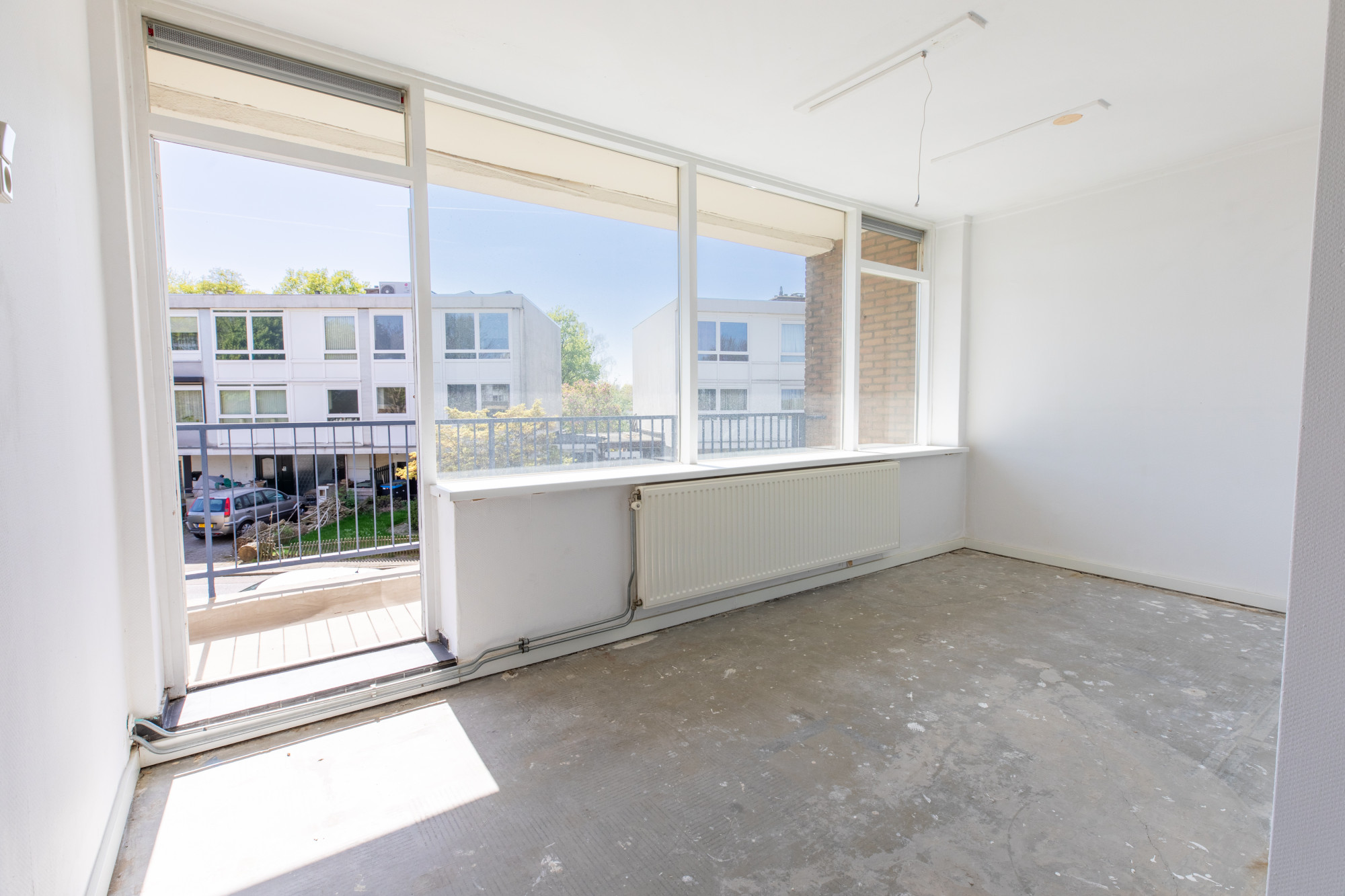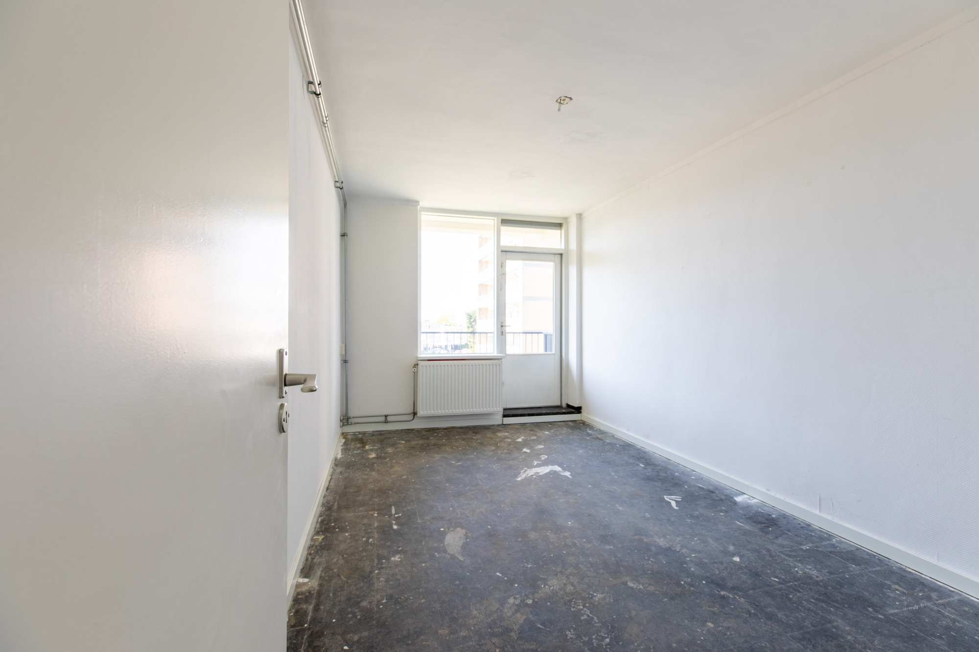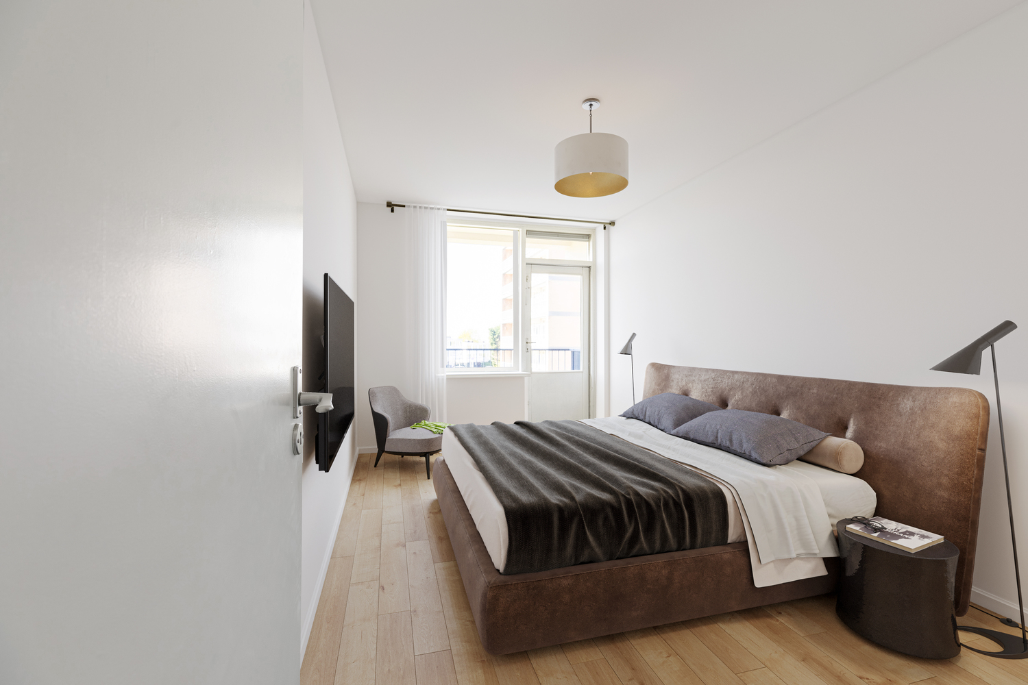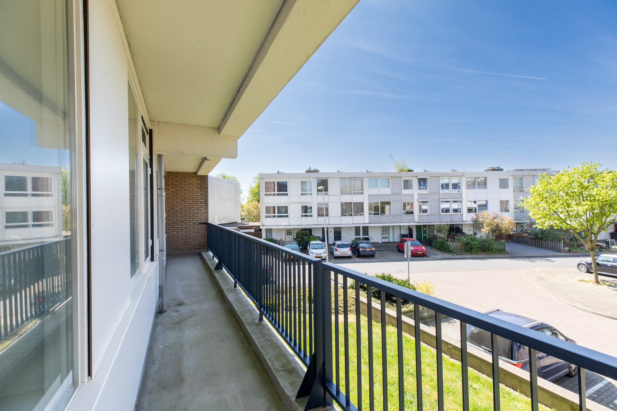 Slaapkamer 1 met dubbele muurkast met toegang tot het balkon.