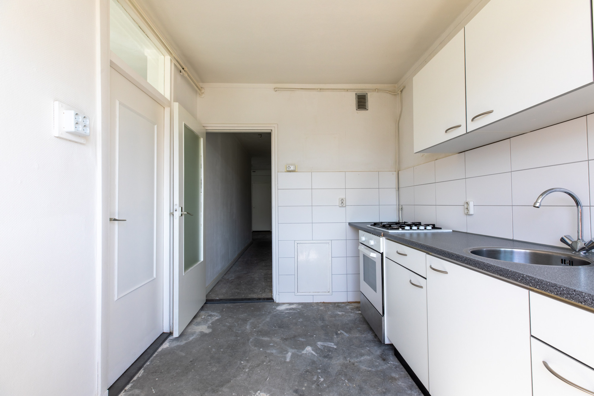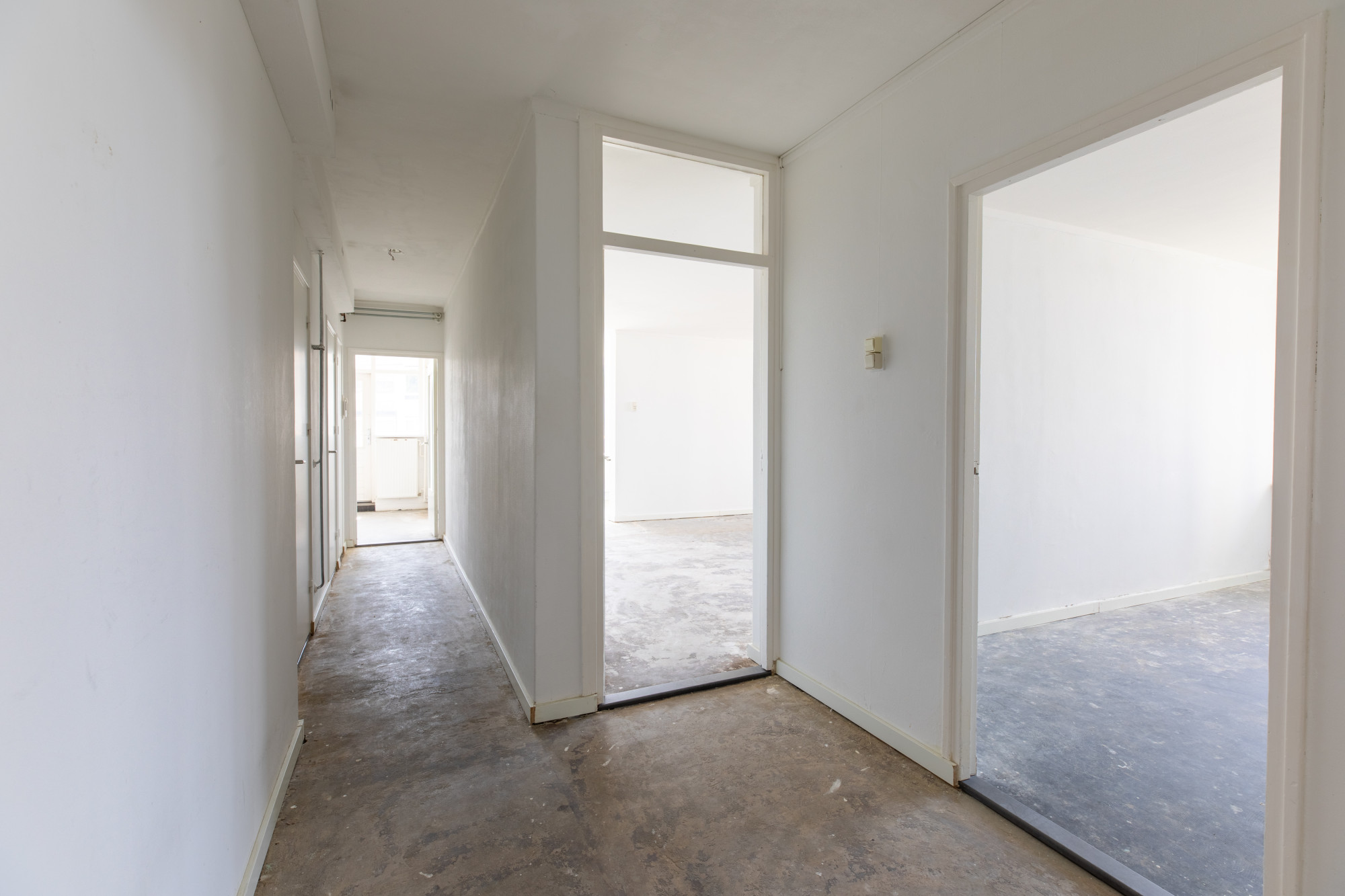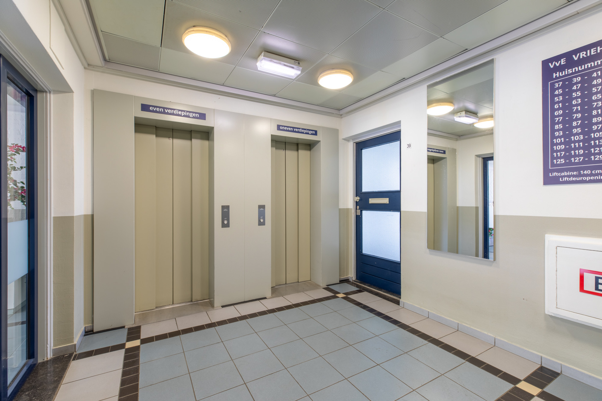 Verdeelhal met toegang tot de appartementen. Entree met ruime hal en toegang tot alle vertrekken; techniekruimte alwaar CV installatie (Intergas - eigendom en wasautomaat aansluiting).