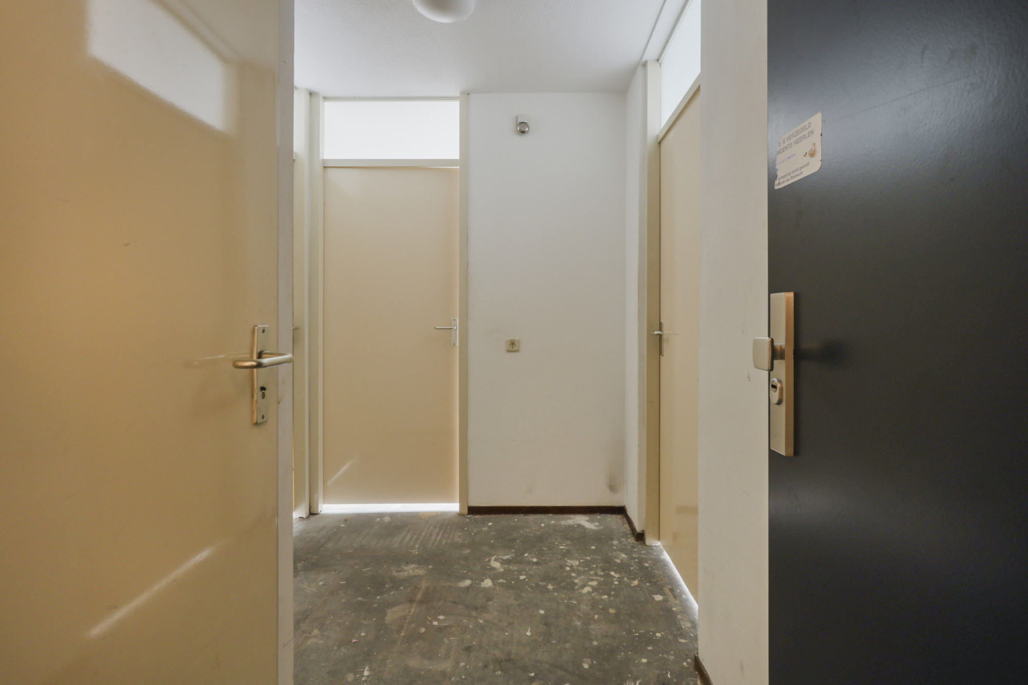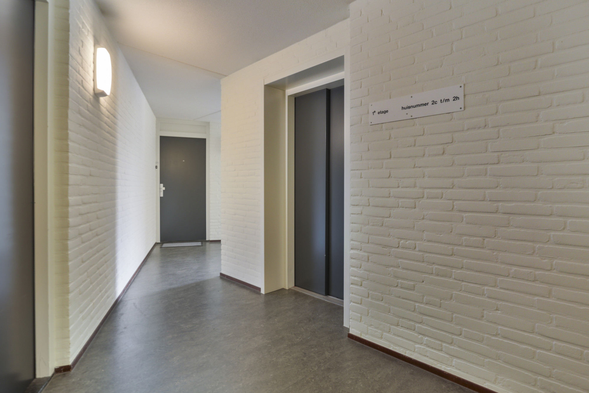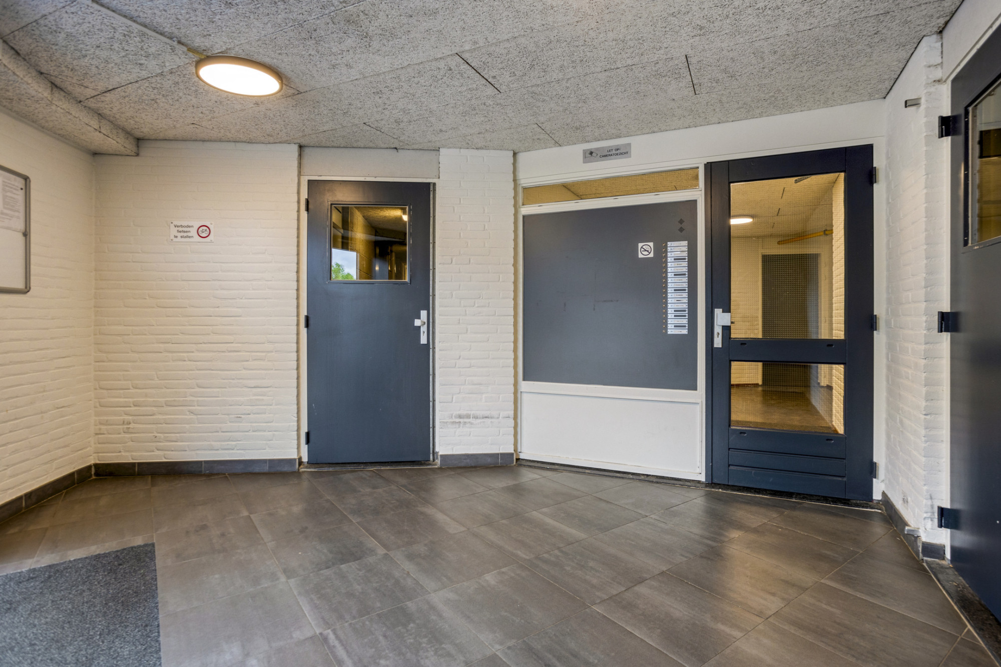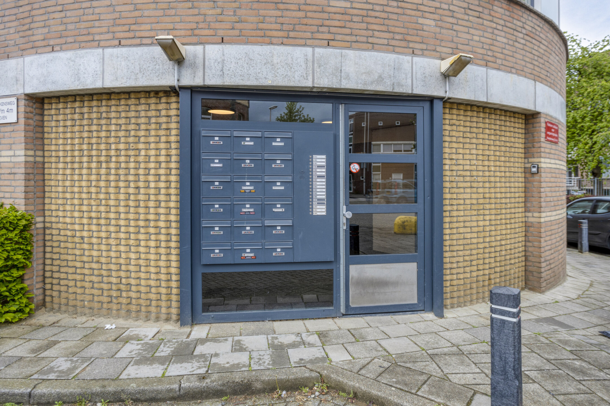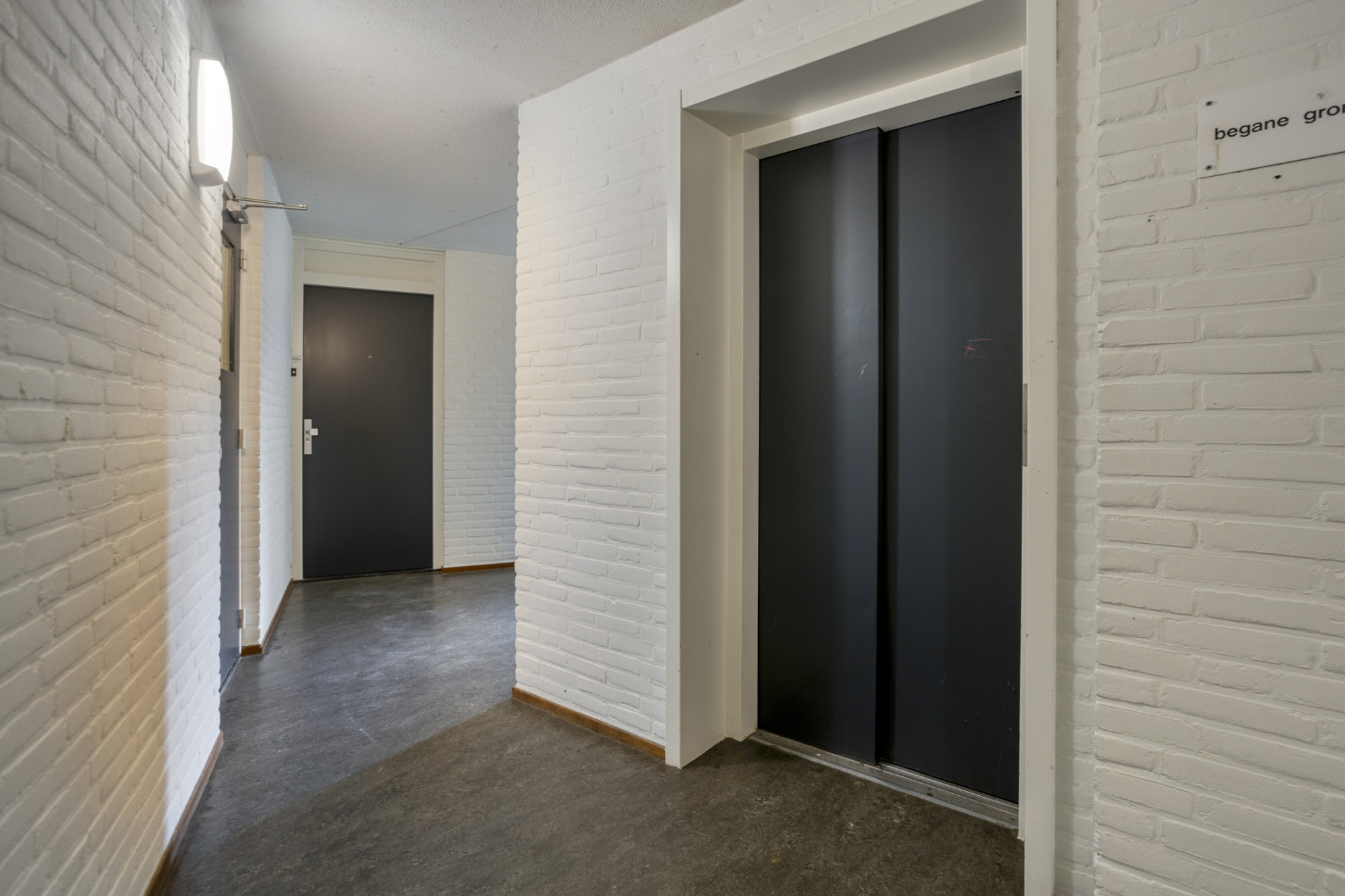 Centrale entree met bellenplateau, brievenbussen en lift installatie; afgesloten kelderberging.