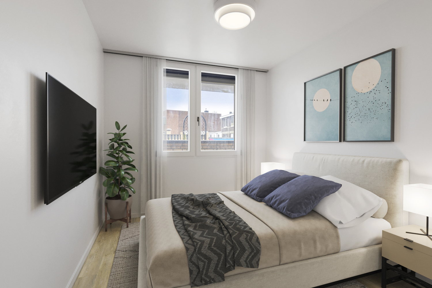 Aan de rand van het centrum gelegen appartement met o.a.: woonkamer met open keuken, 2 slaapkamers, badkamer, separaat toilet, inpandige berging en balkon; gelegen nabij Maankwartier met zijn NS station en winkels.