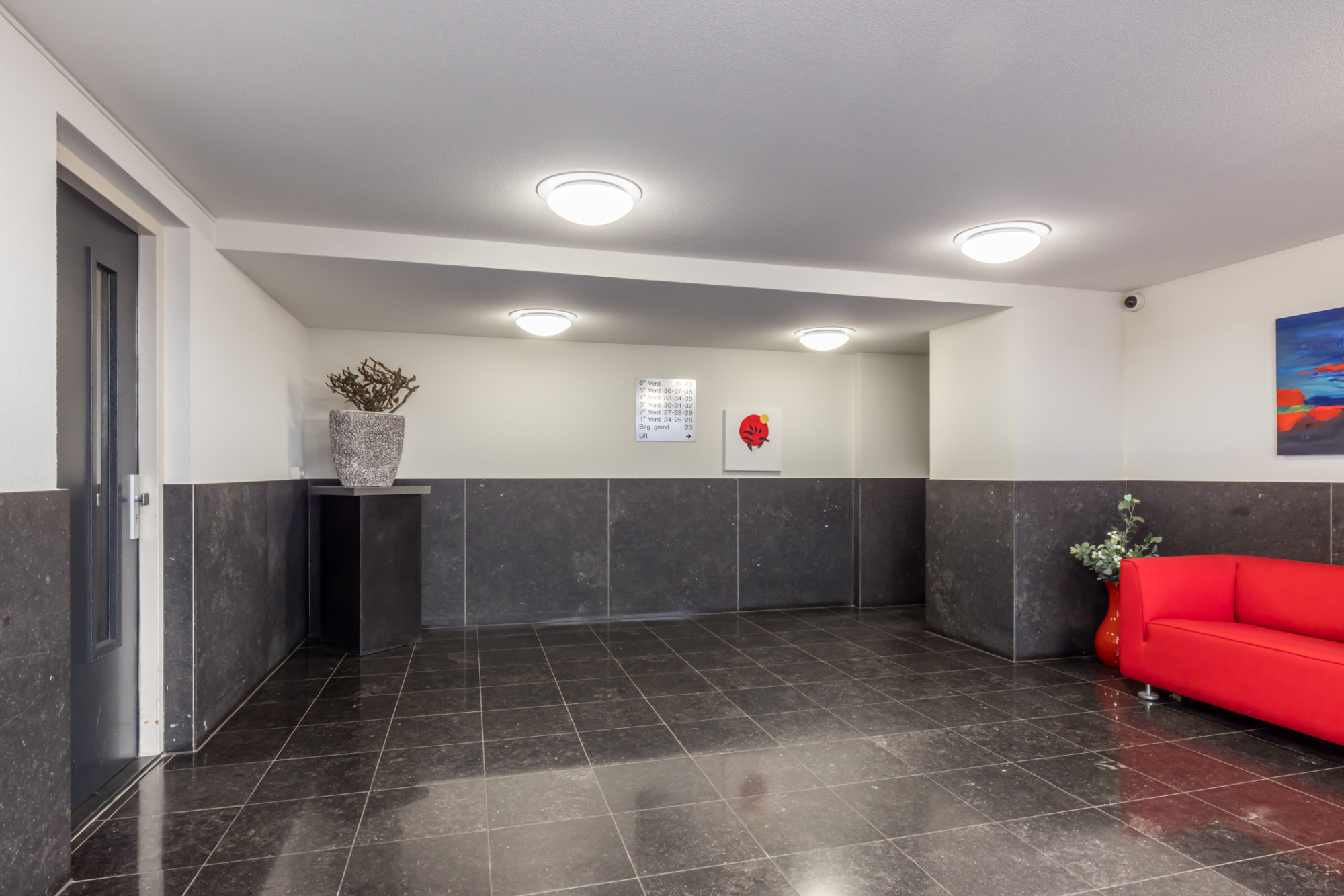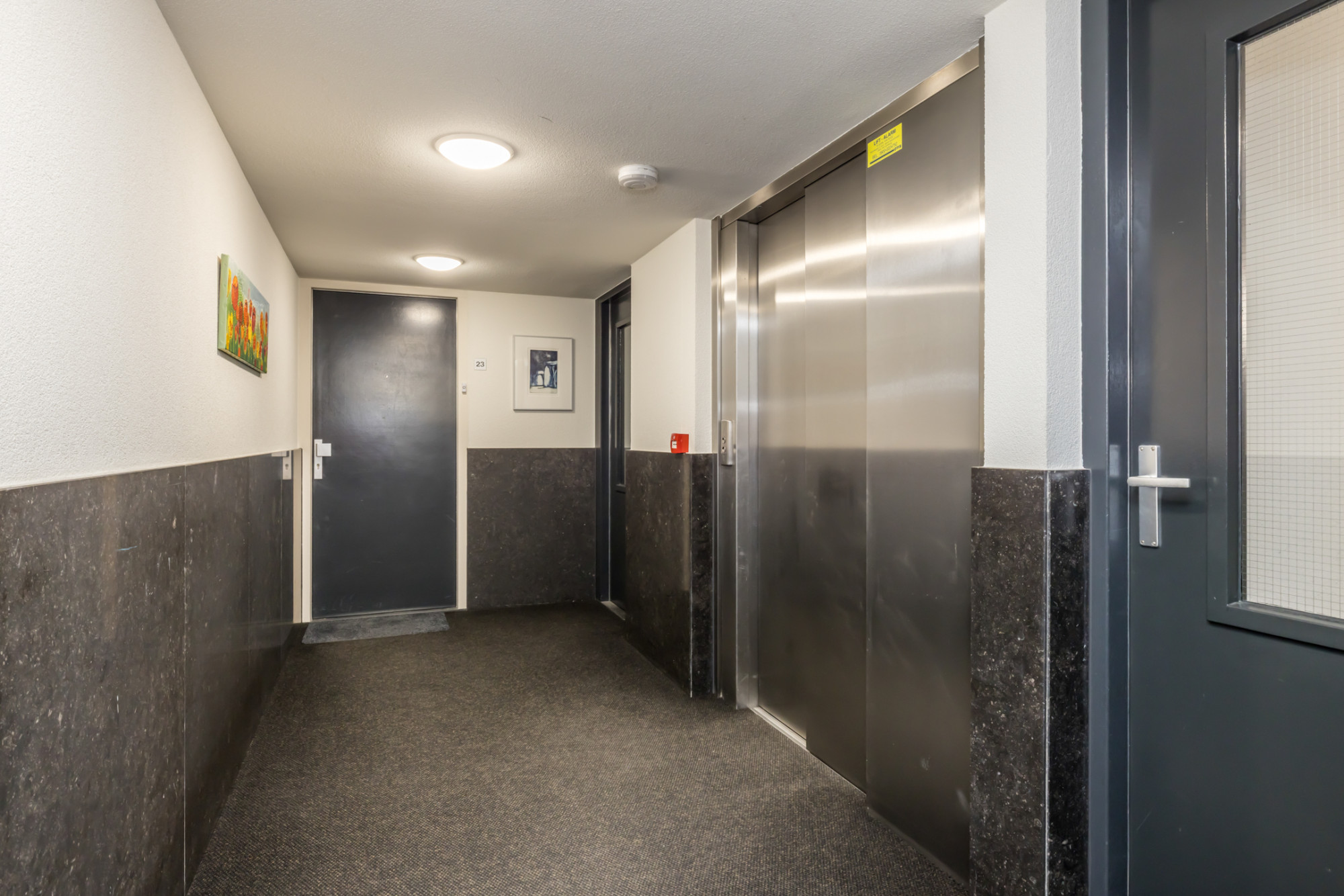 Gemeenschappelijke entree met toegang tot de separaat gelegen berging (2,77 m x 2,55 m), liftinstallatie en trappenhuis.
