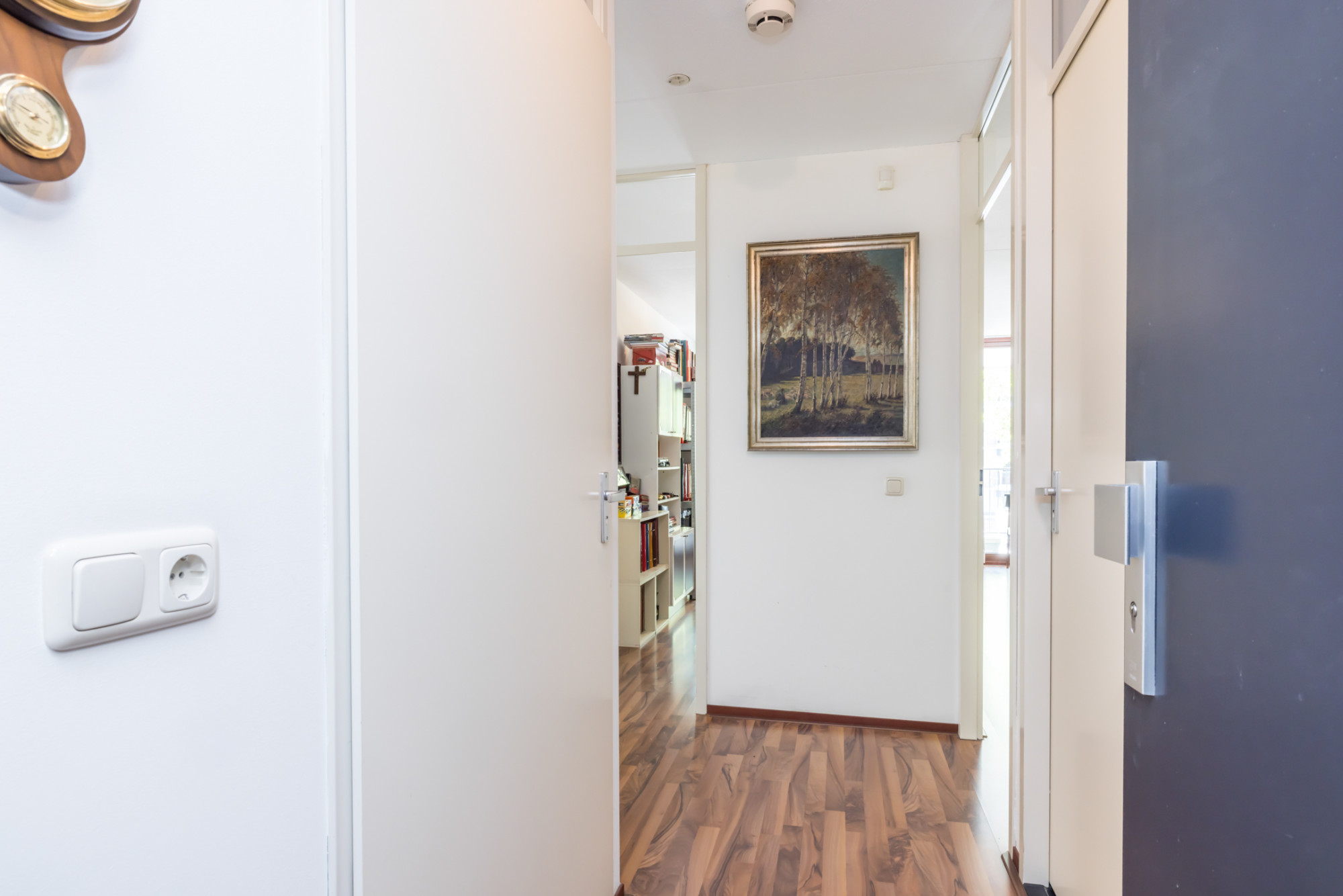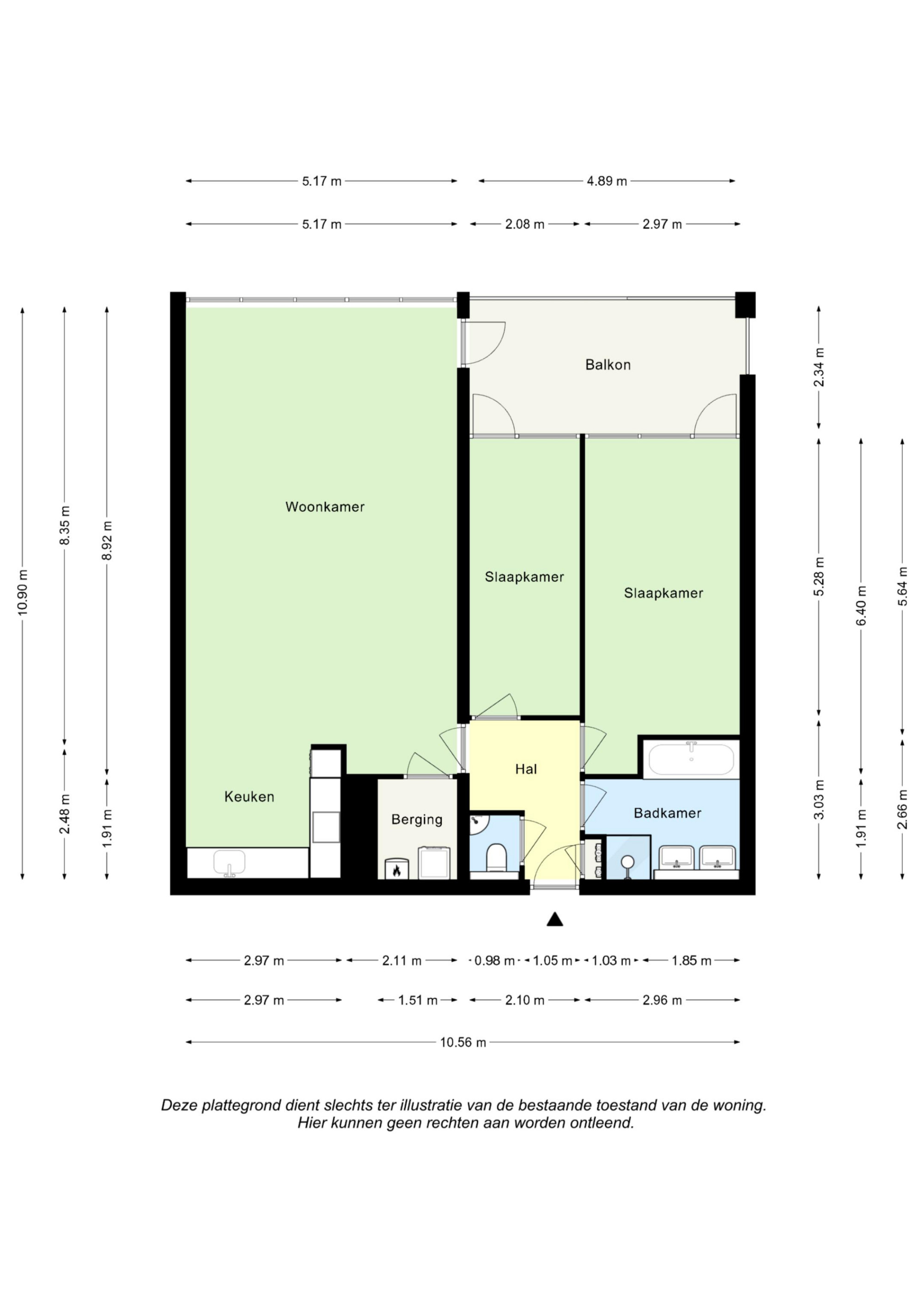 Vanuit de lift heeft u direct toegang tot het appartement. De hal- entree biedt toegang tot 2 slaapkamers, separaat toilet, badkamer en living. De riante living (8,92 m x 5,17 m) heeft een open verbinding met de keuken en biedt toegang tot berging/ wasruimte (2,11 m x 1,91 m). Het ruime balkon (4,89 m x 2,34 m) is middels openslaande deur vanuit de living bereikbaar. De open keuken (2,97 m x 2,48 m) met installatie en apparatuur t.w.: vaatwasser, koelkast, 4-pits gas kookplaat, afzuigkap en combimagnetron.