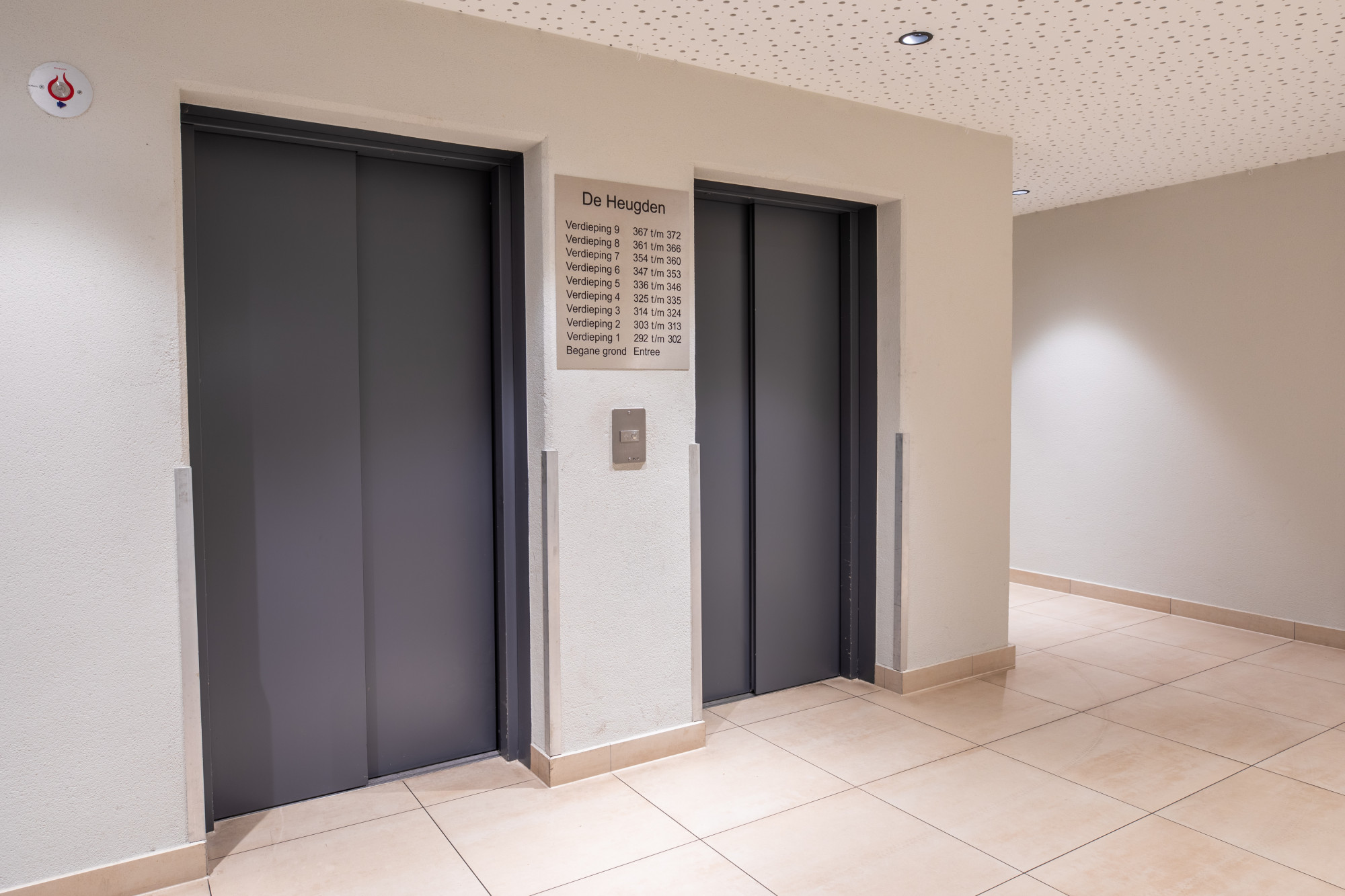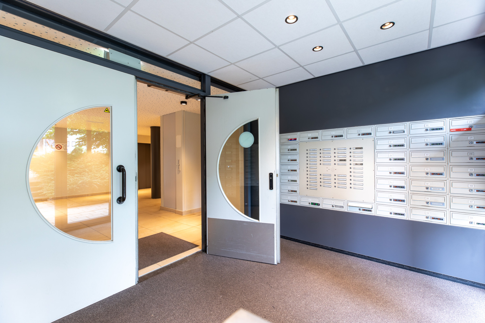 Centrale entree met bellenplateau en liftinstallatie en eigen afgesloten berging. Eigen vaste parkeerplaats op afgesloten terrein.