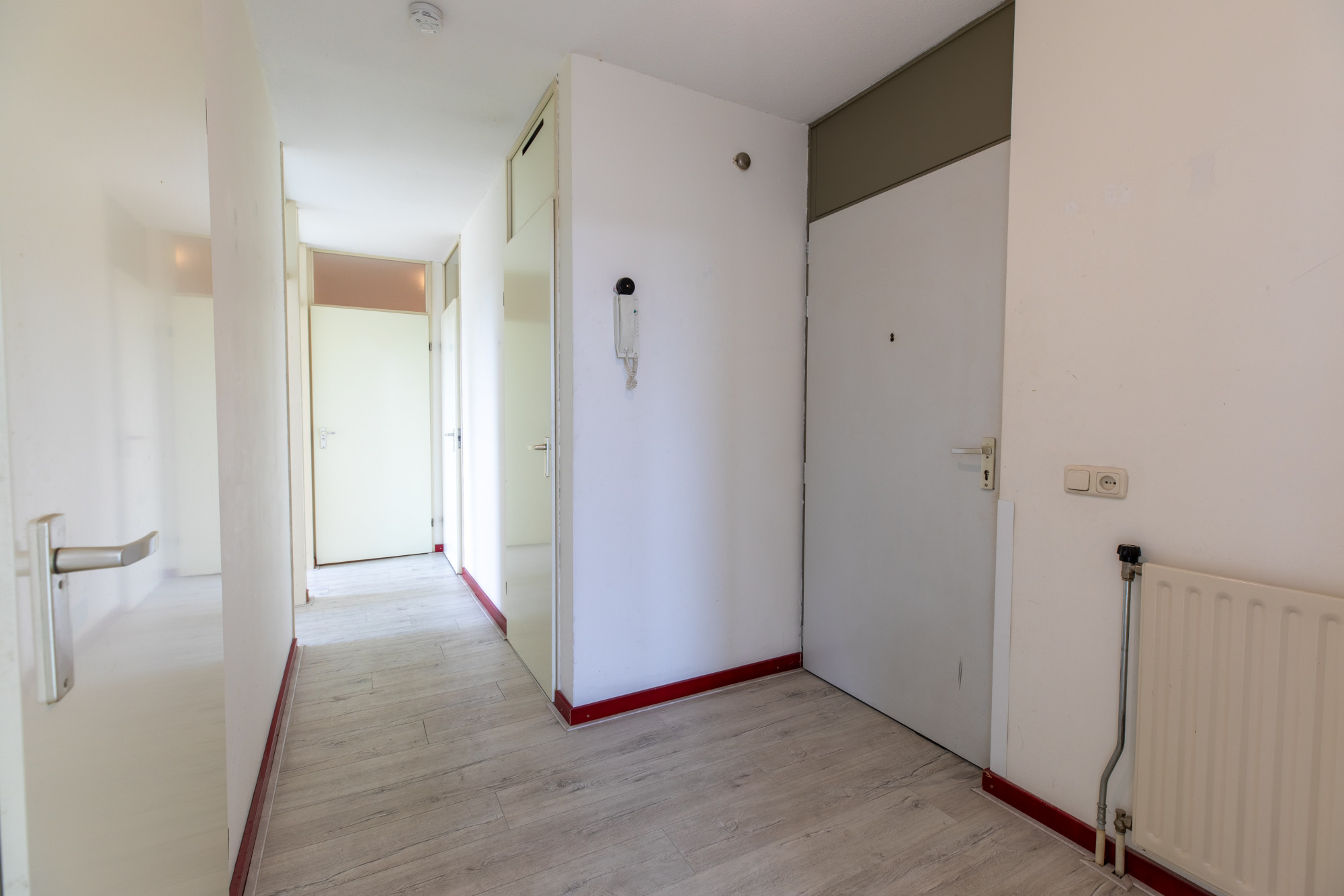Verdeelhal met toegang tot de appartementen. Entree/hal met toegang tot alle vertrekken, deels betegelde toiletruimte en fonteintje en techniekruimte alwaar CV installatie.
