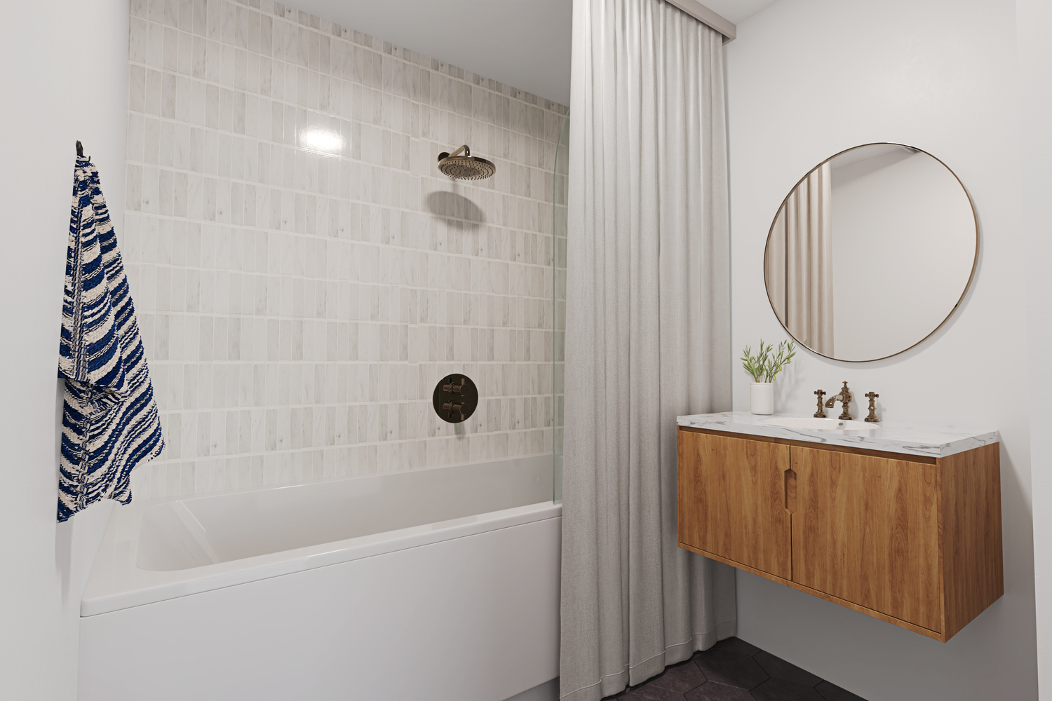 Badkamer met ligbad en wastafel