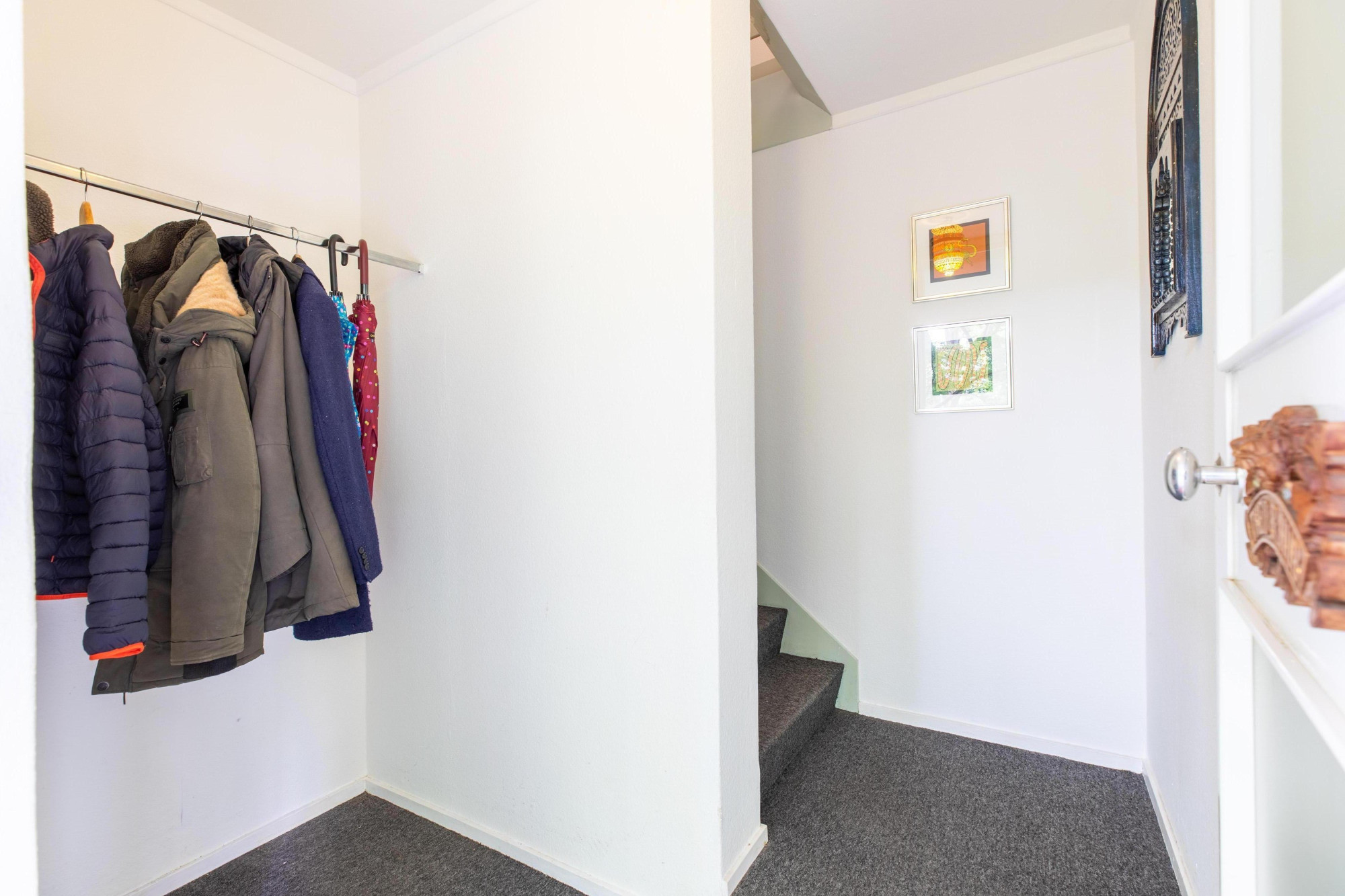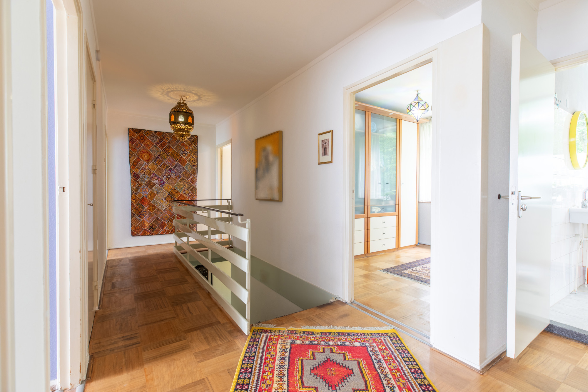 Middels galerij toegang tot de entree met trap naar het woongedeelte.