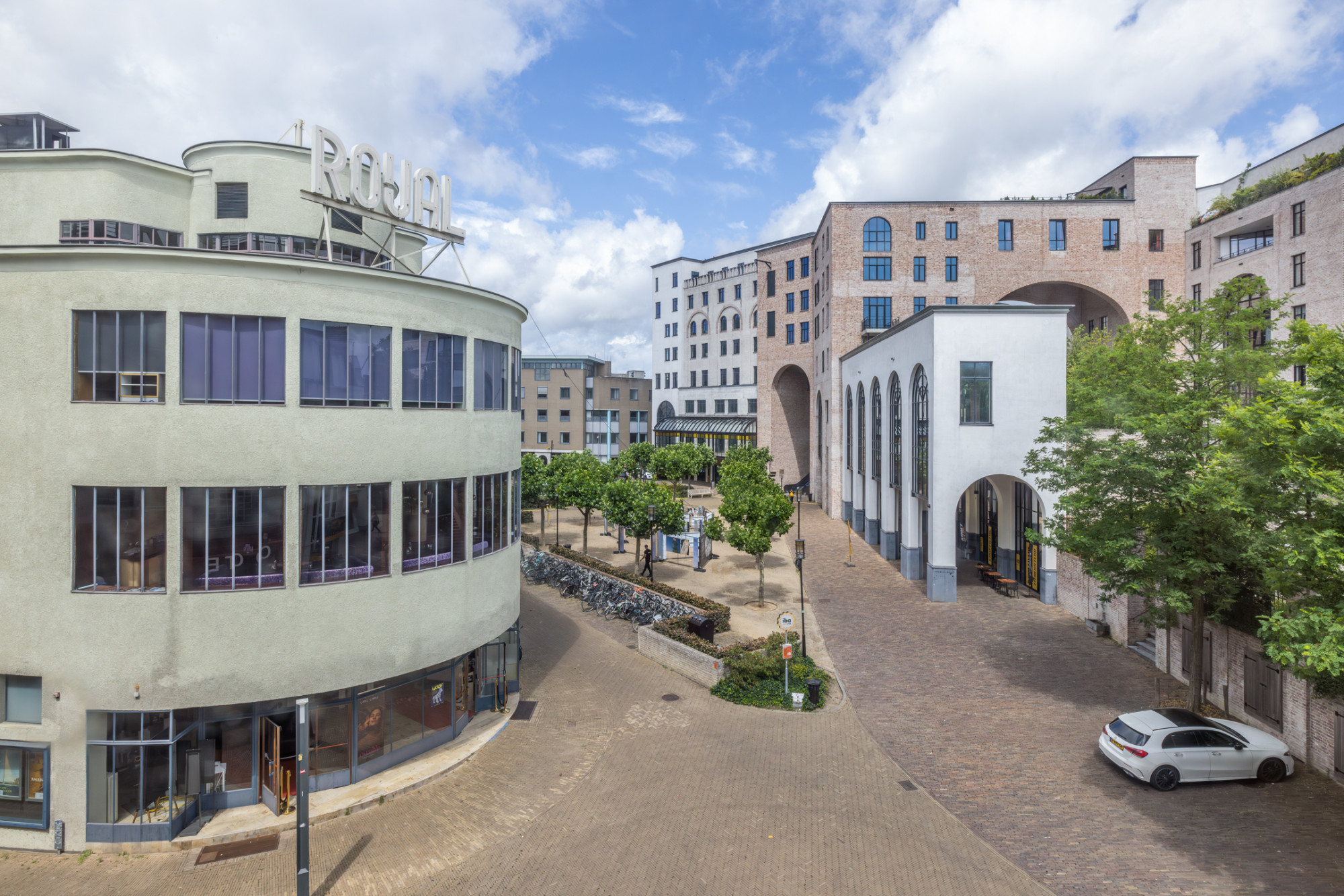 Het balkon (3,64 m x 1,30 m) biedt uitzicht op het Maankwartier en Royal theater.
