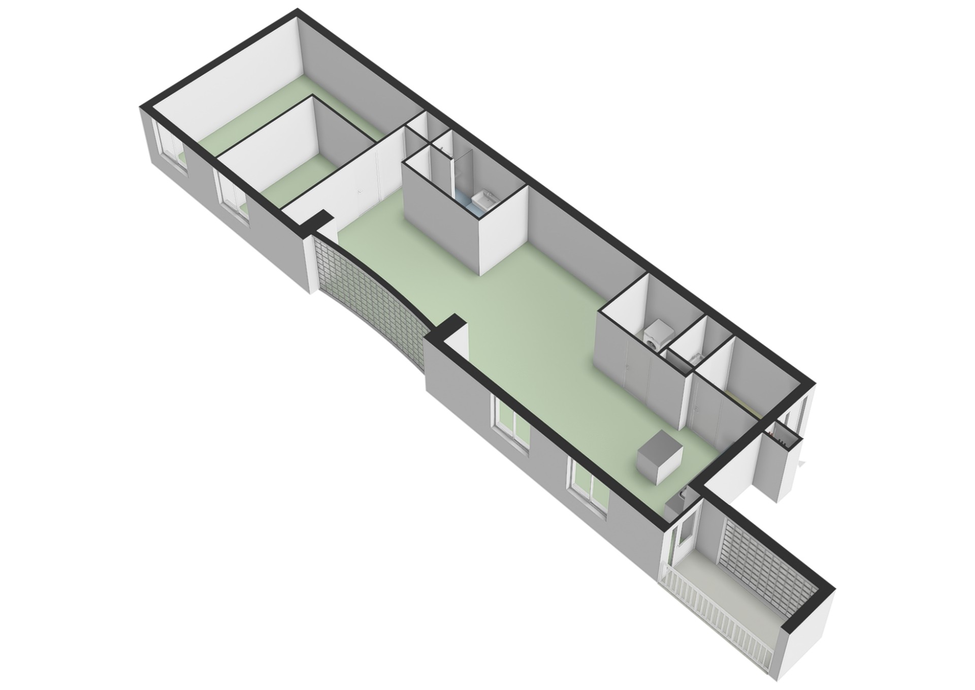 Middels galerij te bereiken entree- hal. De hal biedt toegang tot riante living en moderne toiletruimte v.v. zwevend closet en fonteintje. De ruime living (ca. 40 m2) kenmerkt zich de door de vele daglichttoetreding en openverbinding naar de keuken en toegang tot balkon. De moderne open keuken is v.v. installatie en apparatuur t.w. afzuigkap, vaatwasser, 4-pits inductiekookplaat, combi oven en koelkast. Vanuit de keuken heeft men tevens toegang tot de inpandige berging (2,00 m x 1,89 m) alwaar cv-ketel en aansluiting voor witgoedapparatuur.