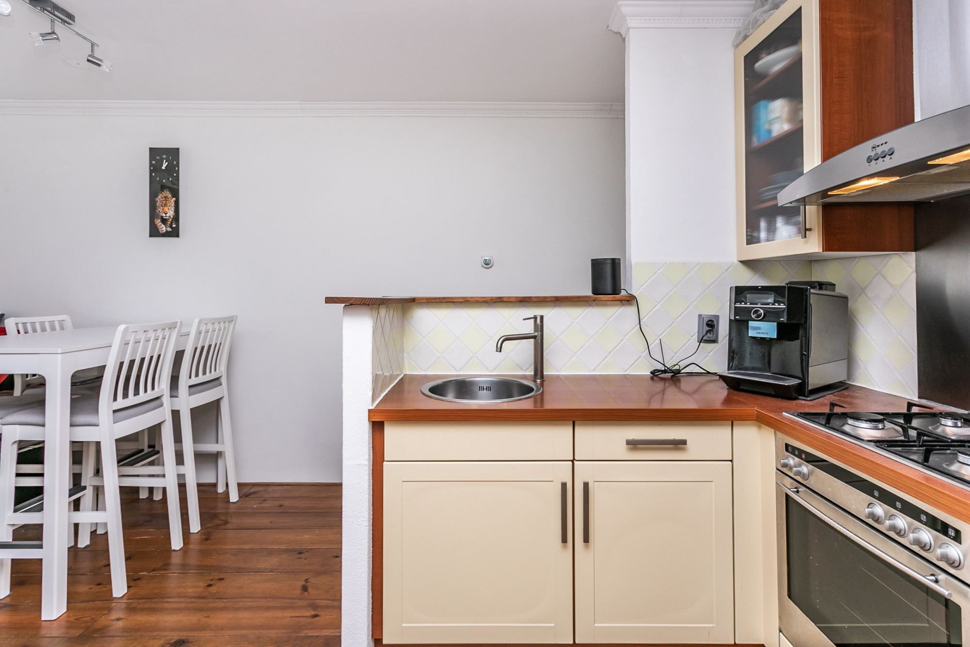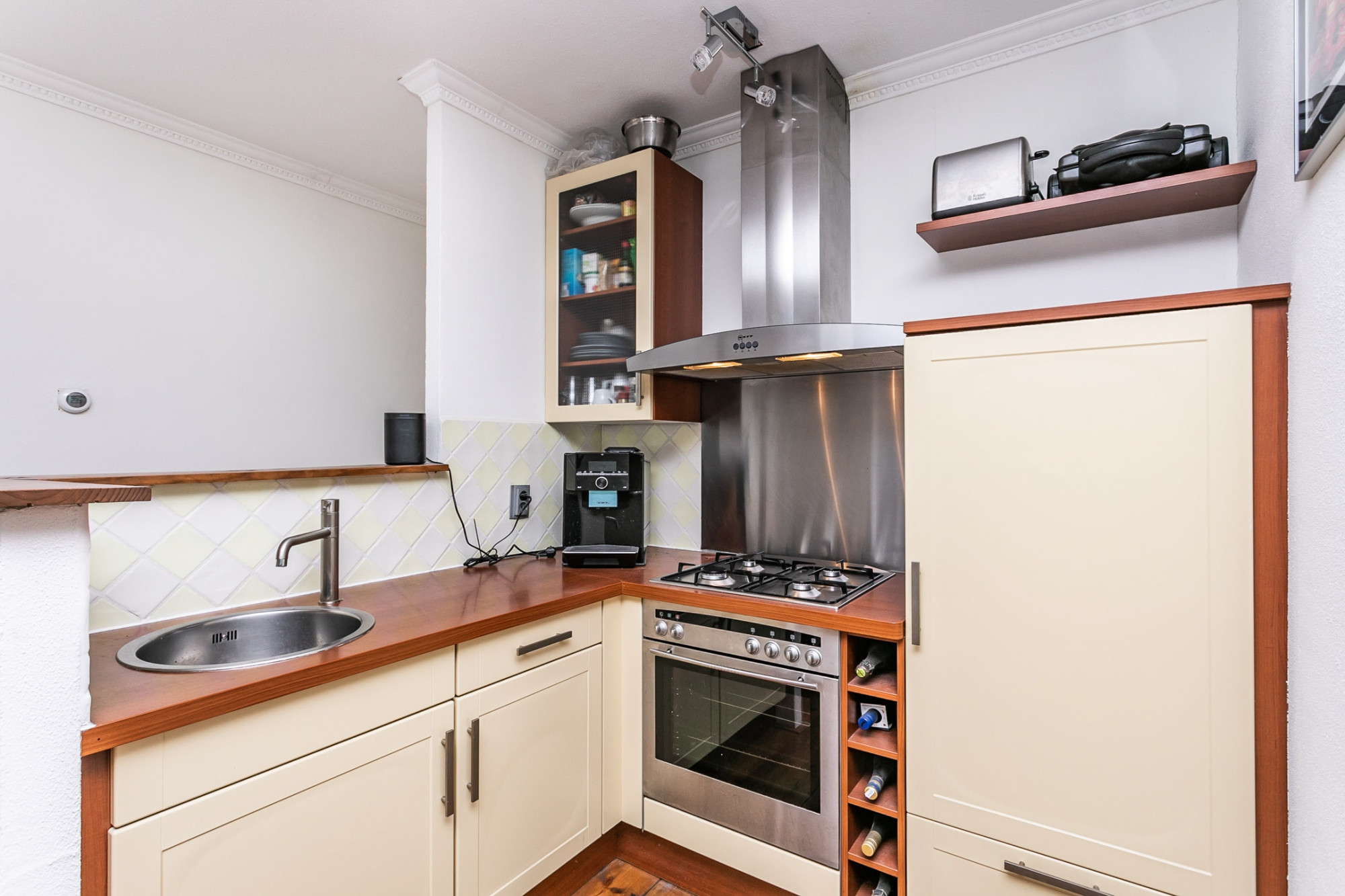 Hal, separaat betegeld toilet met fonteintje. Via hal toegang tot de lichtwoonkamer met open keuken voorzien van alle noodzakelijk inbouwapparatuur.