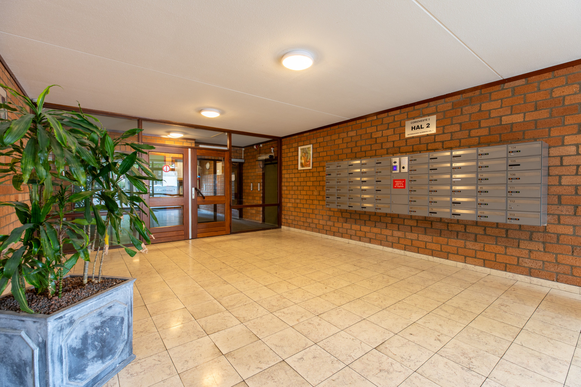 Parkeergelegenheid op afgesloten terrein. Prive berging. Centrale hal met bellentableau en brievenbussen. Liftinstallatie.