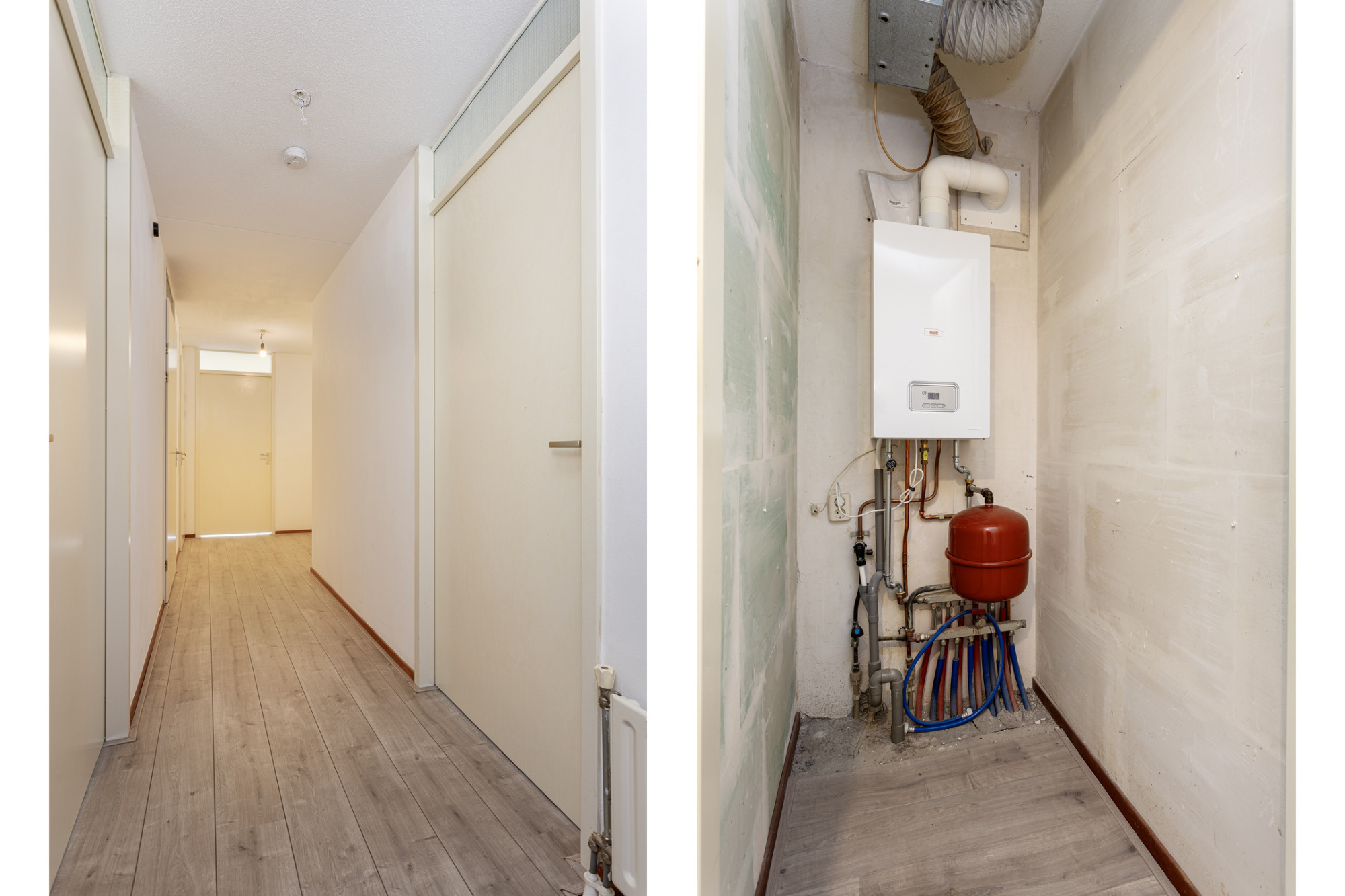 Via de galerij is het appartement te bereiken. Hal met meterkast. Twee slaapkamers. Woonkamer met toegang naar balkon. Eenvoudige keuken. Badkamer met douche, wastafel en toilet.