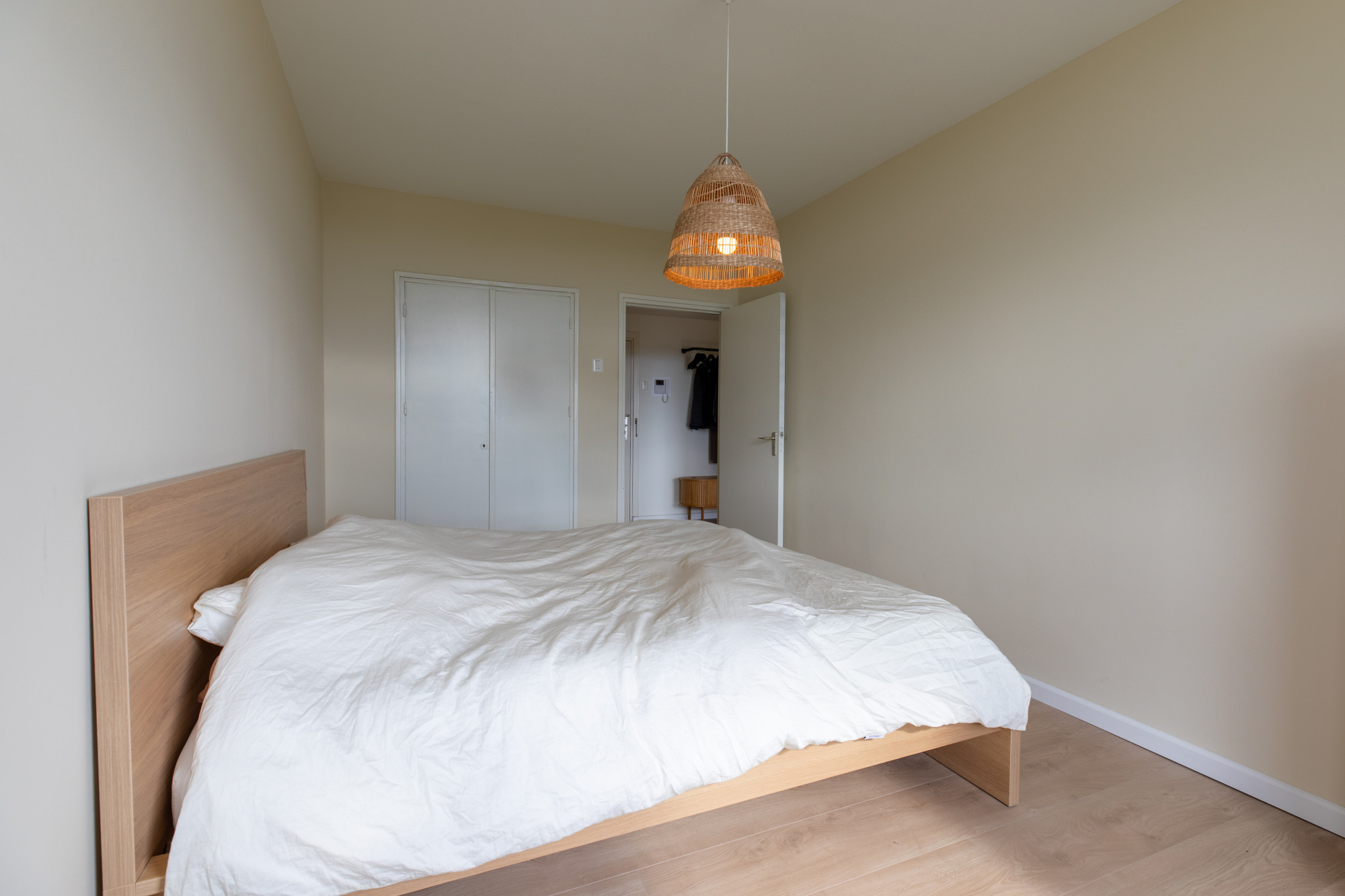 Slaapkamer 1 (4.93 x 2.84 m) met dubbele muurkast met toegang tot het balkon.
