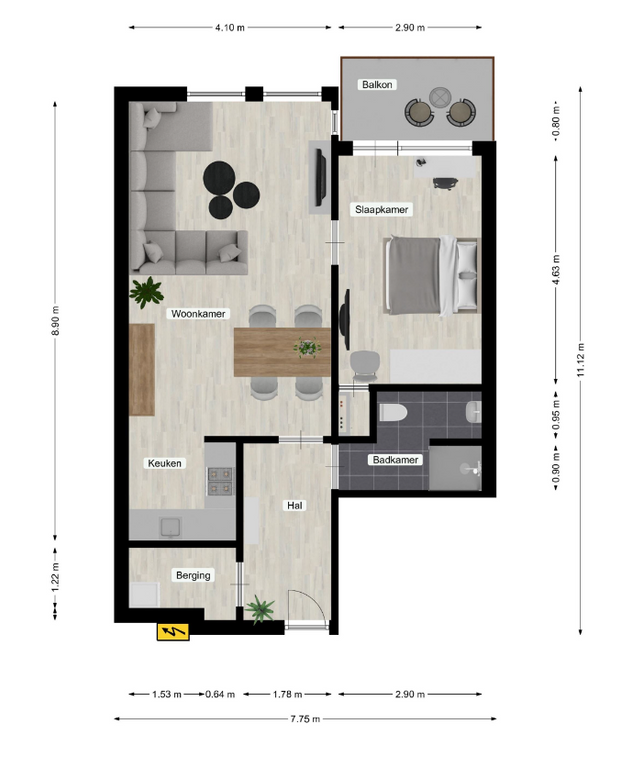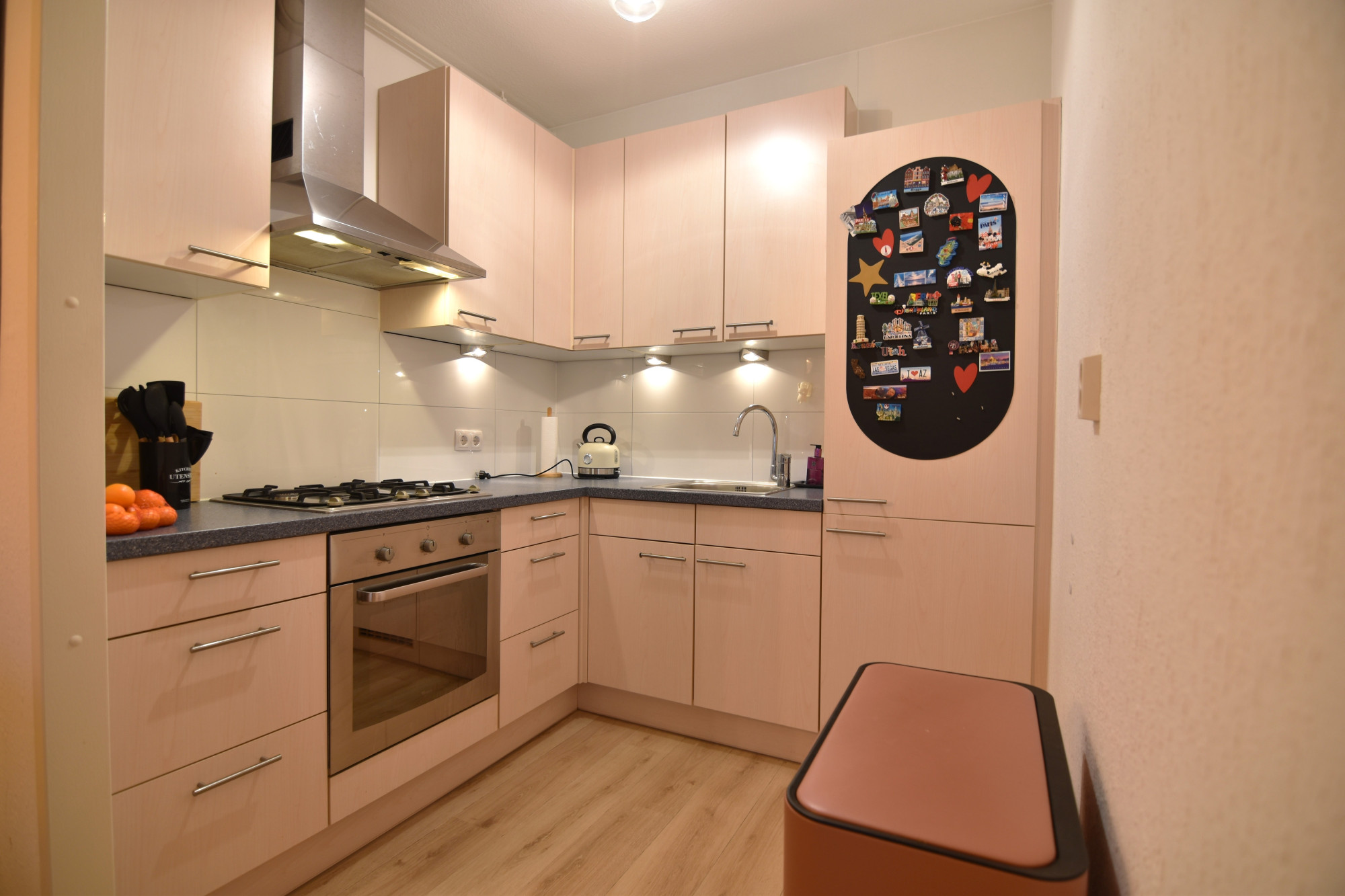 Middels de galerij bereikt men de entree van het appartement. Entree/ hal met toegang tot inpandige berging (2,17 m x 1,22 m), badkamer en living. De ruime woonkamer (ca. 32m2) heeft een open verbinding naar de keuken en middels deur toegang tot slaapkamer. Open keuken ( 2,10 m x 2,10 m) met koelkast, gascomfort, afzuigkap en combi- oven.