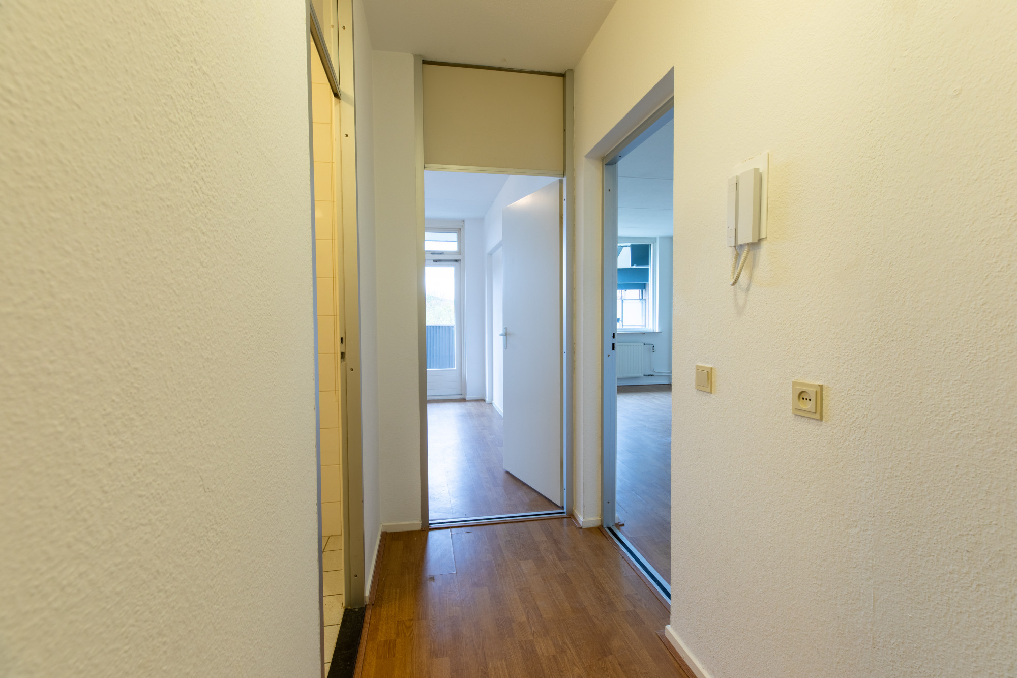 Gehele appartement is voorzien van een laminaatvloer.
