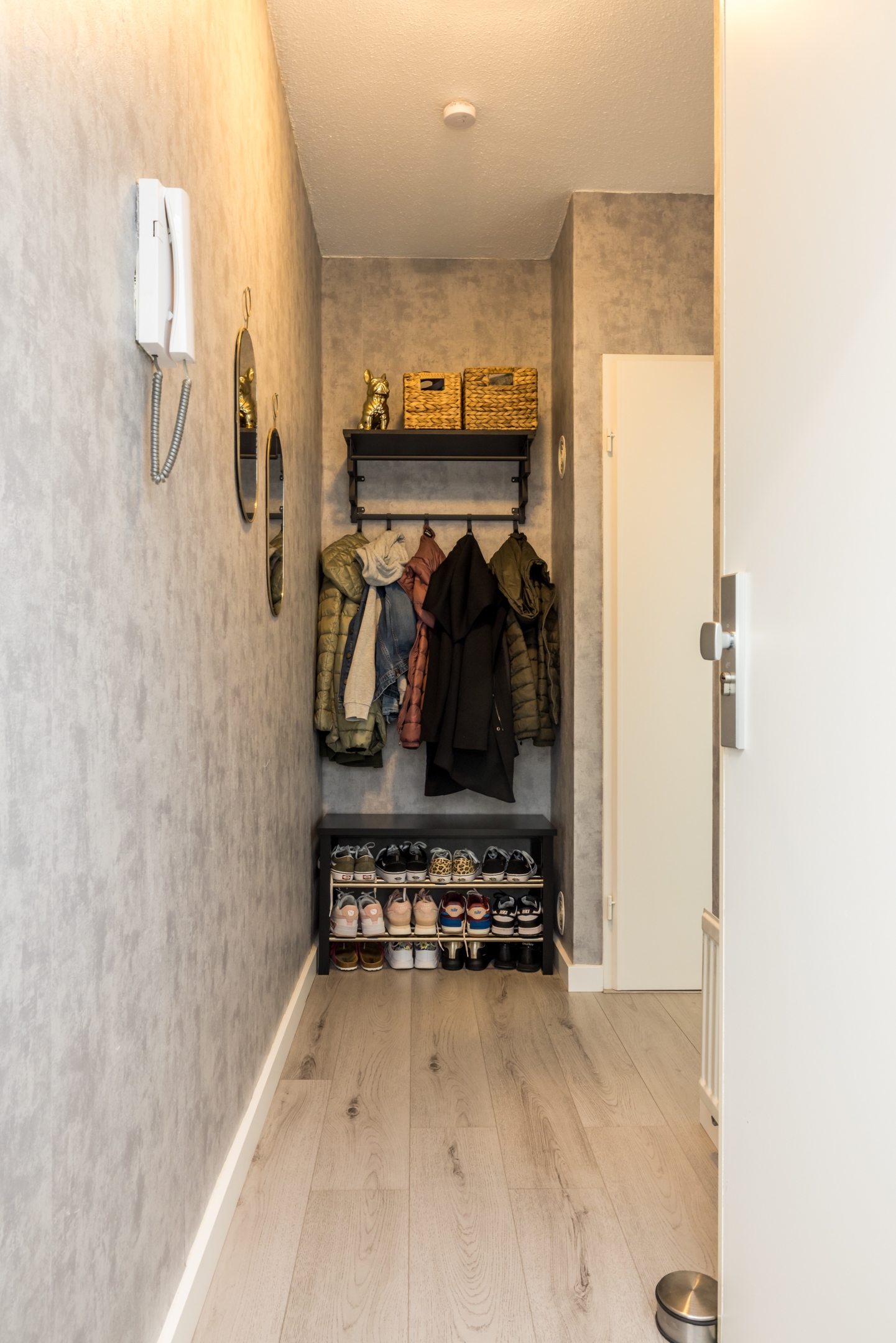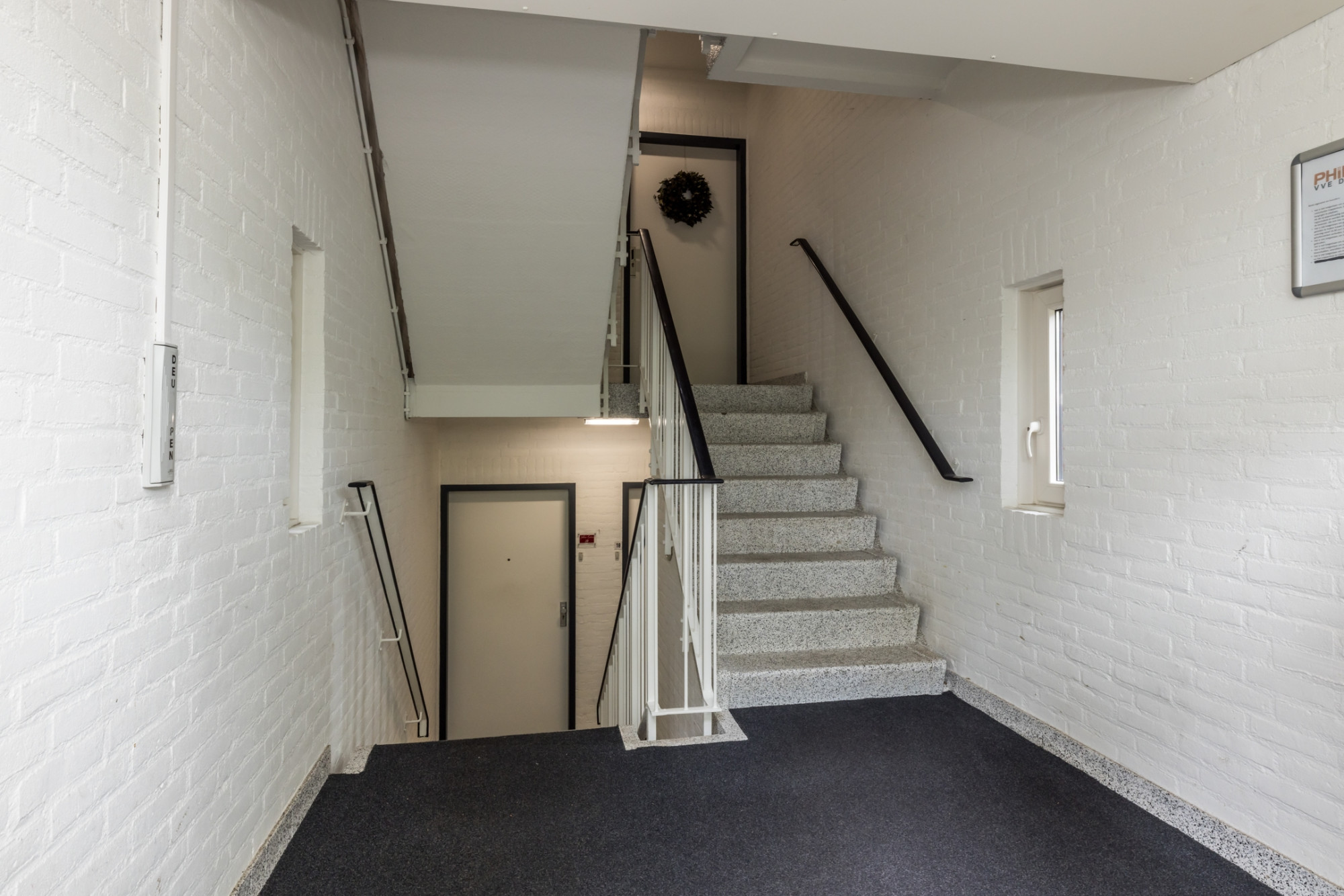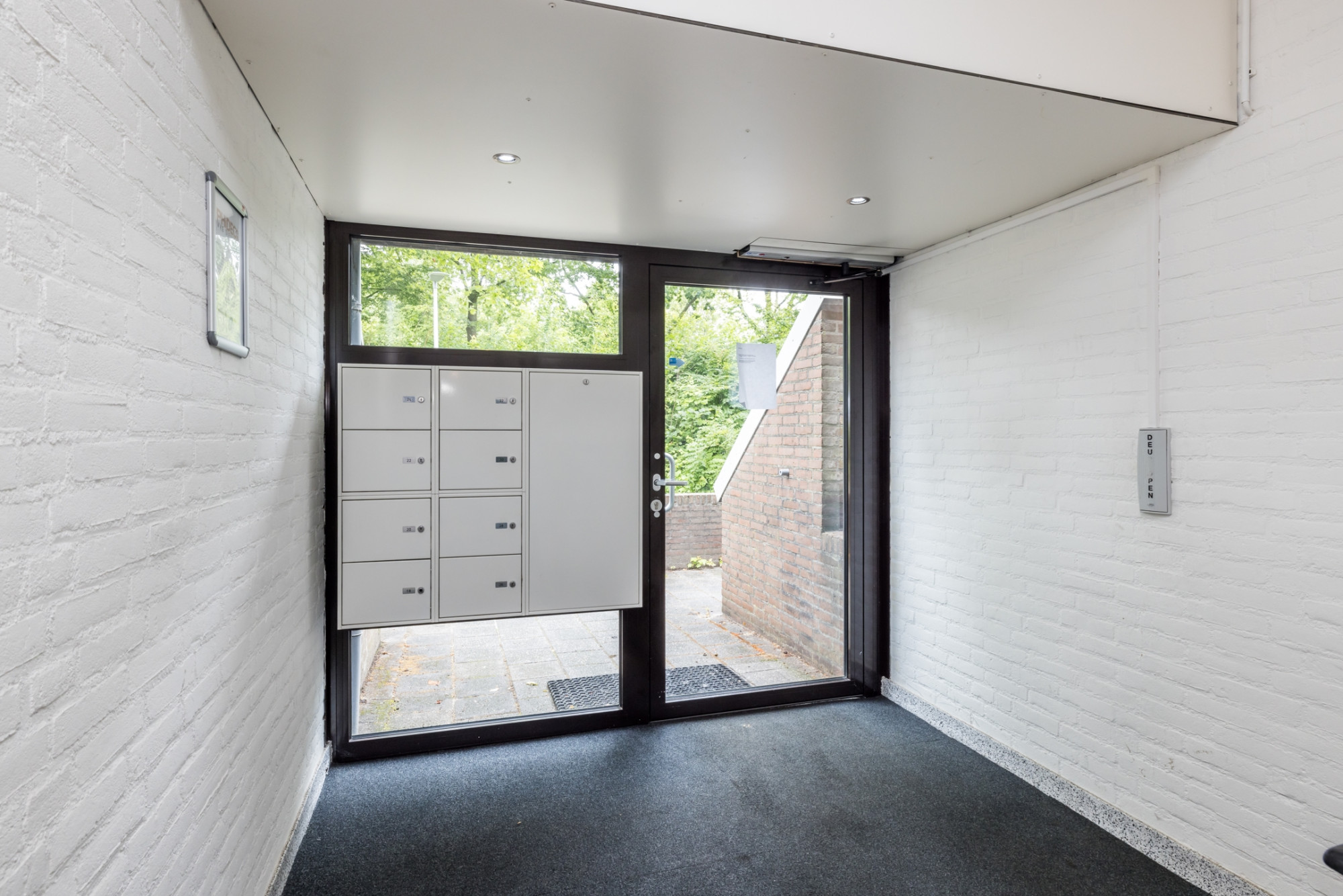 Centrale entree met bellentableau, trappenhuis en separate berging (ca 8m2).