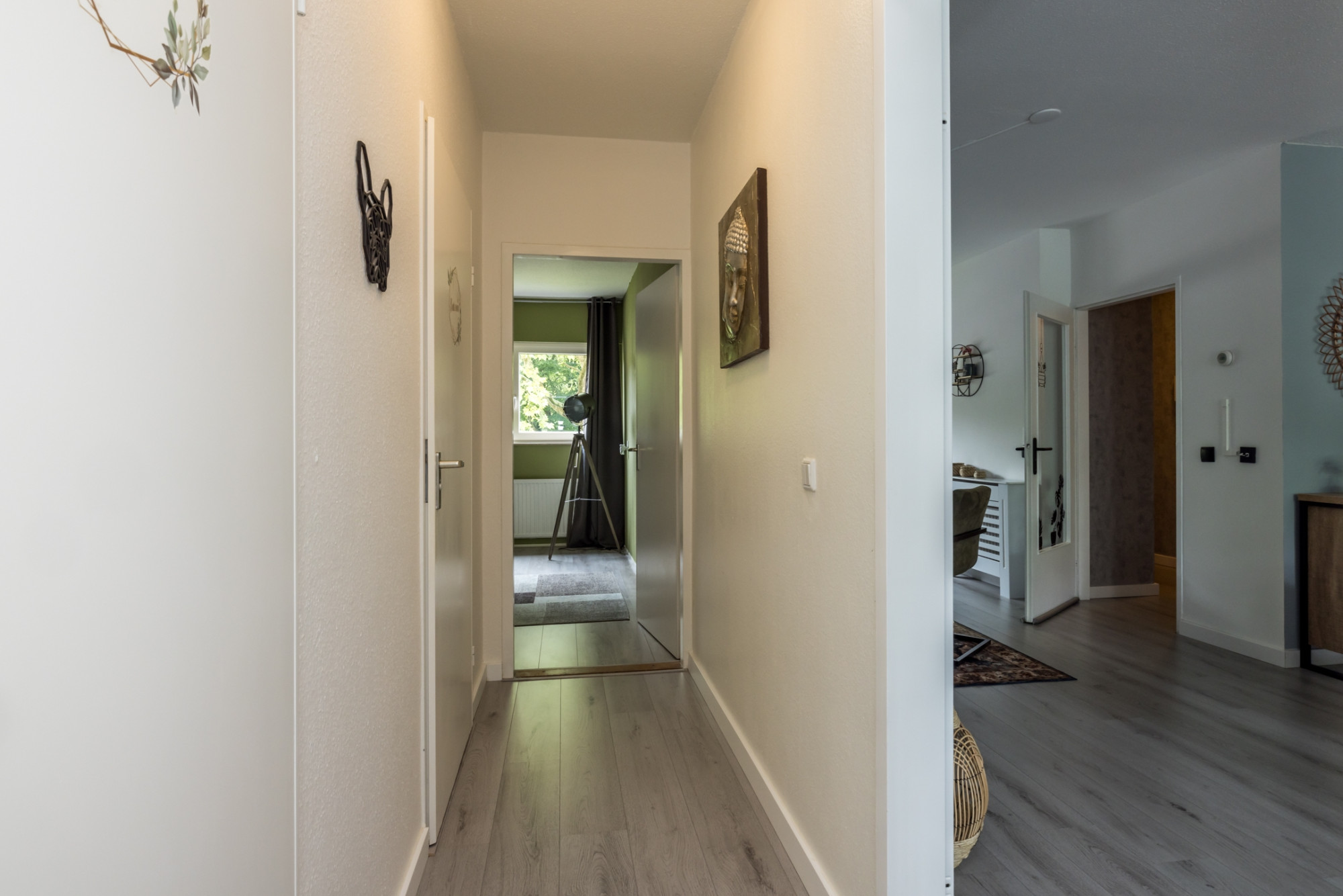 Ruime Woonkamer met toegang via een enkele deur naar het balkon. Vanuit de Gang toegang naar de twee slaapkamers en een separaat modern betegeld toilet. De moderne badkamer is voorzien van een inloopdouche, wastafel in meubel met designradiator en aansluitingen voor het witgoed.