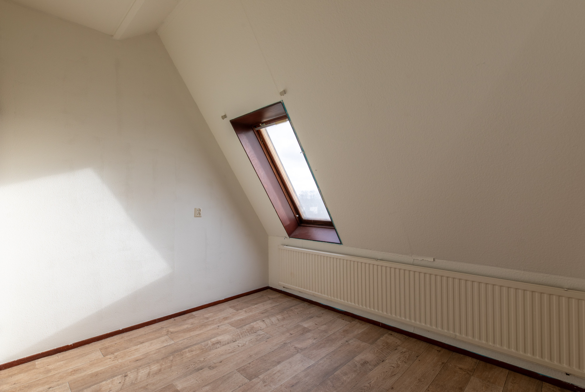 Hal met meterkast, cv ruimte (Intergas 2021, eigendom toestel). Woonkamer met open keuken gedeelte voorzien van een keukenblok. Aan de voorzijde van de woonkamer is er toegang naar het balkon. Het ruime balkon biedt mooi uitzicht over de wijk en omgeving. Portaal met toegang toiletruimte, badkamer met ligbad/douchecombinatie, wastafel en aansluiting wasmachine. Twee slaapkamers, de slaapkamer aan de voorzijde heeft een dakraam en een toegangsdeur naar het balkon.