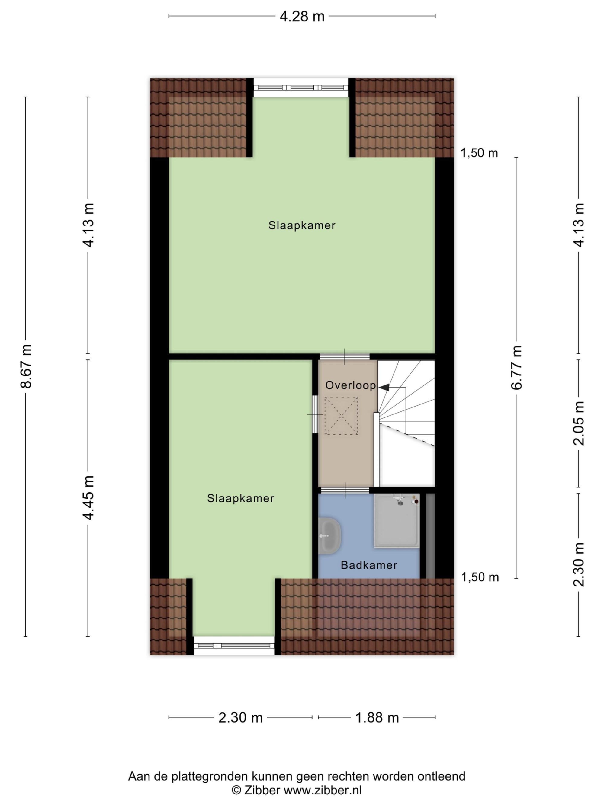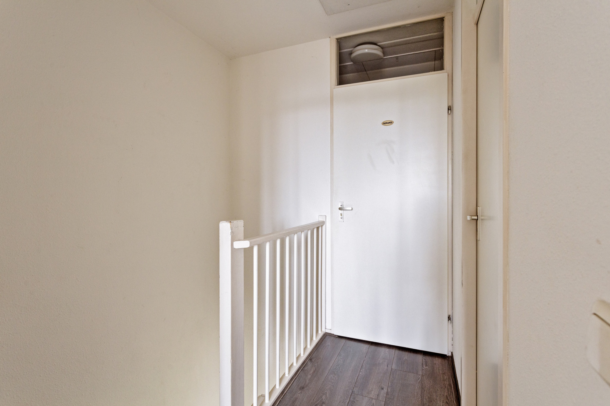 een tweepersoonsbed en kastruimte. De overloop geeft toegang tot de badkamer, die voorzien is van een