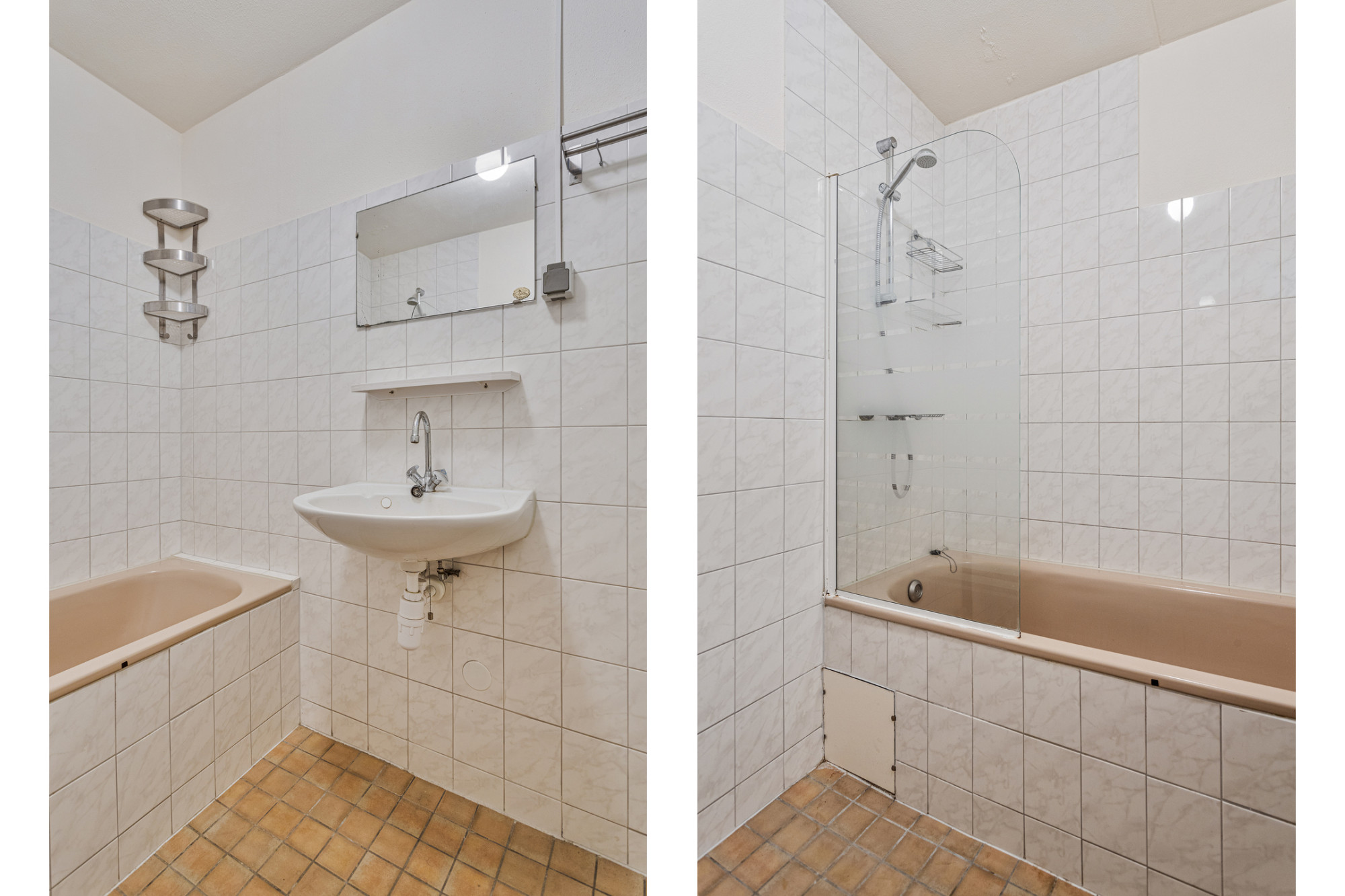 De badkamer is voorzien van een ligbad en sta douche. De badkamer en toiletruimte zijn volledig betegeld.