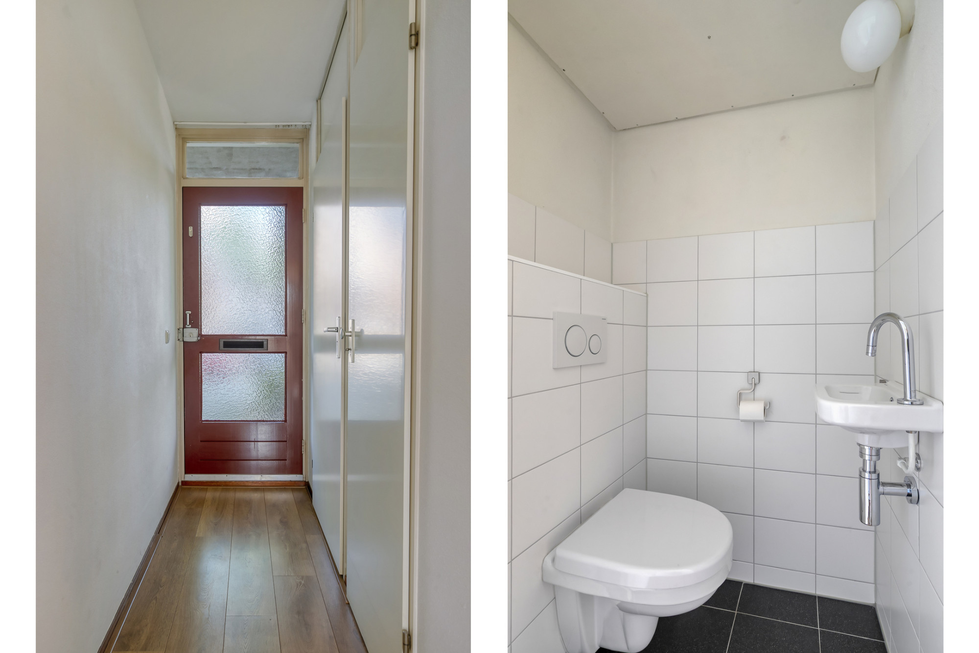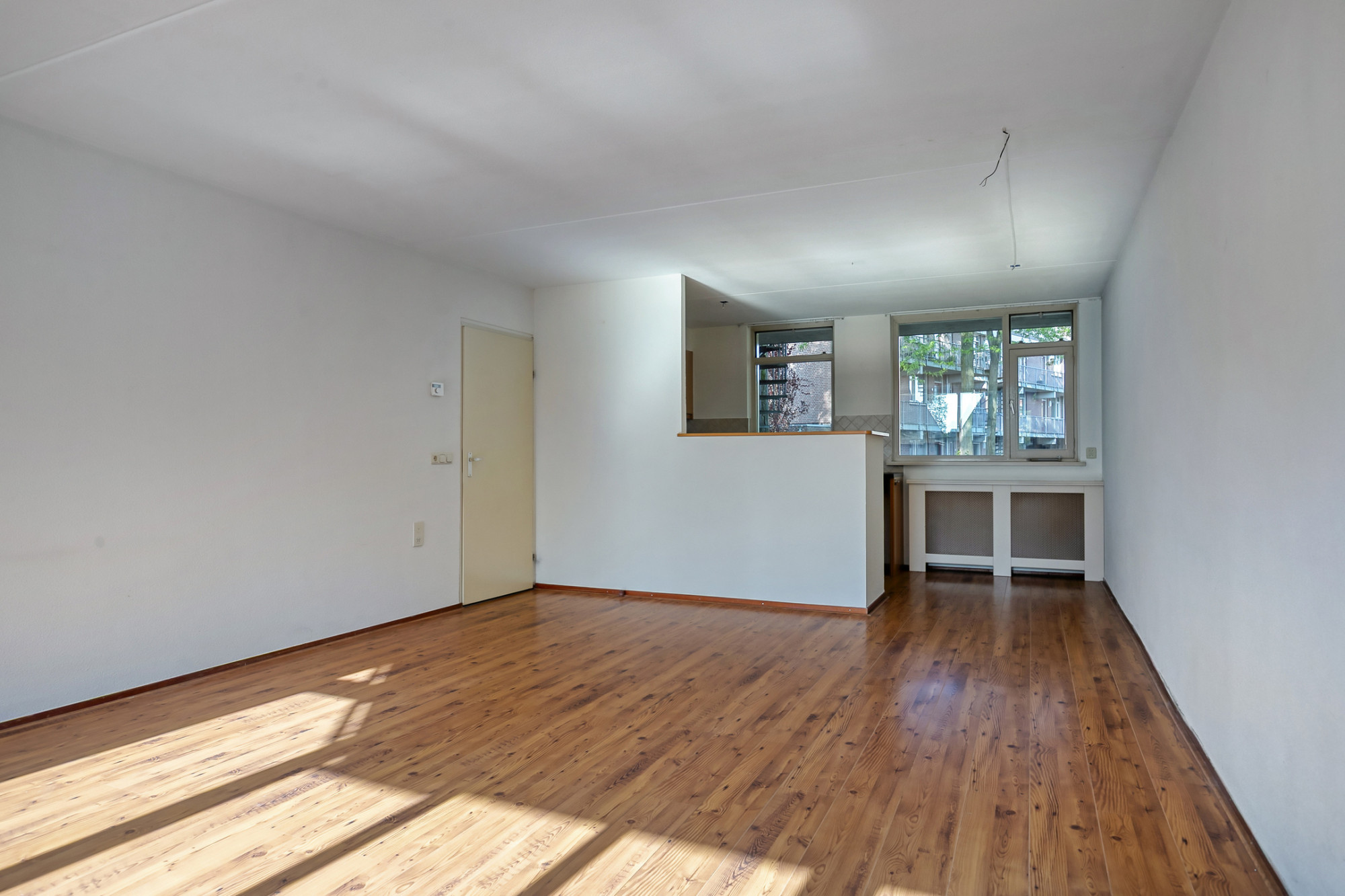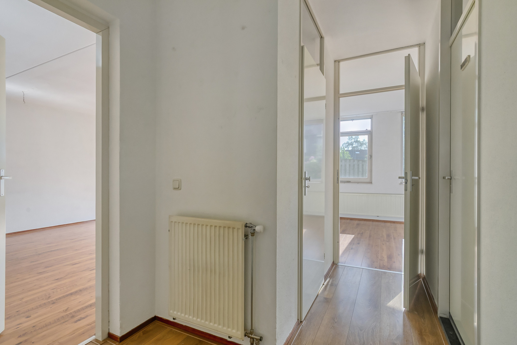 ruimtes: het toilet, de meterkast, cv-berging met cv-combiketel, aparte bergruimte en de lichte woonkamer met open keuken. Uiteraard zijn vanuit de hal ook de badkamer en de 2 slaapkamers toegankelijk.