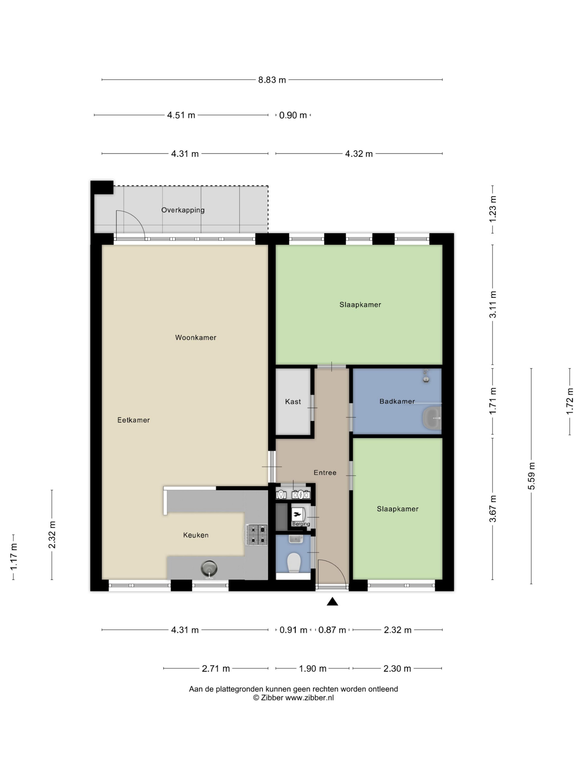 - eigen privé tuin (ca. 66 m²) met achterom