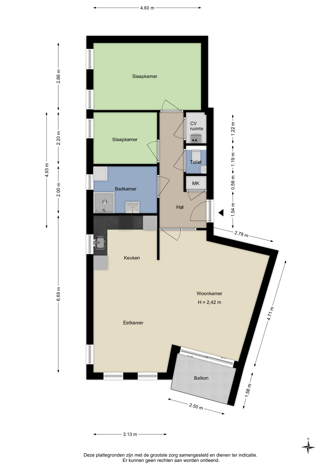 Alle door ons kantoor verstrekte informatie omtrent onroerende zaken, moet beschouwd worden als een uitnodiging om in onderhandeling te treden, en is geheel vrijblijvend! Alle vermelde maten en afmetingen zijn slechts bij benadering. Aan deze beperkte informatie kunnen geen rechten worden ontleend. Indien in enige documentatie of op enige website informatie staat die niet overeen komt met de werkelijkheid, dan geldt de feitelijke situatie waarin de woning zich bevindt, zoals koper deze tijdens de bezichtiging heeft kunnen waarnemen, en wordt de woning in deze feitelijke situatie/staat verkocht. Een (eventueel) bijgevoegde plattegrond dient uitsluitend als globale indicatie/visualisatie. Hieraan kunnen uitdrukkelijk geen rechten worden ontleend.