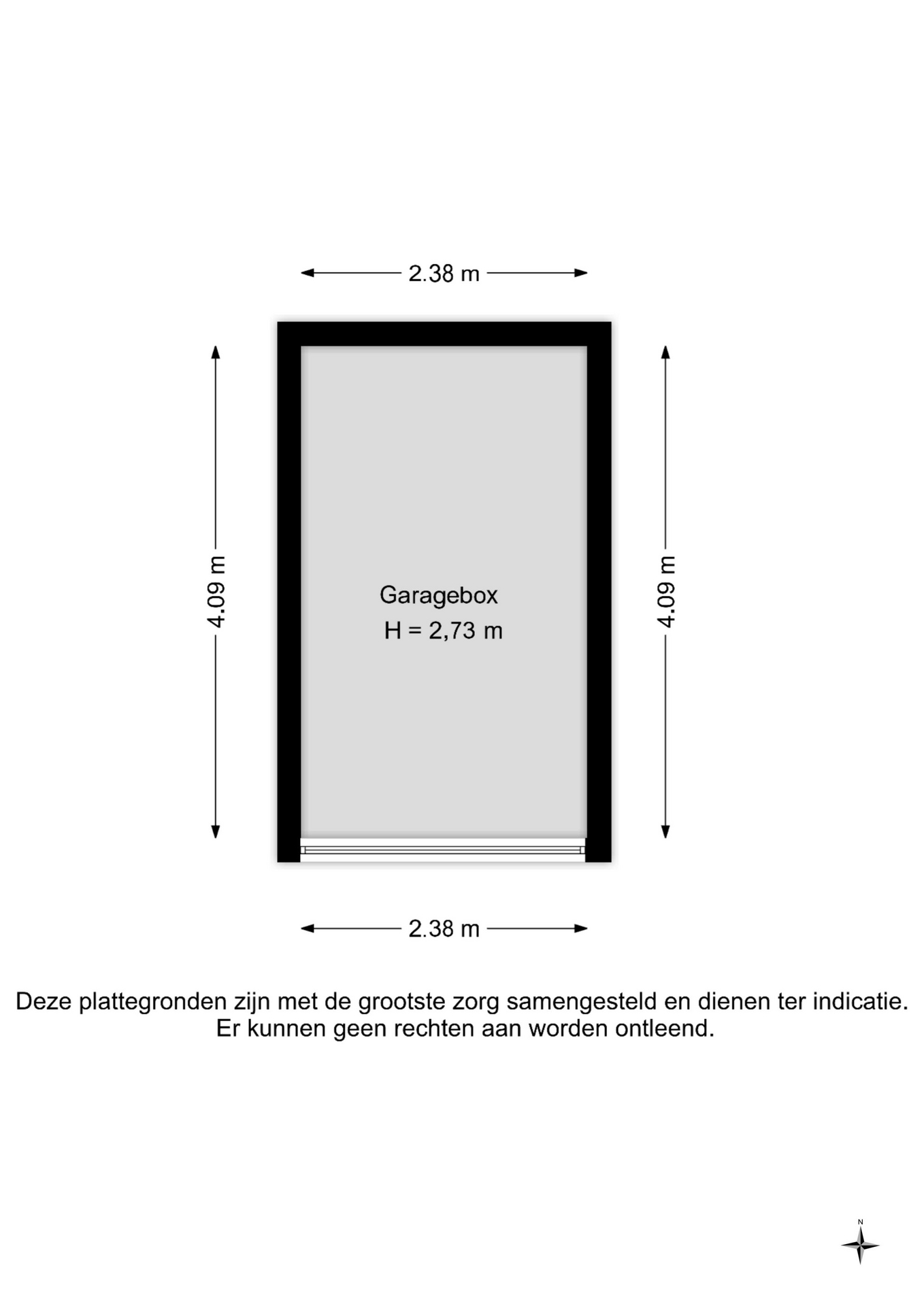 Inpandige garage met elektrische sectionaal poort alleen te bereiken via buitenom (ca. 4.78m x 2.78m).