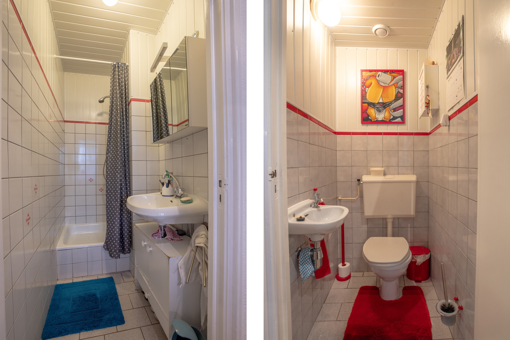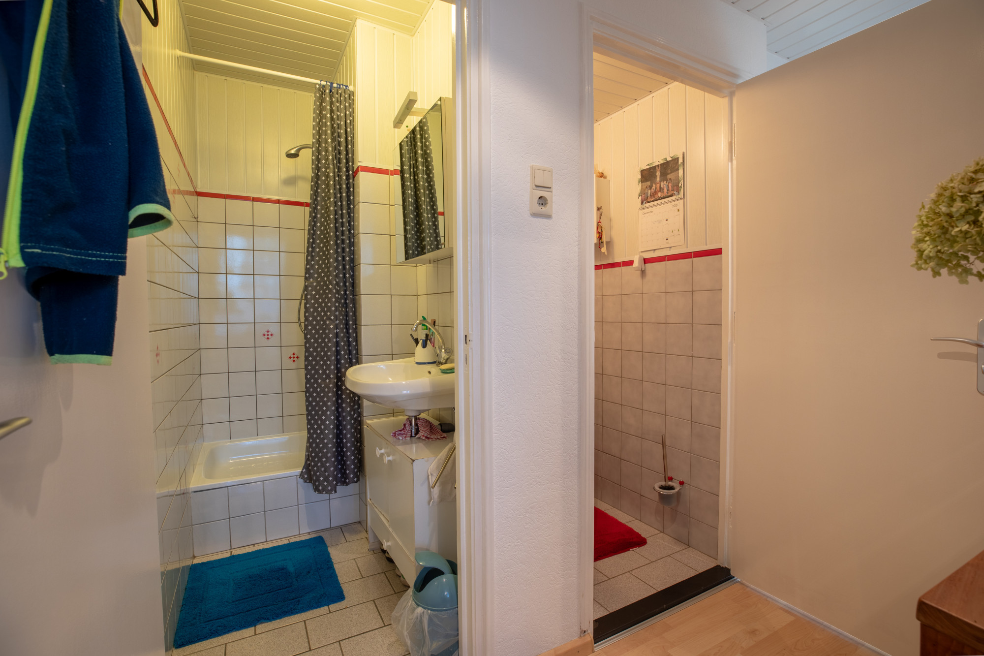 Badkamer met douche en vaste wastafel