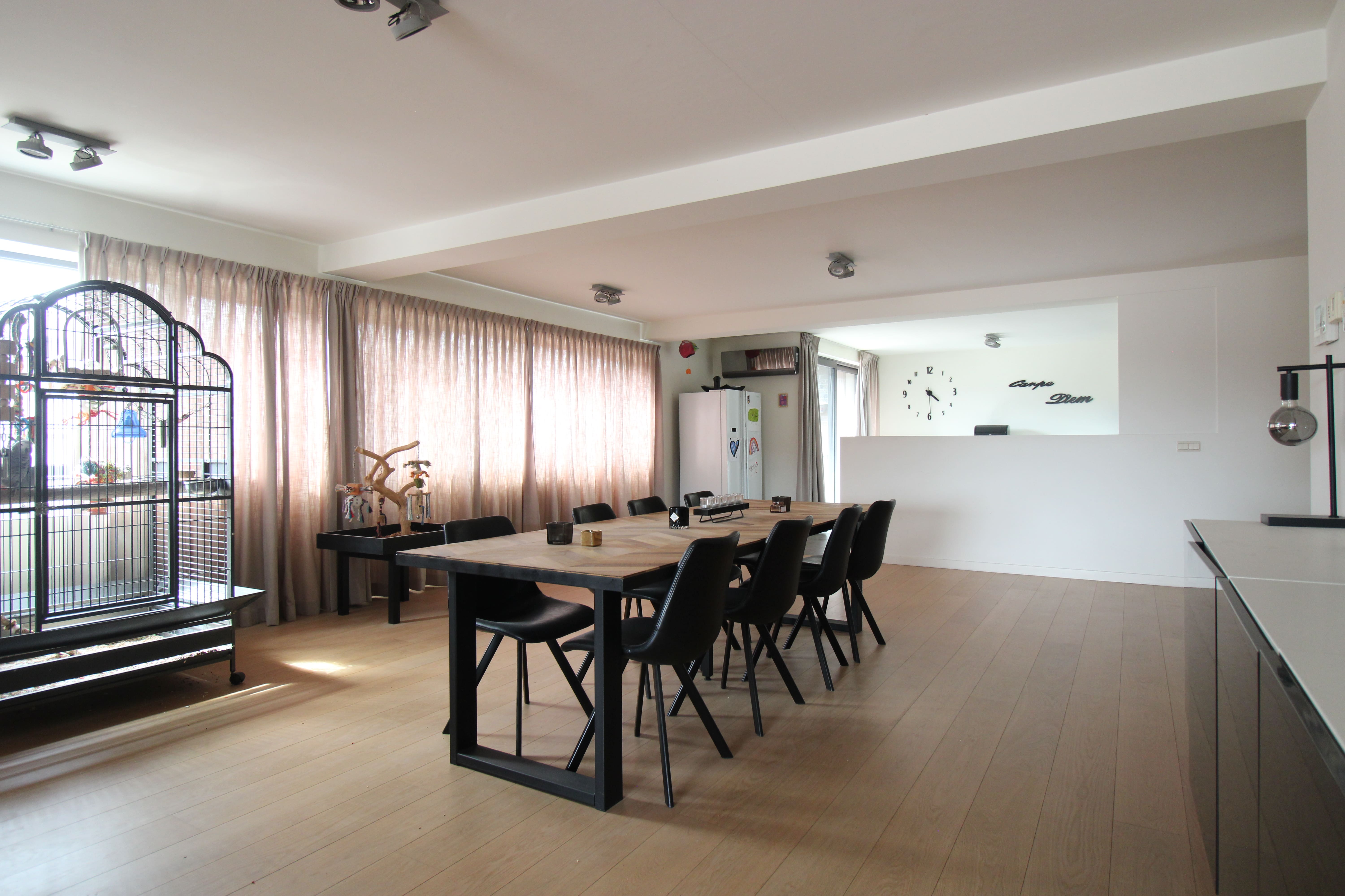 Bij het binnenkomen bevinden we ons in de hal die ons o.a. toegang verschaft tot de prachtige woonkamer met open keuken. Door de grote raampartijen heeft u enorm veel natuurlijk lichtinval.