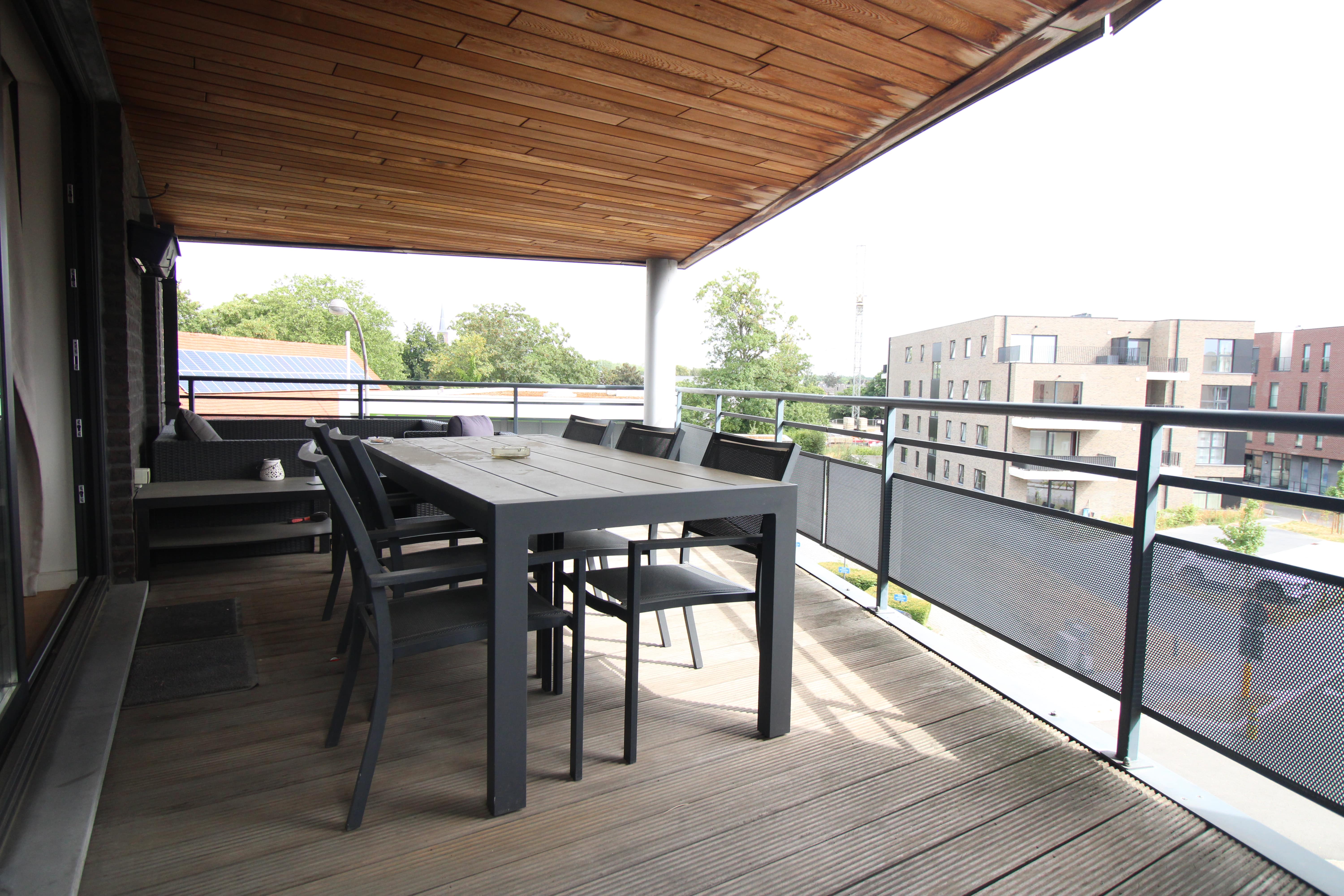 Dit alles afgewerkt met een composieten werkblad. Langs de keuken is er een klein balkon en vanuit de leefruimte is het overdekt terras van 18m² bereikbaar.